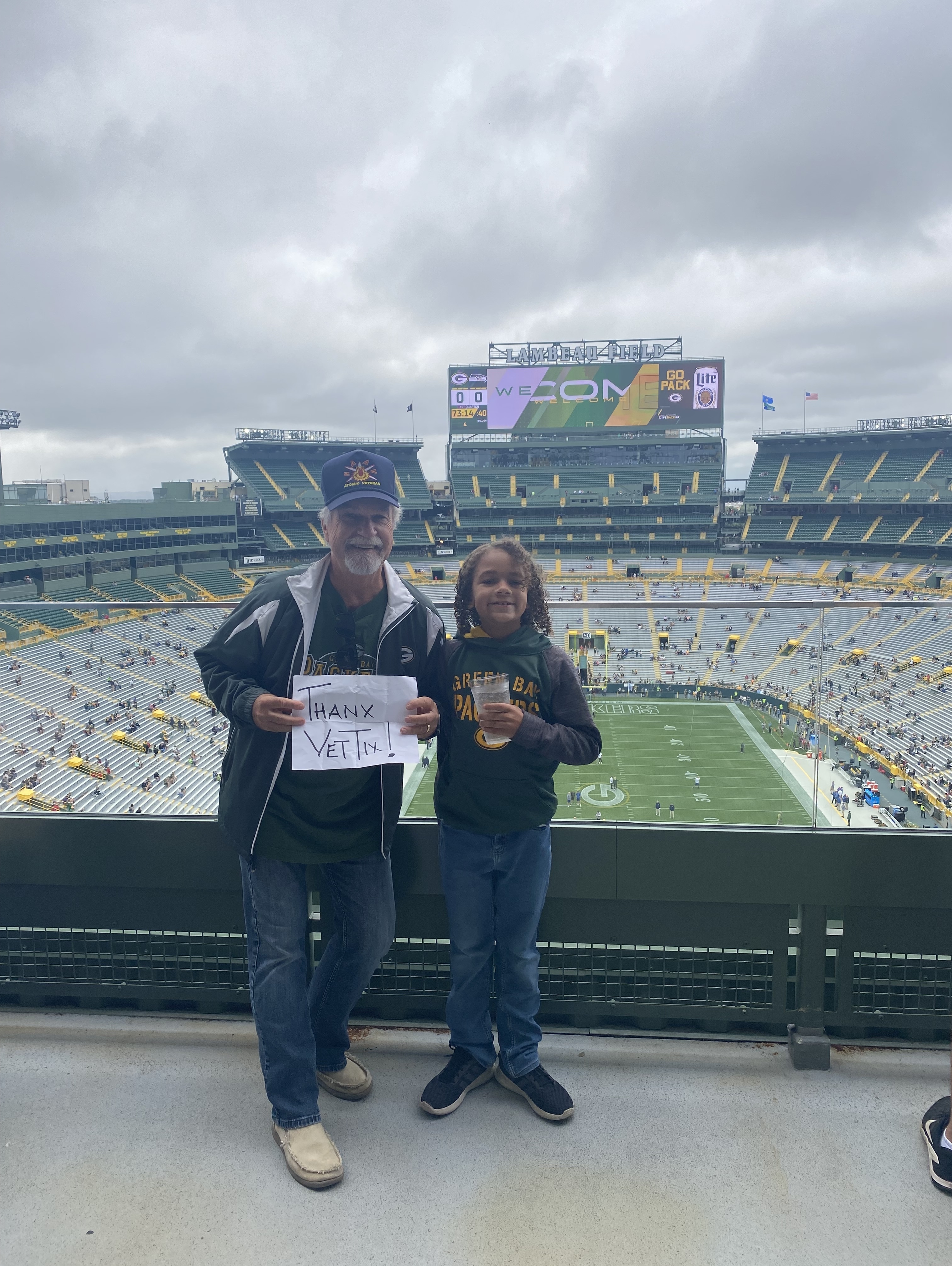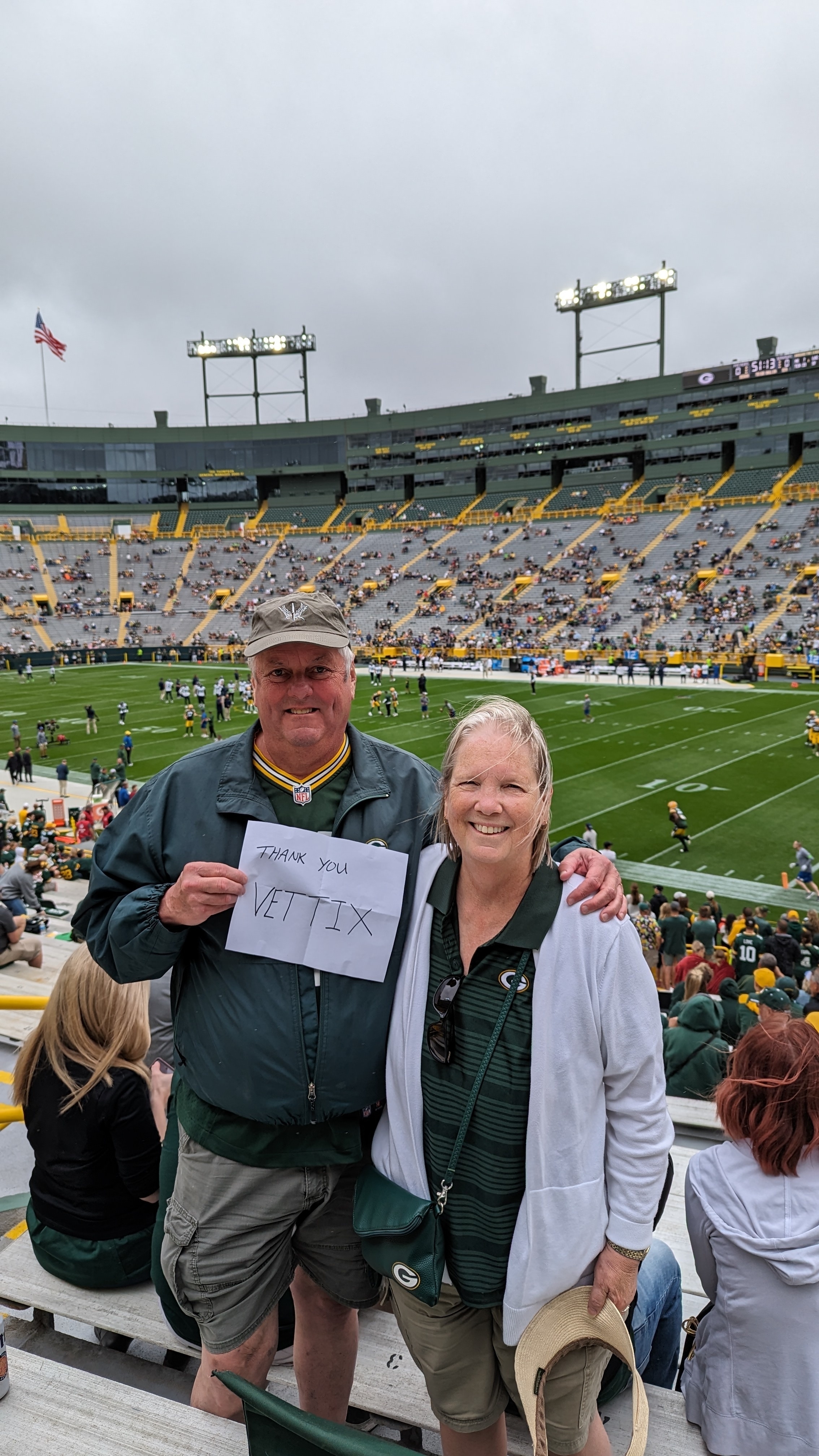 Thanks for the Packer tickets. I love seeing the Packers and appreciate the way you support veterans. Thanks.