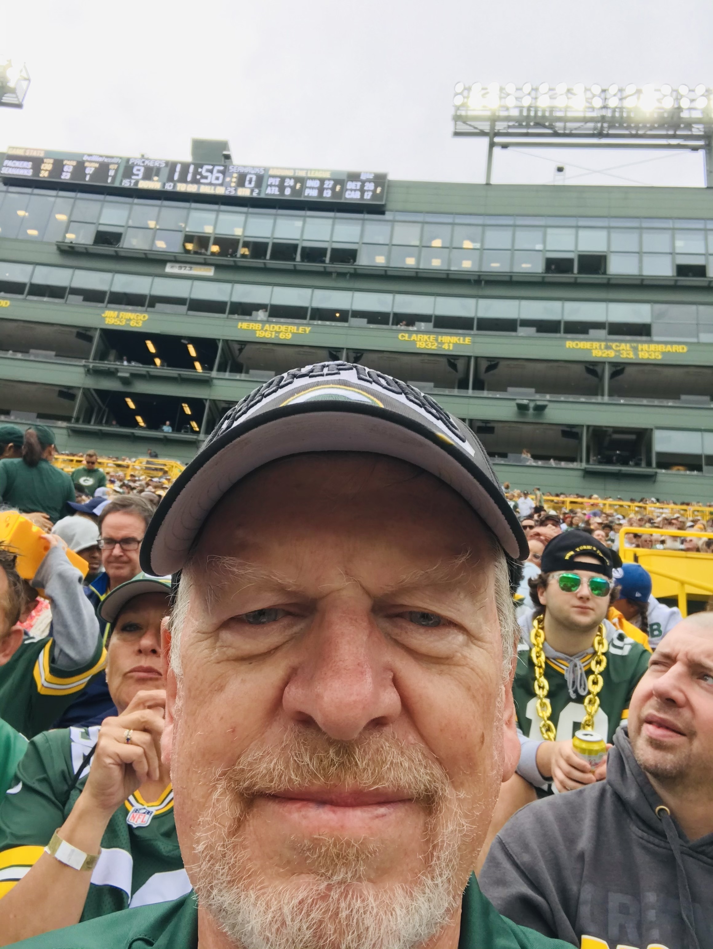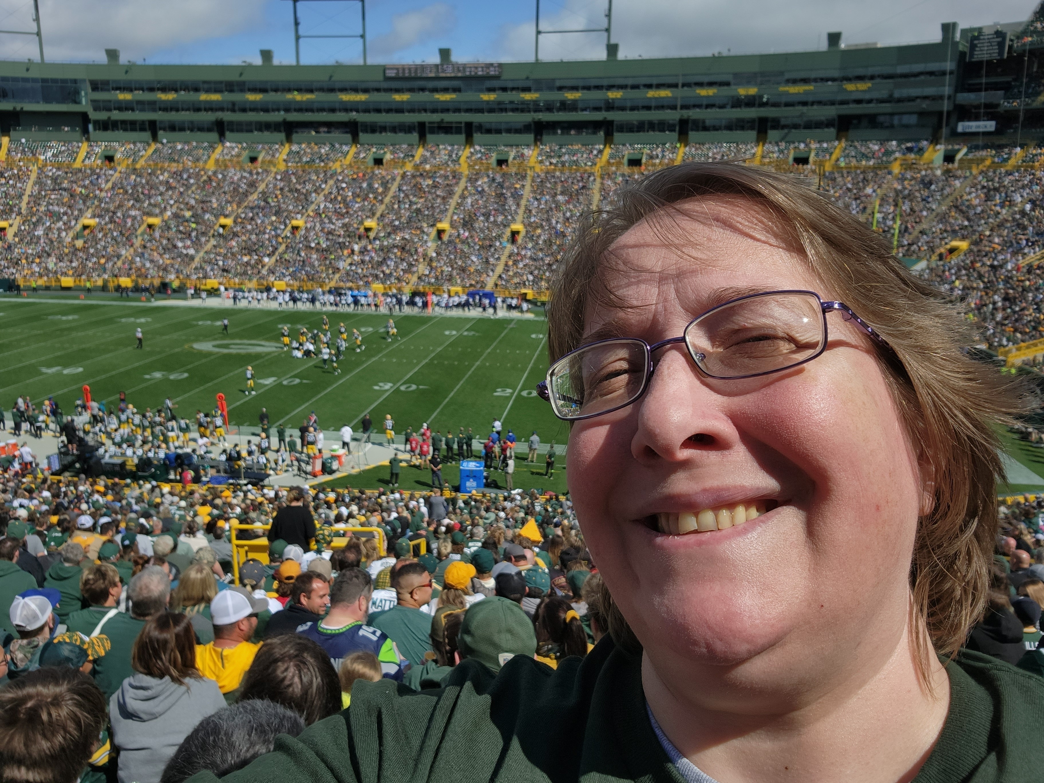 Thank you for letting me attend my first Packer's game! It was an amazing experience! I will remember it and your kindness forever! The sun was in my eyes for the picture, but I loved every minute!
