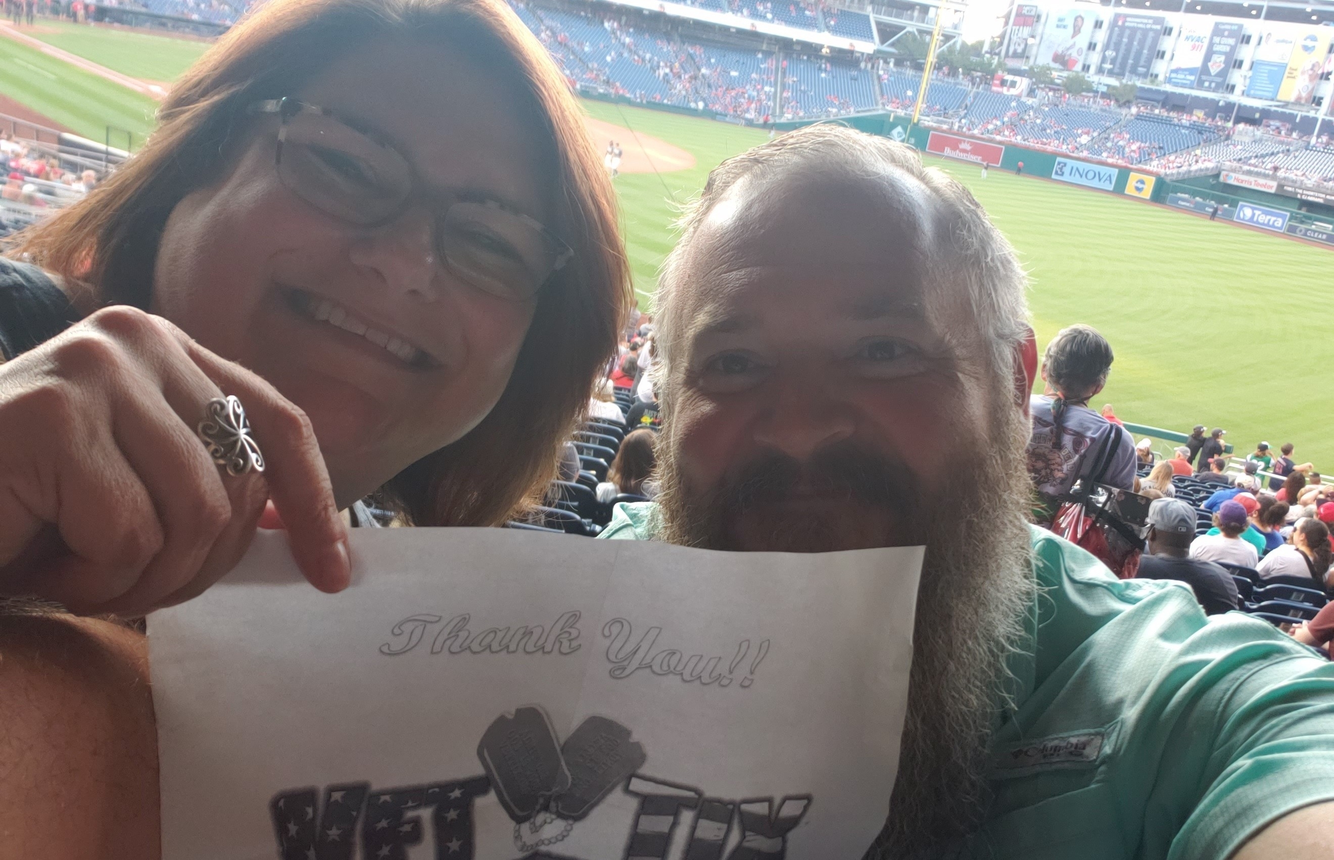 Thank you so much VetTix!! It was great to take my stepbrother to see the Nats when he was visiting! I remembered the sign this time!