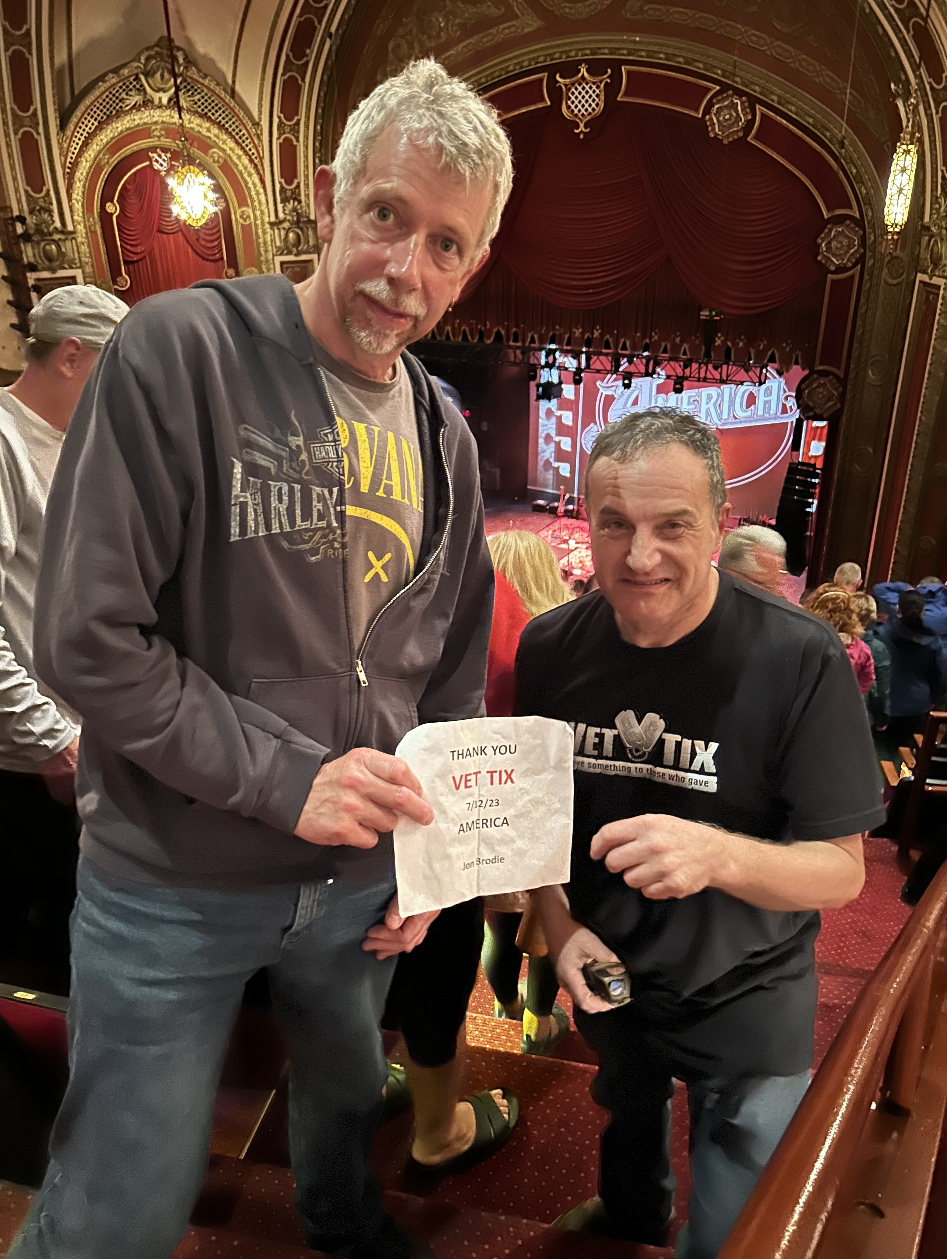 We would like to thank Pabst Theater Group for donating tickets to the America Concert last night. We have been fans of America for a long time, but have never seen them in concert. They were awesome in voice and played all the songs we love. I couldn’t believe they have done 100 shows a year for 53 years🤩 Thanks again for donating tickets to veterans- we appreciate it so much!
