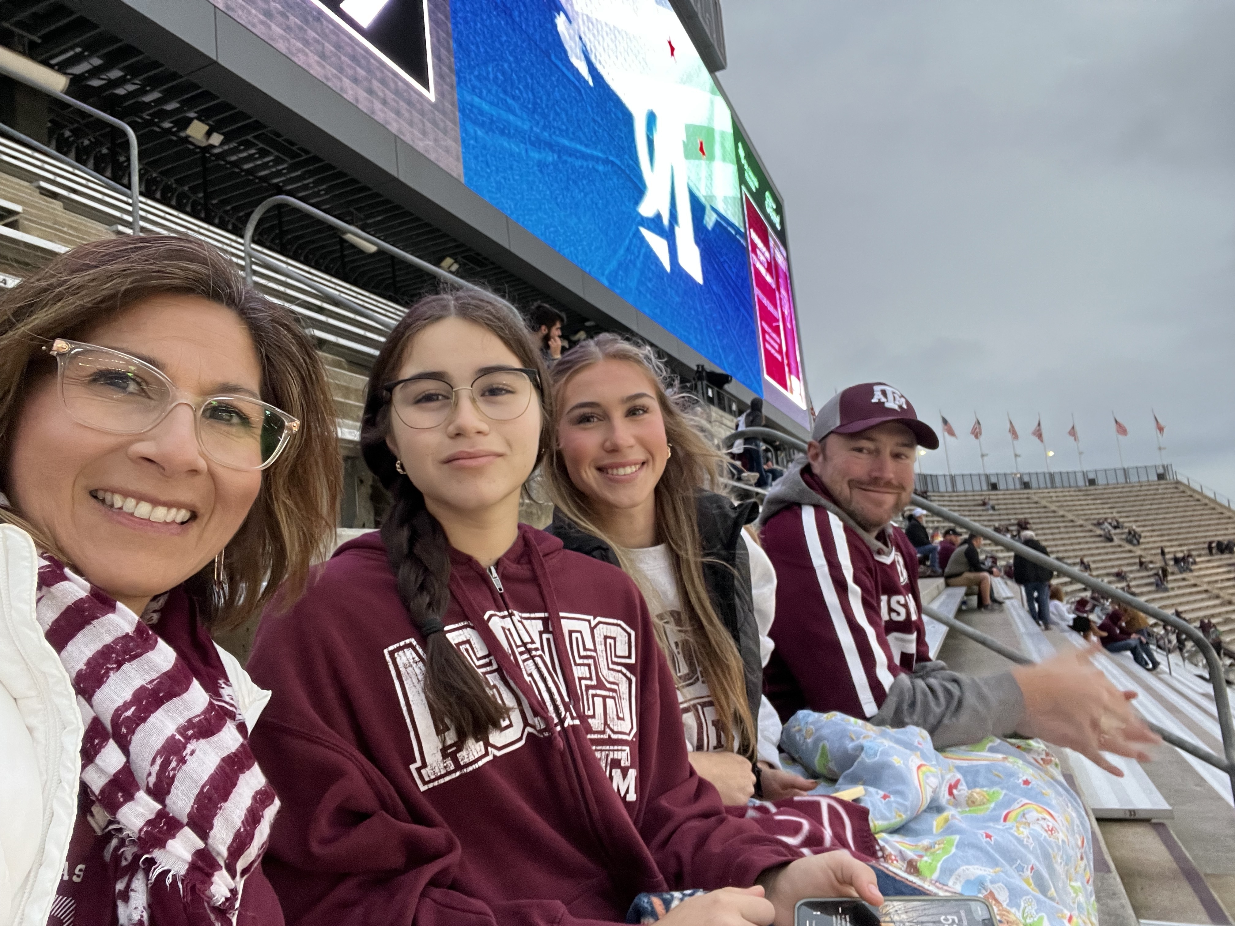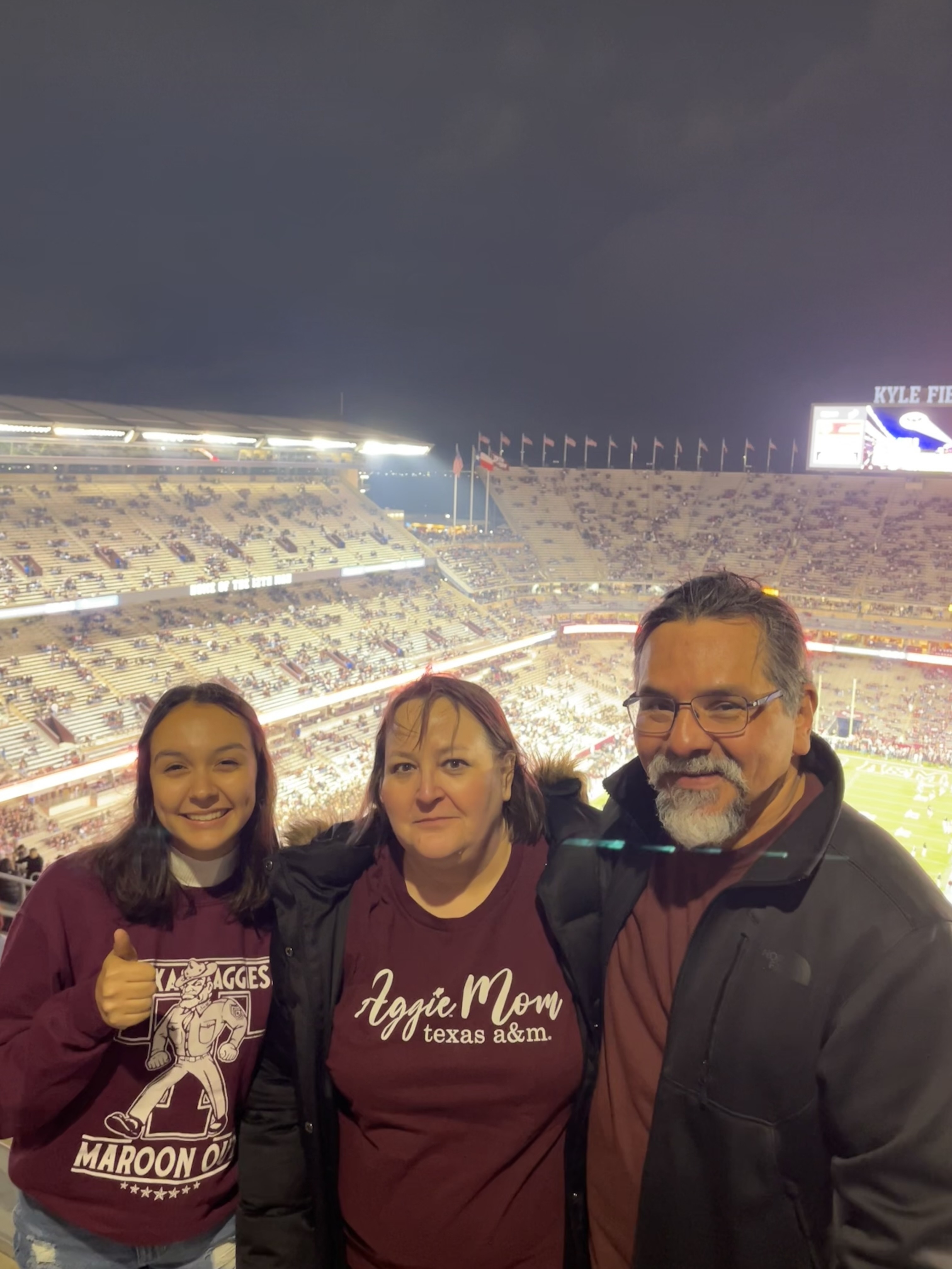 I want to say thank you so much for fulfilling one of my husbands bucket list of attending a Texas A&M game with his daughter and grandson. We had such an amazing times except of course the temperature I brought a sign but it was rained on and ripped it fell apart.