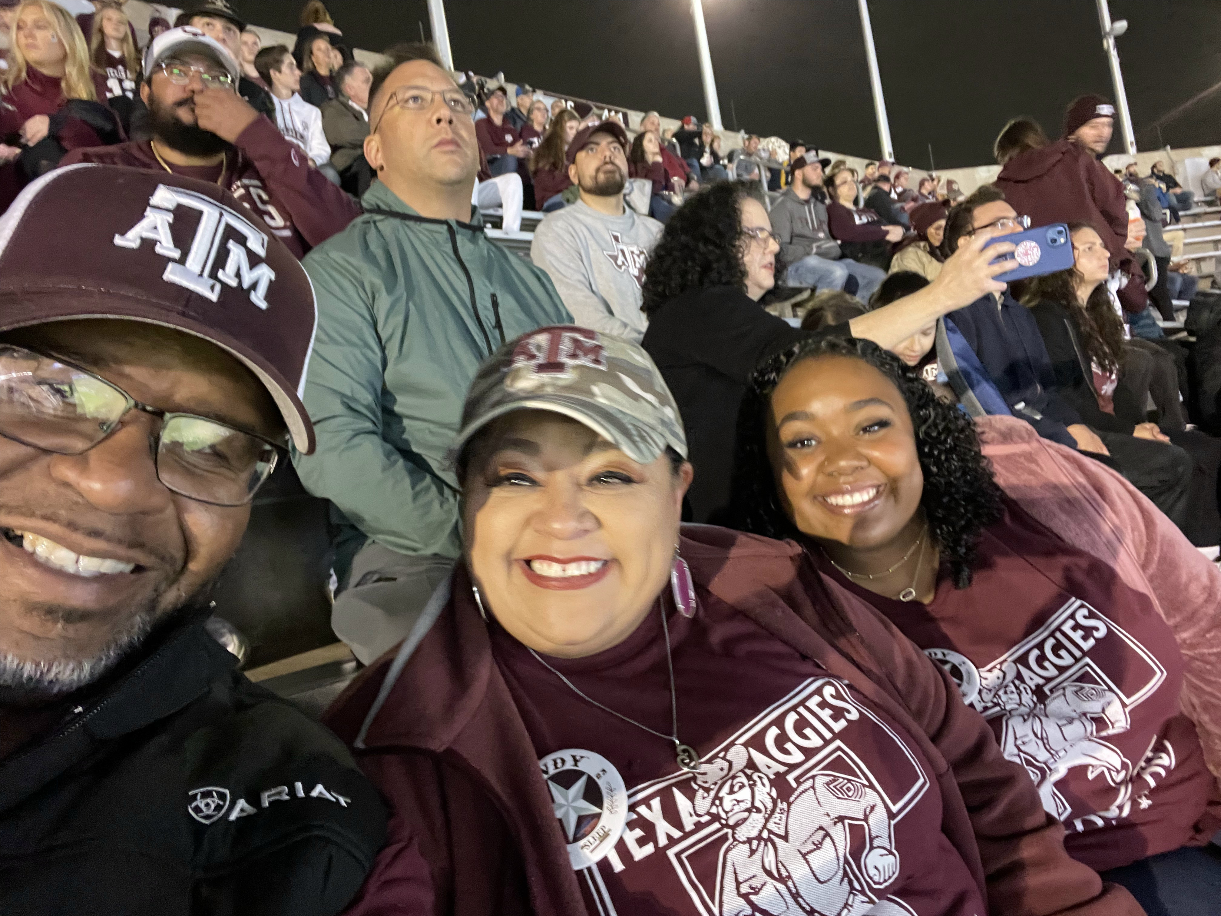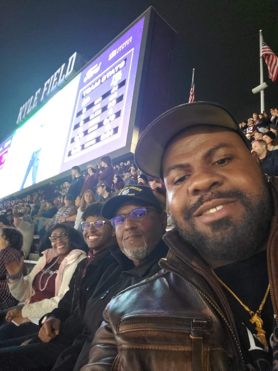 My family and I enjoyed the game last night. Thanks to Vettix for the tickets. We found another Vettix member and was able to take pictures with him and his family. So much fun. Gig’em!