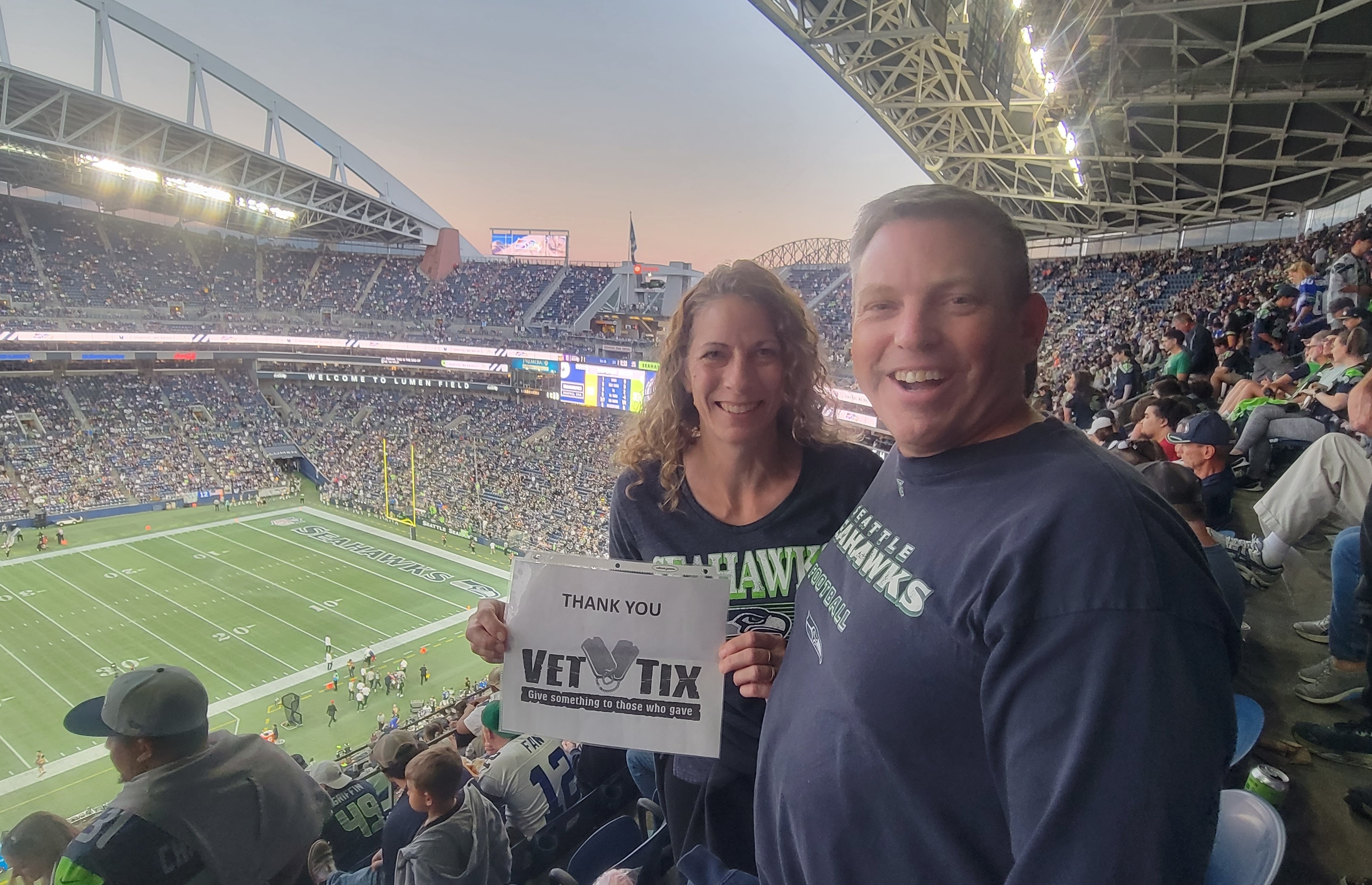We had a great time watching the Seahawks win their first preseason game. Super fun! Thank you ticket donors and VetTix for the chance to attend this awesome event!