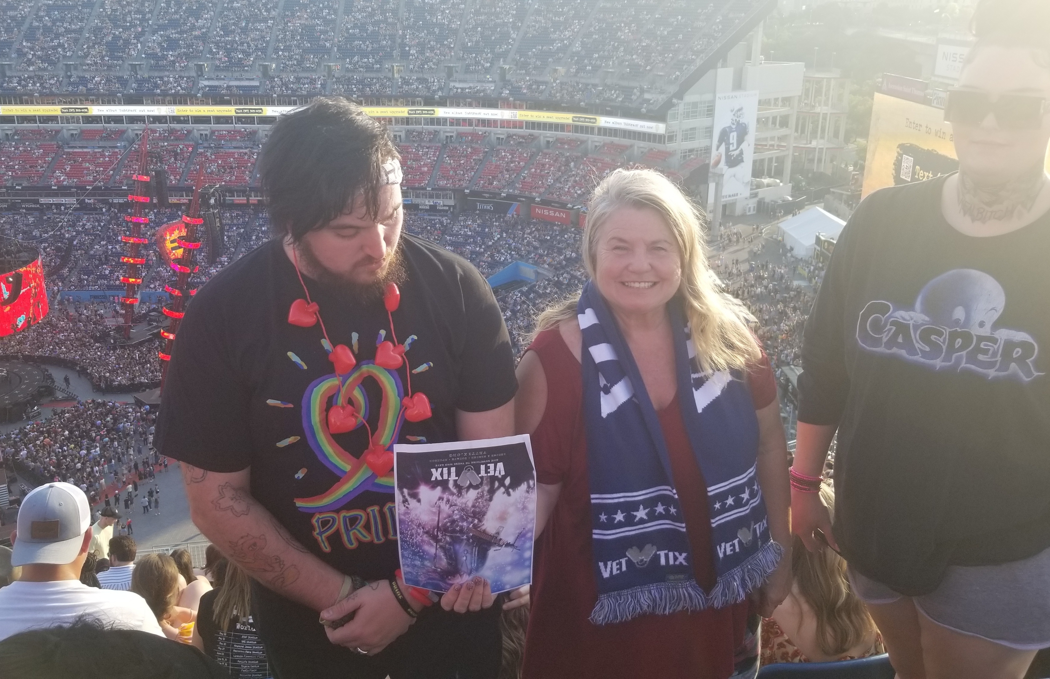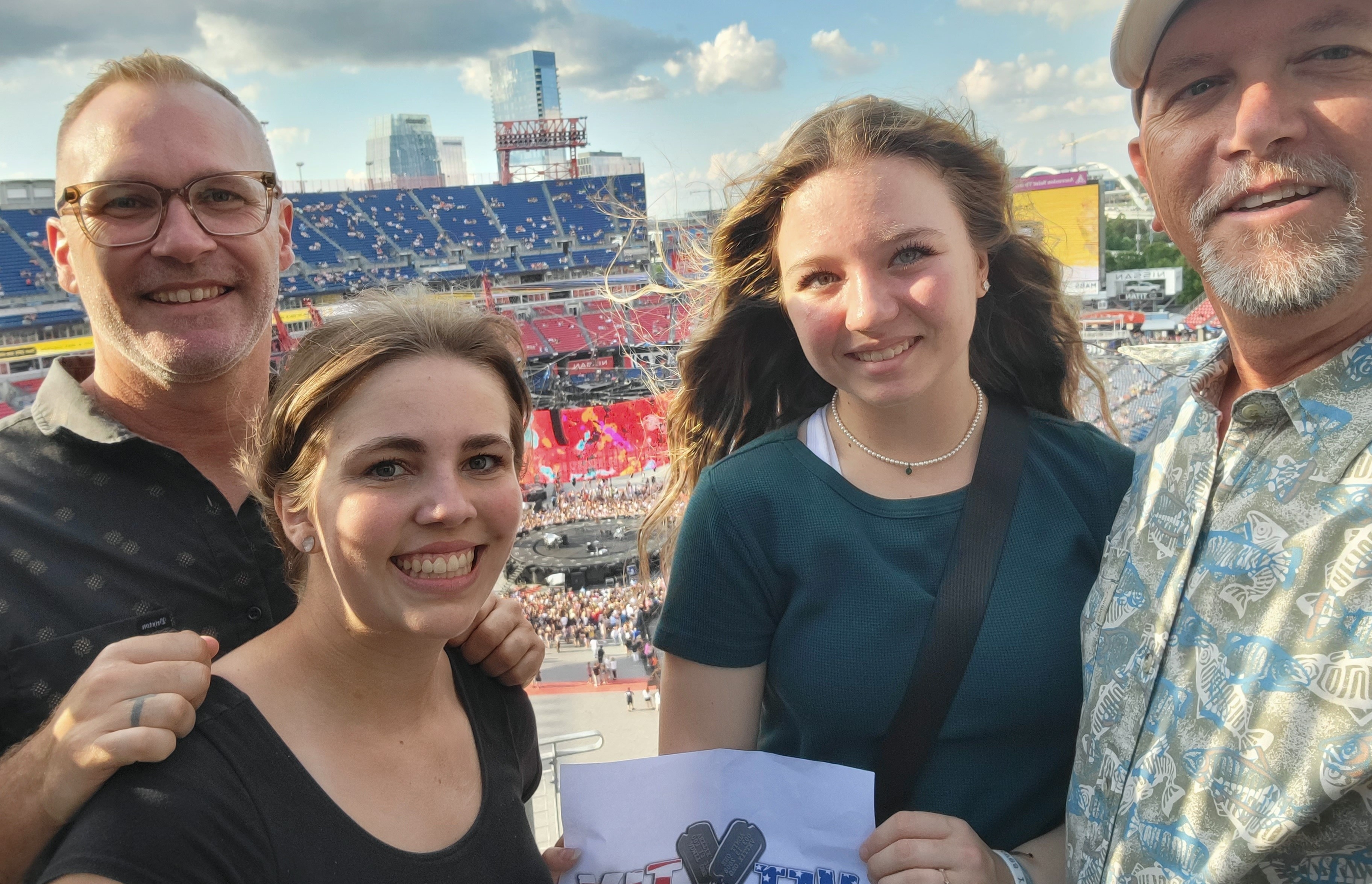Thanks so much VetTix for a wonderful Daddy-Daughter Double-Date evening with Ed Sheeran! We thoroughly enjoyed the show and really appreciate the opportunity VetTix provided. Apologies for the reverse image as we "selfied" for this thank you photo rather than having someone take it for us and totally missed that the sign would be reversed. Thank you, thank you, thank you!