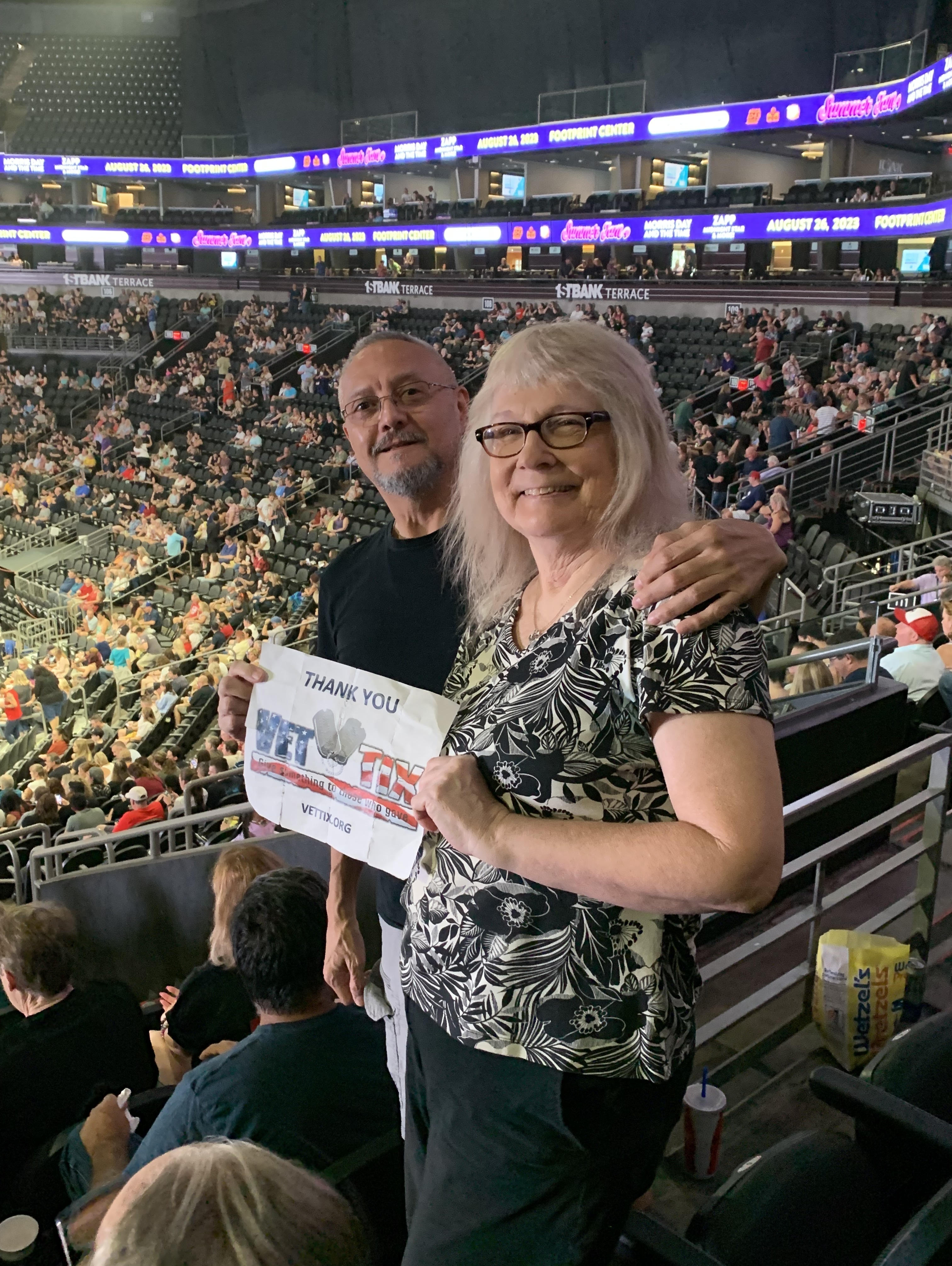 Thank you Live Nation for the opportunity to see Both Bryan Adams and Joan Jett and the Blackhearts. Footprint Center in Phoenix was the perfect place for so many fans while temperatures remained greater than 110 degrees outside. This concert brought so many memories of years past when these artist ruled. Although they have not lost anything! Thank you Vet Tix for giving so many opportunities to troops, retirees, and family.