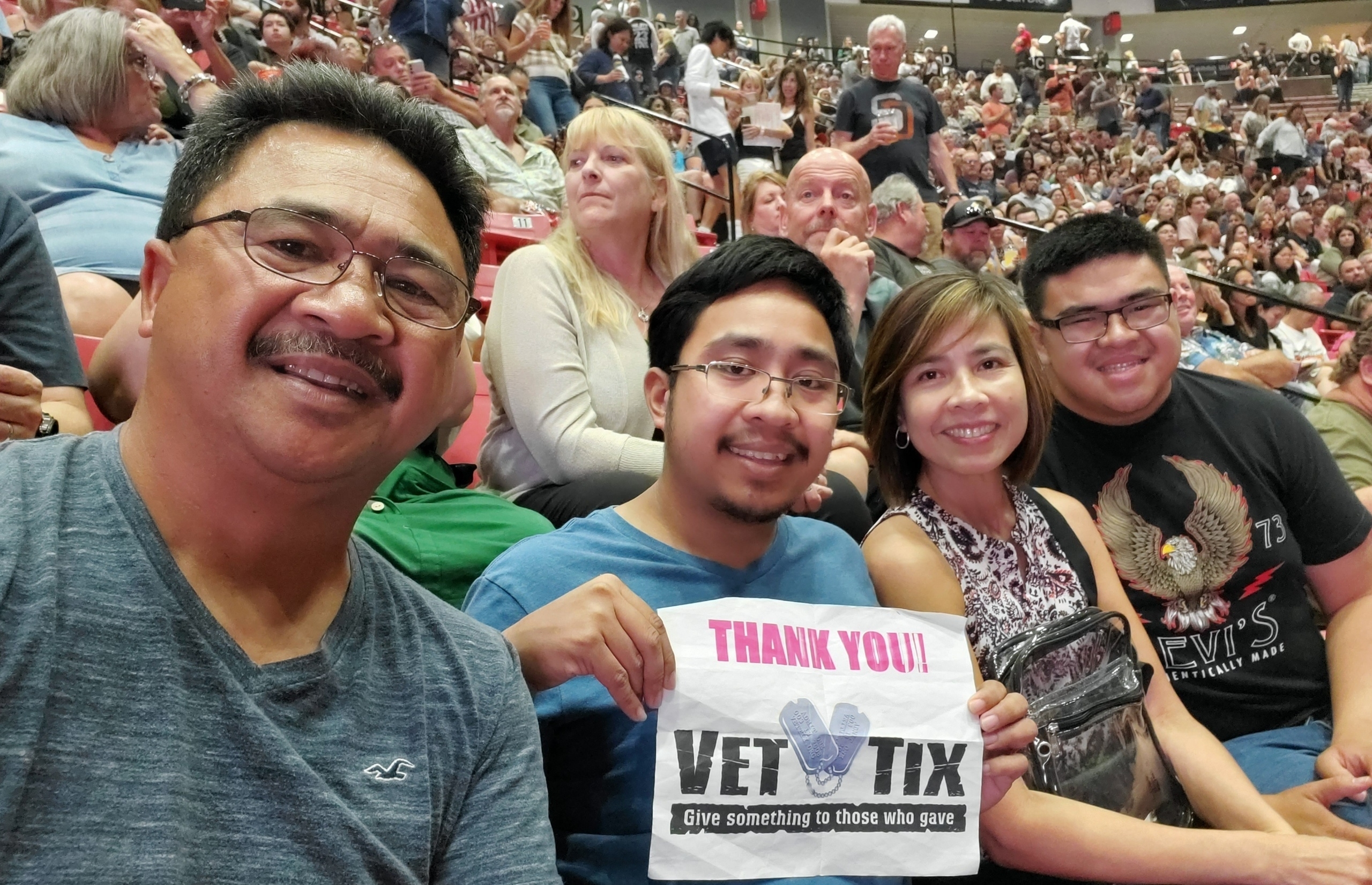 Thank you Live Nation for your generosity donating tickets to Vettix. Thank you Vettix for making this concert possible for us tonight. We had a great time!