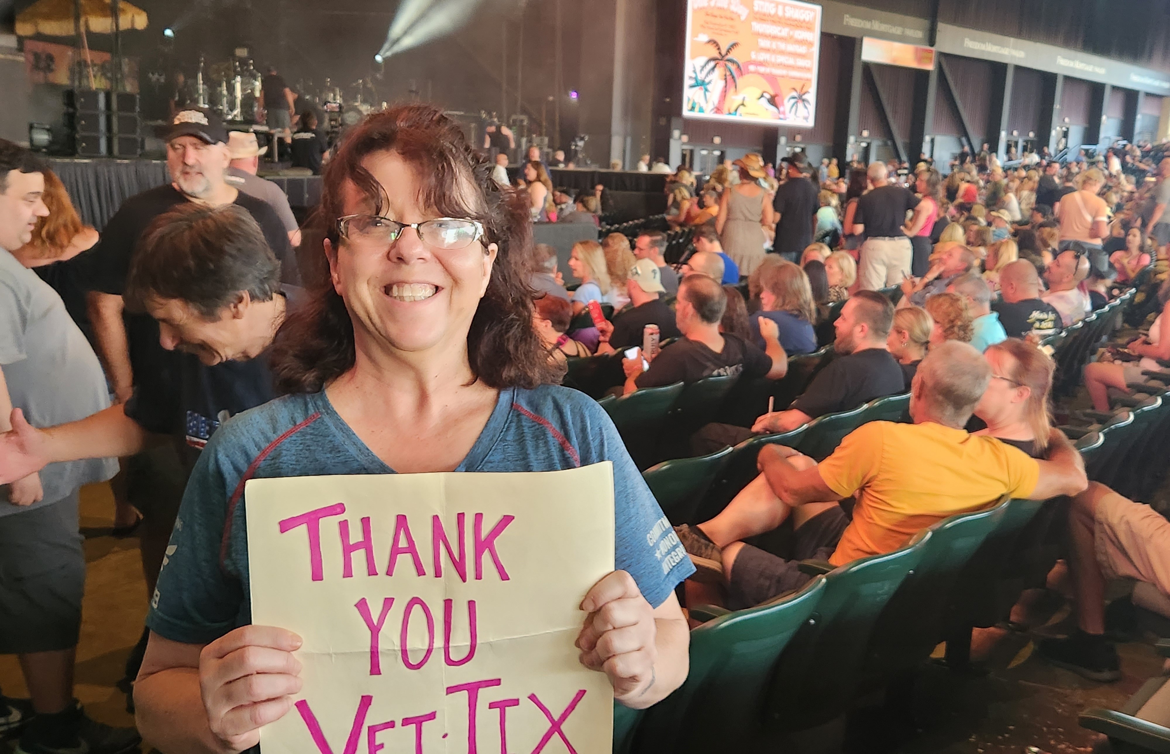 Thank you for the tickets we have such a great time last night at the concert Thank you again Thank you for honoring all the veterans last night