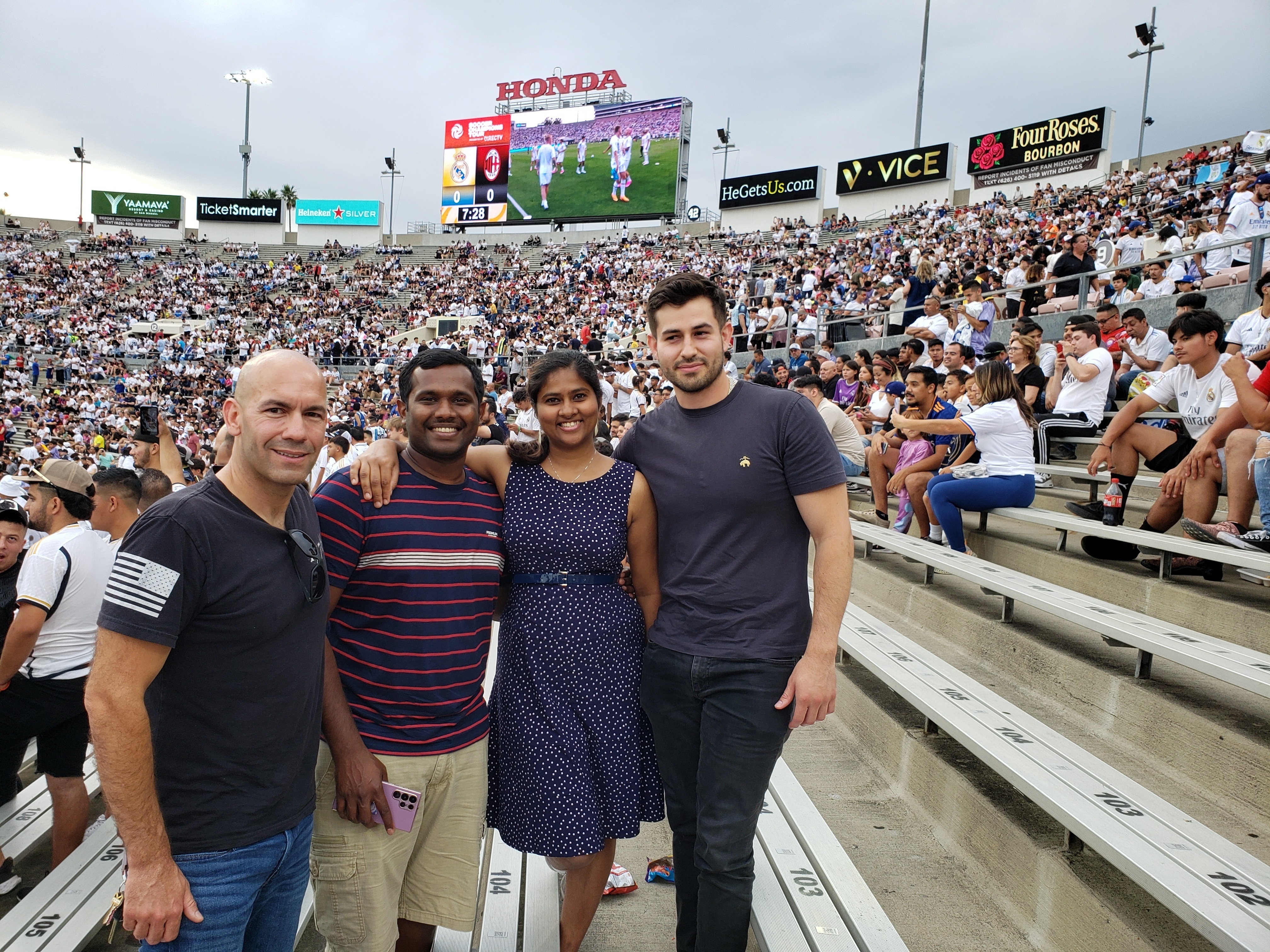 Thank you LA Galaxy so much for the tickets to the Real Madrid vs AC Milan at the Rose Bowl! This was the best soccer game I have ever been to in my life. Real Madrid had an amazing comeback after being down by 2 goals. My friends and I want to tell you how grateful we are for giving these tickets to us and supporting the men and women who have served our country!