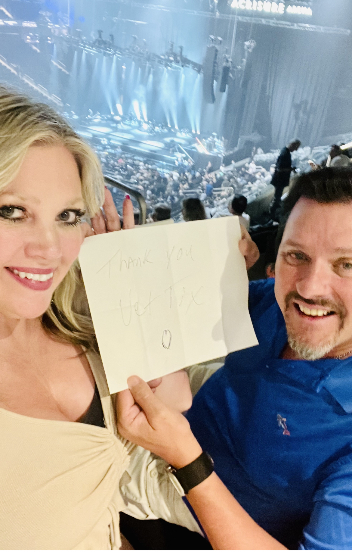 Thank you for the amazing seats and concert it was so fun.