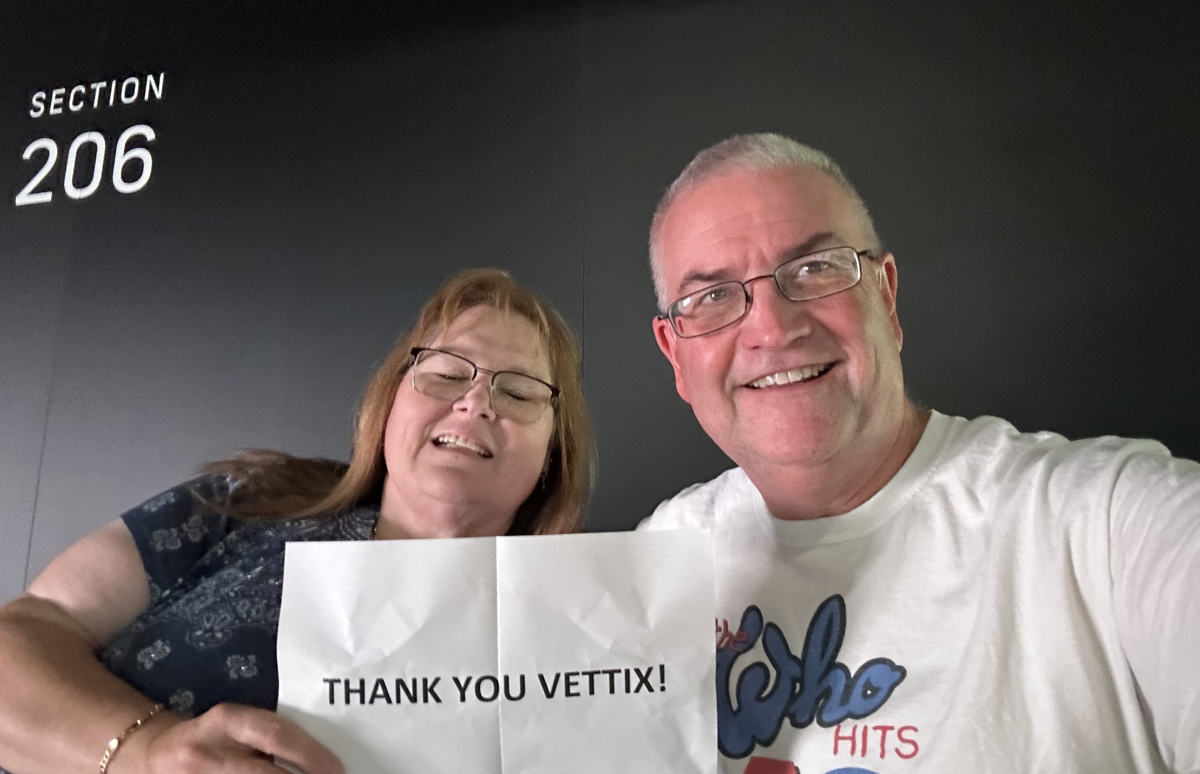 My wife and I had a wonderful experience at the concert last night. Both artists were amazing and gave us a great show. So appreciative to VETTIX for our tickets. Please keep up the great work.