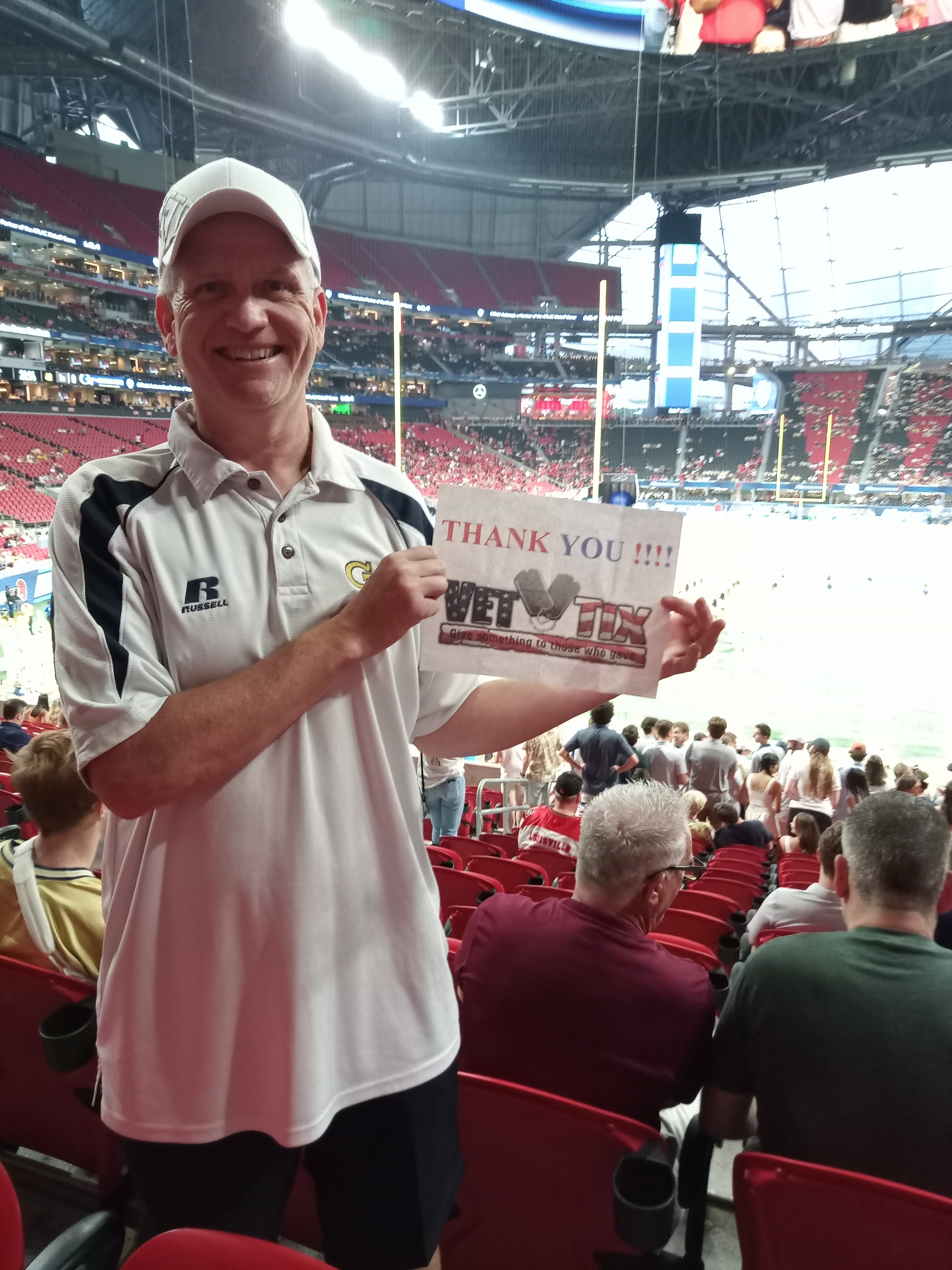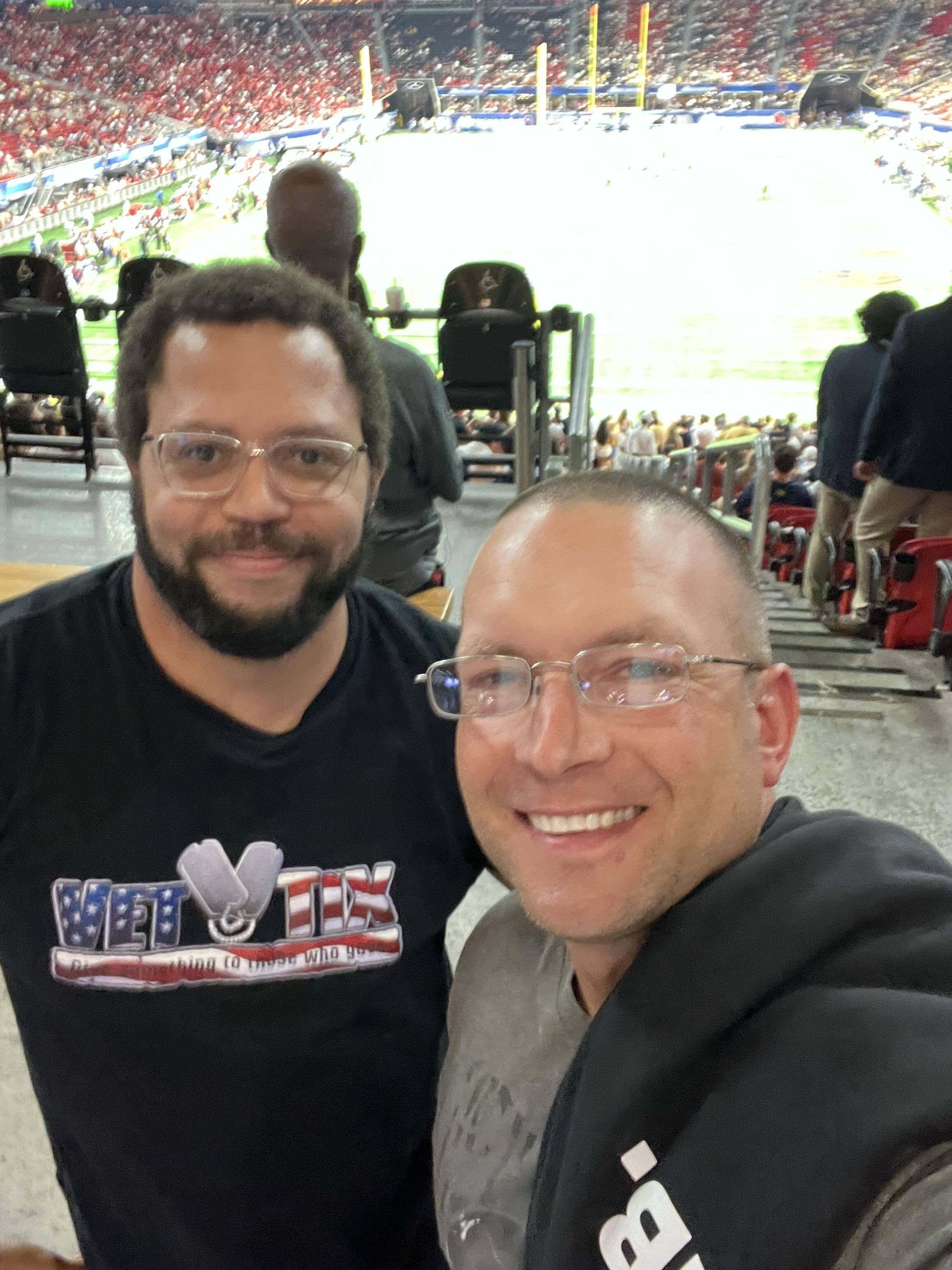 Thank you, Vettix and Chick-fil-A Peach Bowl for the tickets to the 2023 Aflac Kickoff Game: Louisville vs Georgia Tech on Friday, September 1st. It was a great time. Please keep doing what you do with donations like this to give other veterans the opportunity to enjoy events like this. It wouldn't be possible without you. Again, thank you.