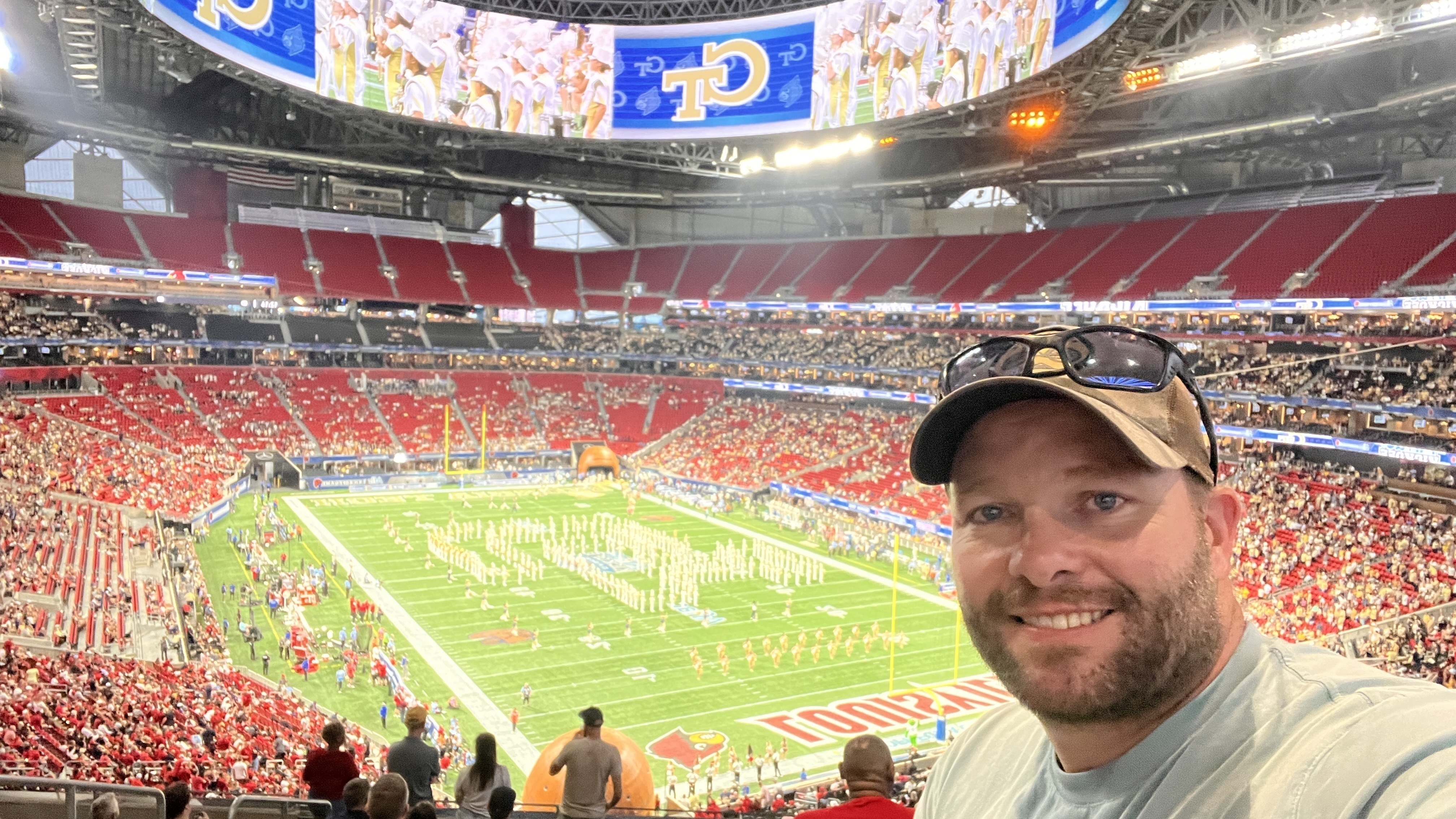 My wife ( also a combat vet ) and I had a fantastic time at the AFLAC Kickoff game last night in Atlanta. Wonderful come from behind win for the Louisville Cardinals. What a great way to start the season. Thanks to the Peach Bowl for donating the tickets.