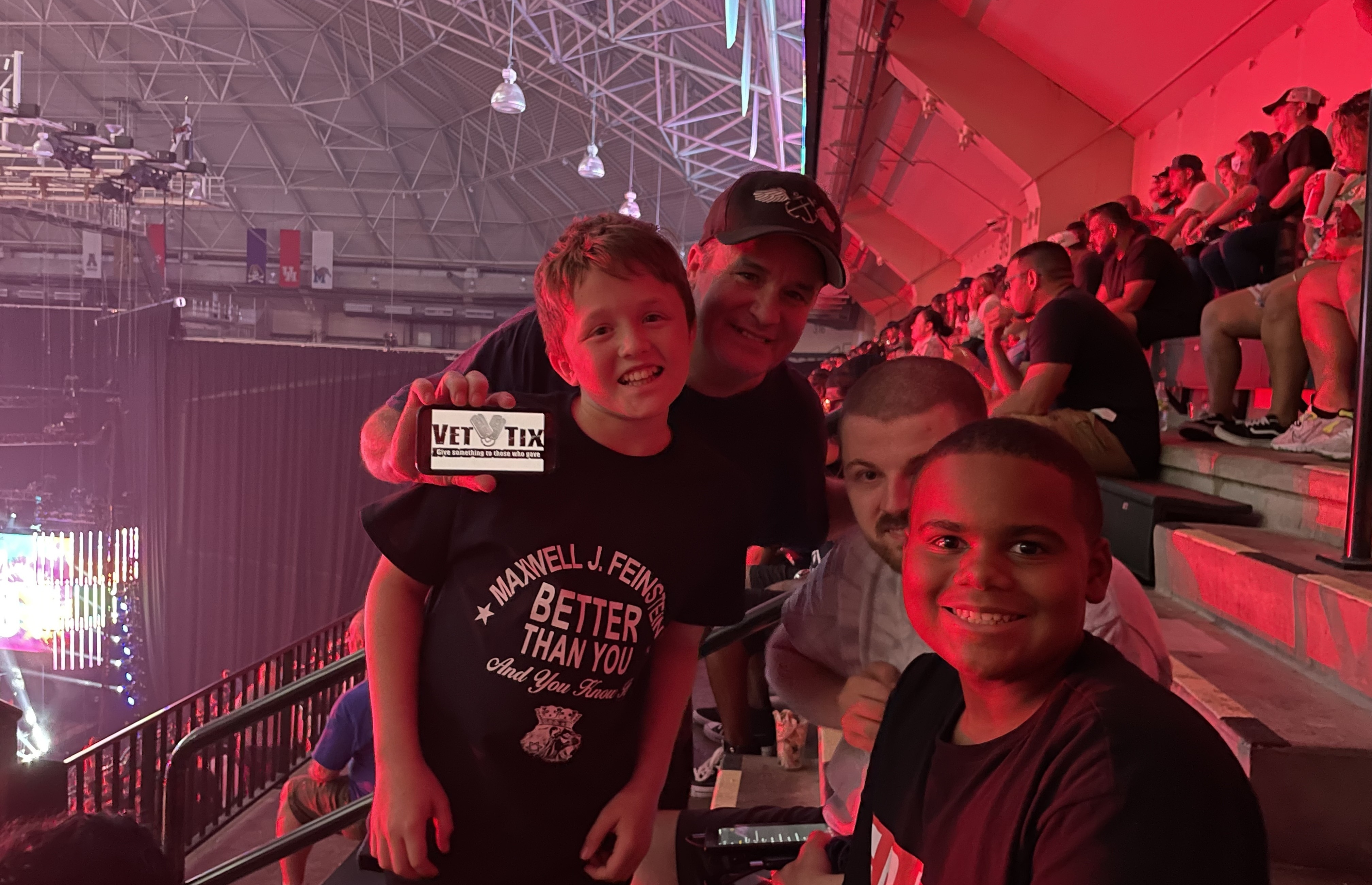 My family throughly enjoyed the wrestling show. We actually sat near other people that had the vet tix shirts on also which was cool. Thank you so much for what you all do for us Veterans.
