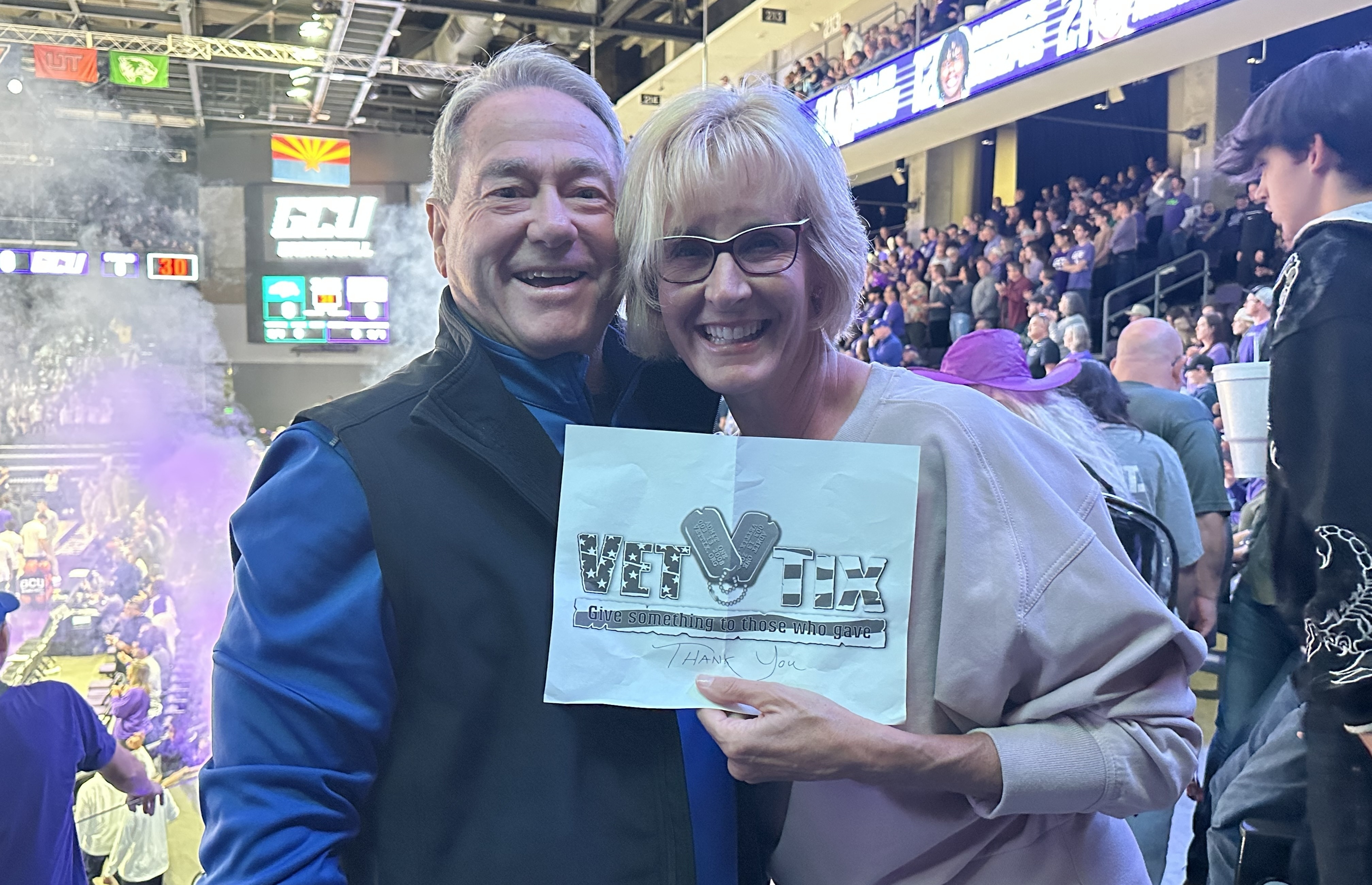 Had another great evening watching GCU basketball. What a great atmosphere for college basketball. And the Lopes won. Great seats and thanks to GCU for making it possible for us to attend. Your support of Veterans is appreciated.