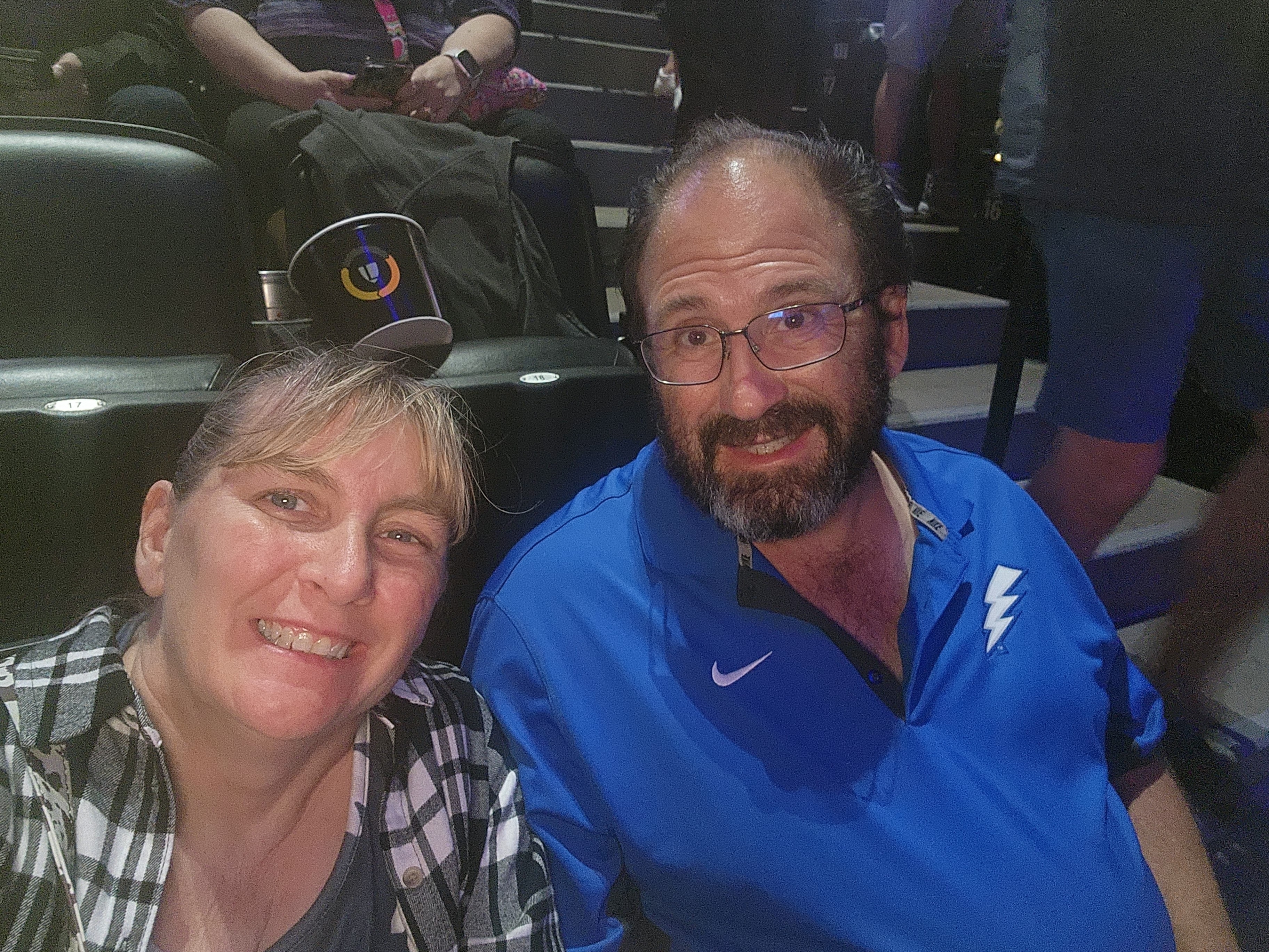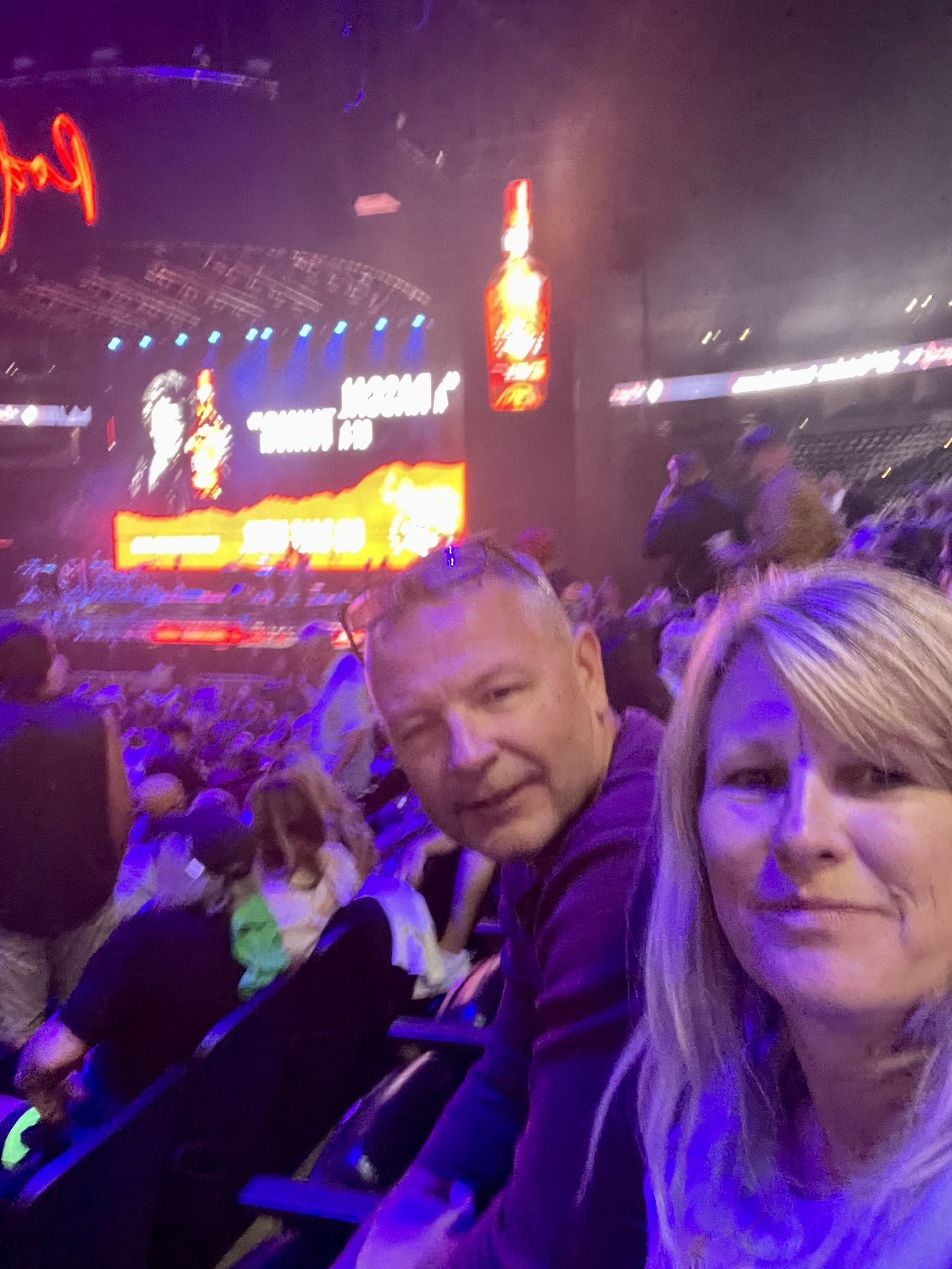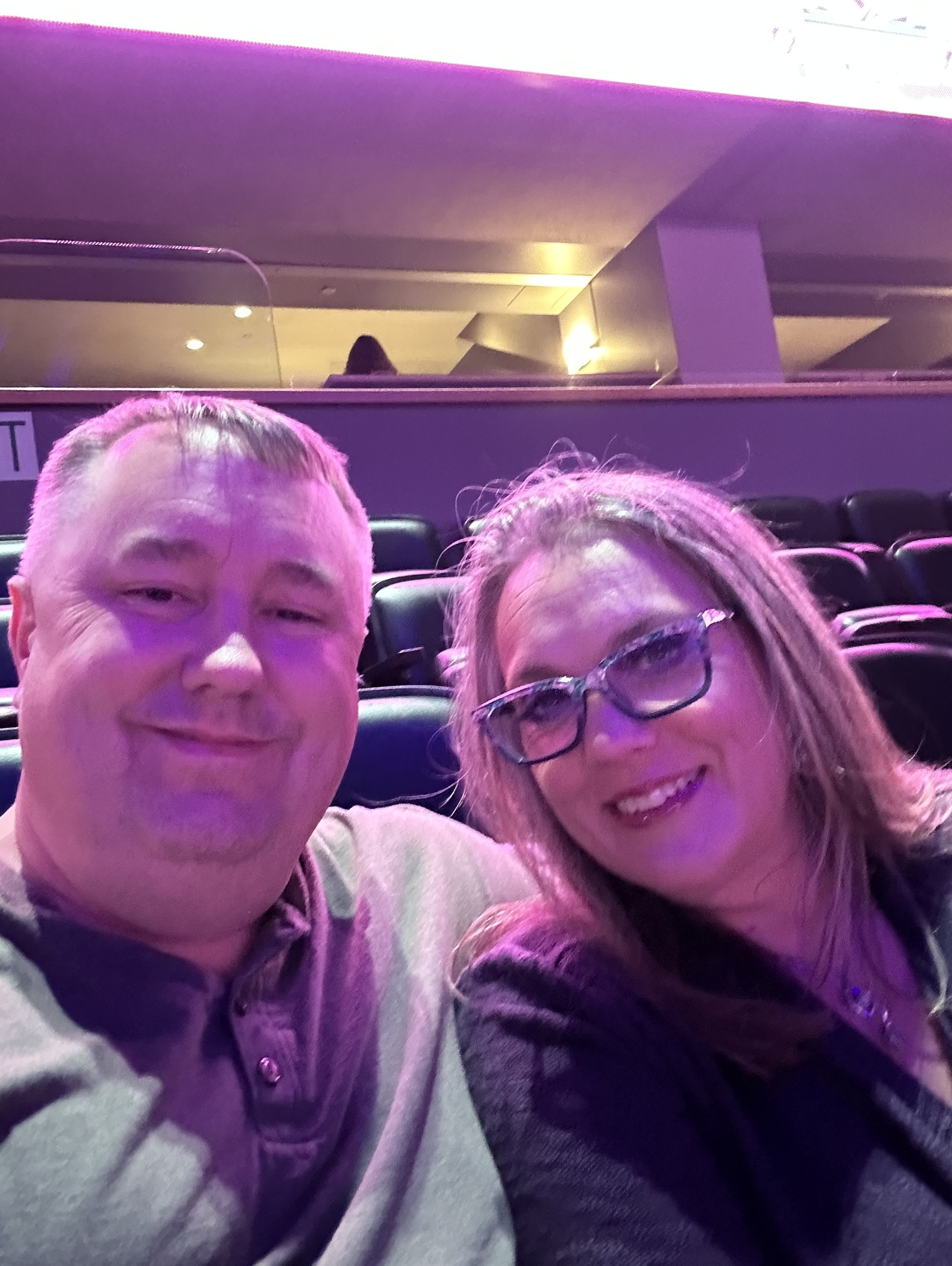 Thank you very much for the tickets. My wife and I had a blast. The lighting makes it look like we have purple paint on our faces.