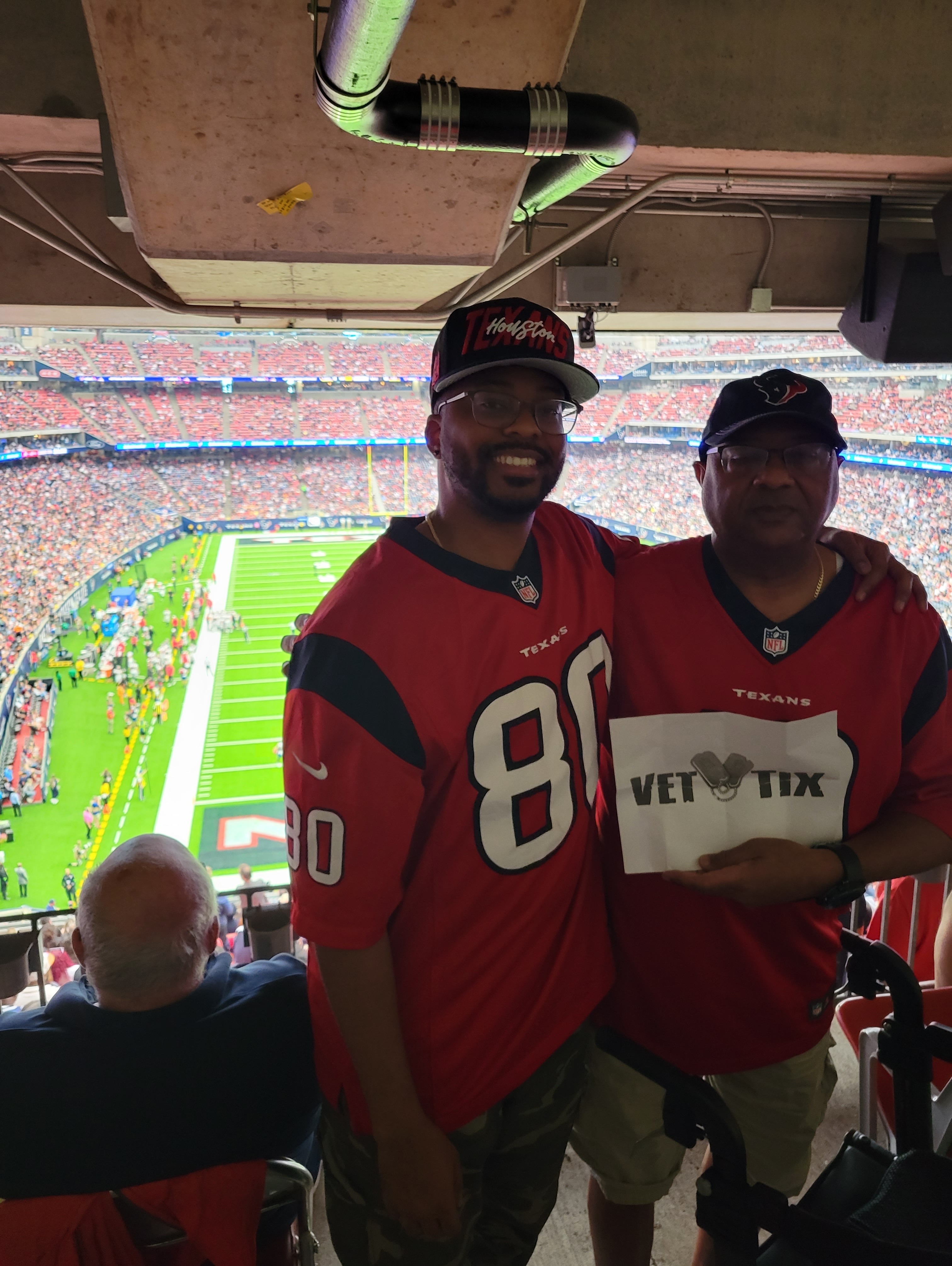 Thank you to Vet Tix, and thank you to the generous ticket donors! I have no voice left, but because of you, my brother and I were able to be a part of and witness a historic game in Texans History. It was an amazing experience!