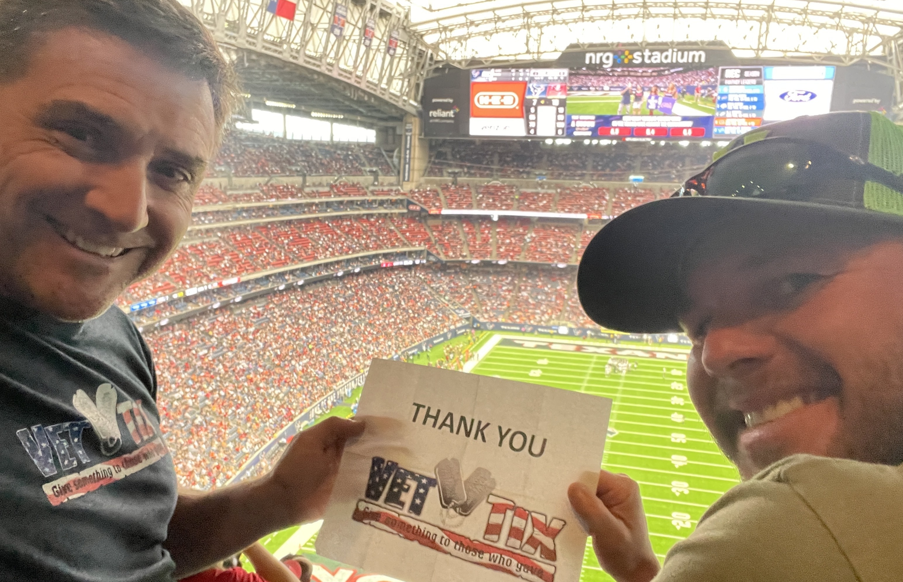 Thank you so much for the Texans tickets. It’s because of donors like you that Veterans like myself are able to enjoy football games and other events. I am very grateful.