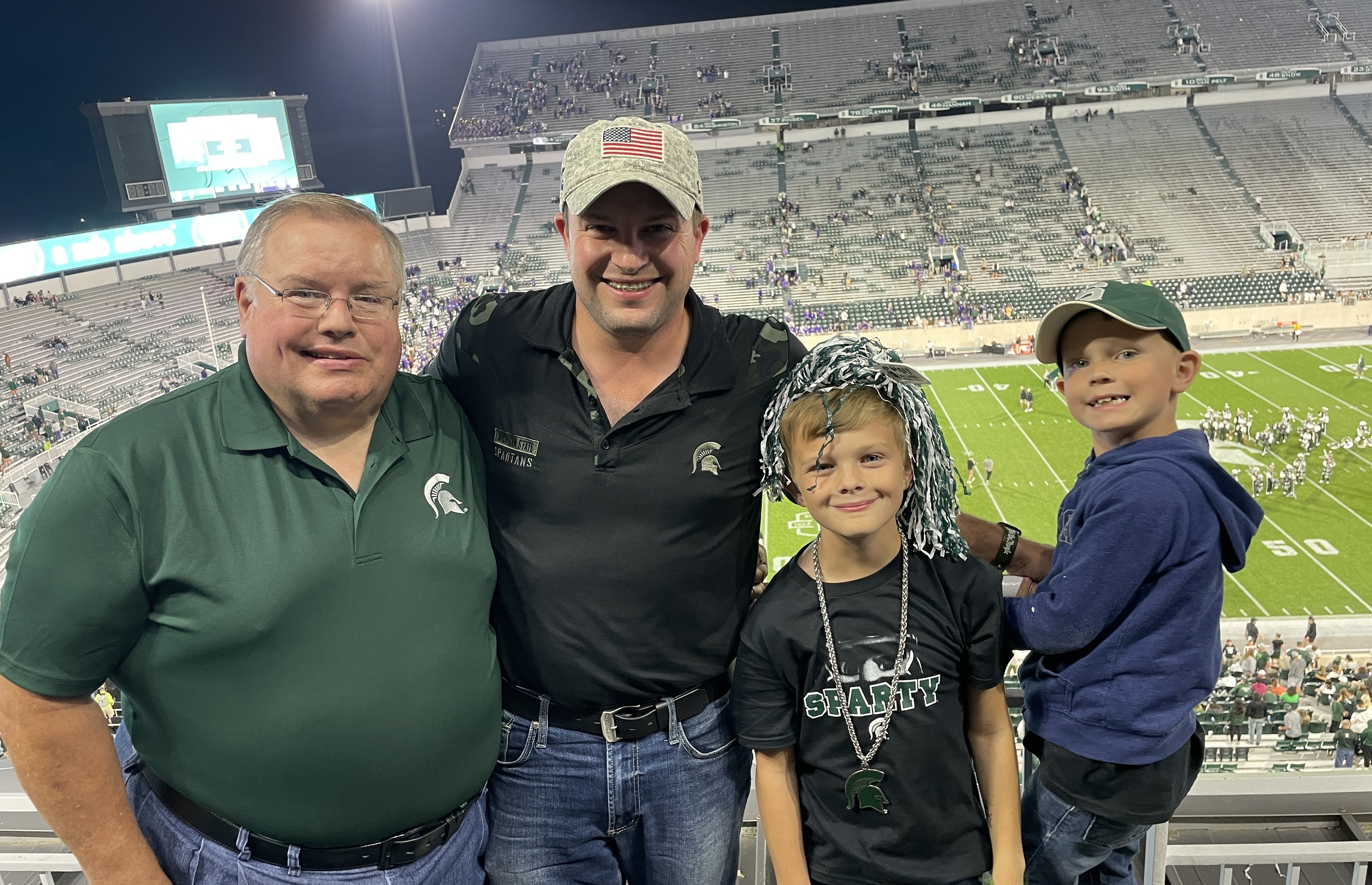 I took 2 of my sons and my Dad to this game. My Dad is a MSU Alumni and a former member of the MSU Marching band. This was one of my sons first MSU football game, and my Dad's first game in almost 20 years. 3 generations at a MSU Football game! A memory that will live forever in our hearts! Thank you so much for helping make this possible!
