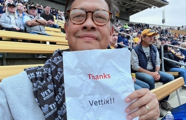 Dear Cal Golden Bears. Thank you for donating tickets to VetTix! We had a great time at the game and Cal won! Go Ye Bears! Jon