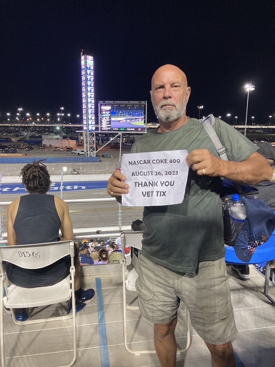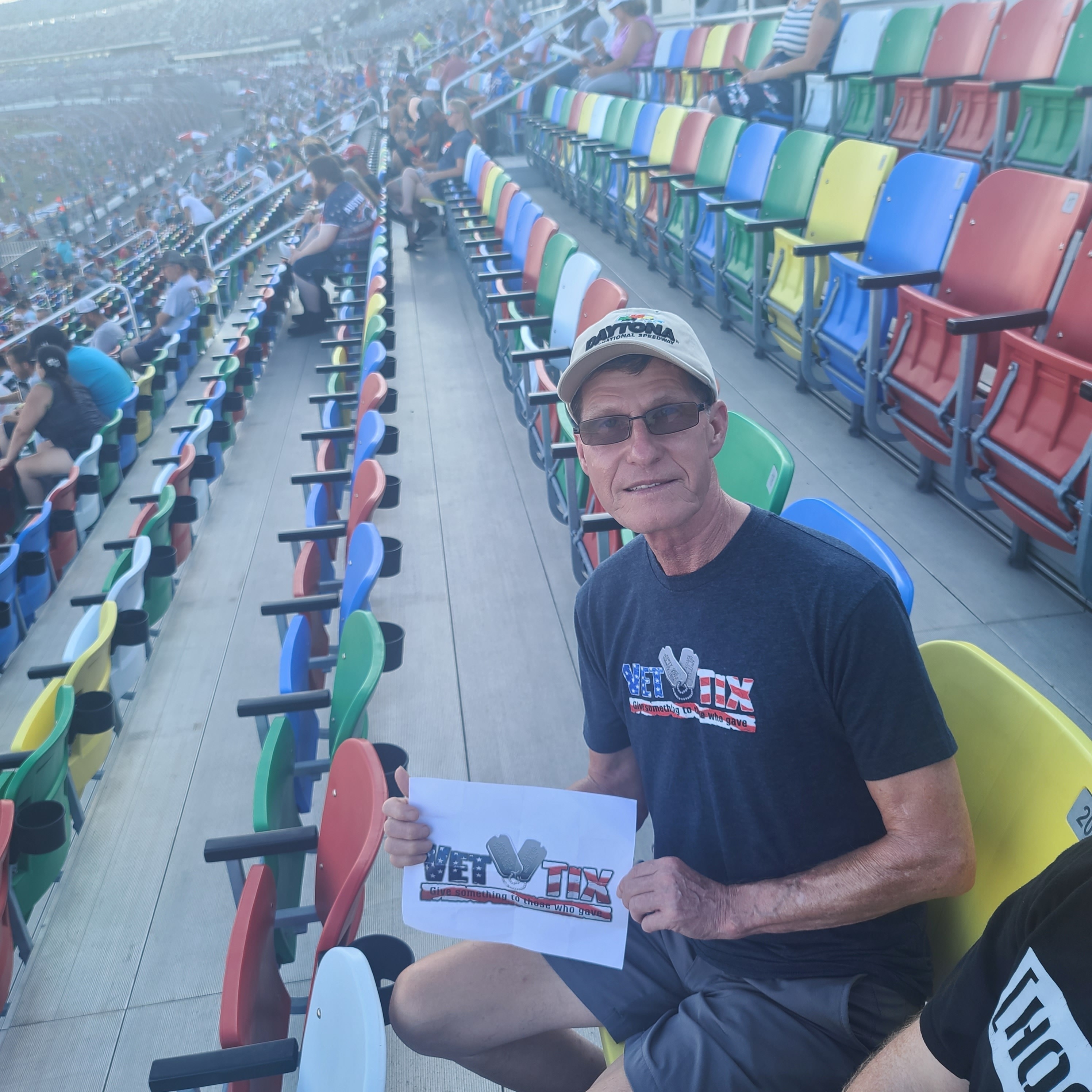 Thank you very much for the ticket donation from Veteran Tickets Foundation Purchases. The seats were fantastic and the race was amazing! I greatly appreciate the opportunity to attend the Coke Zero Sugar 400 at Daytona and look forward to more events!