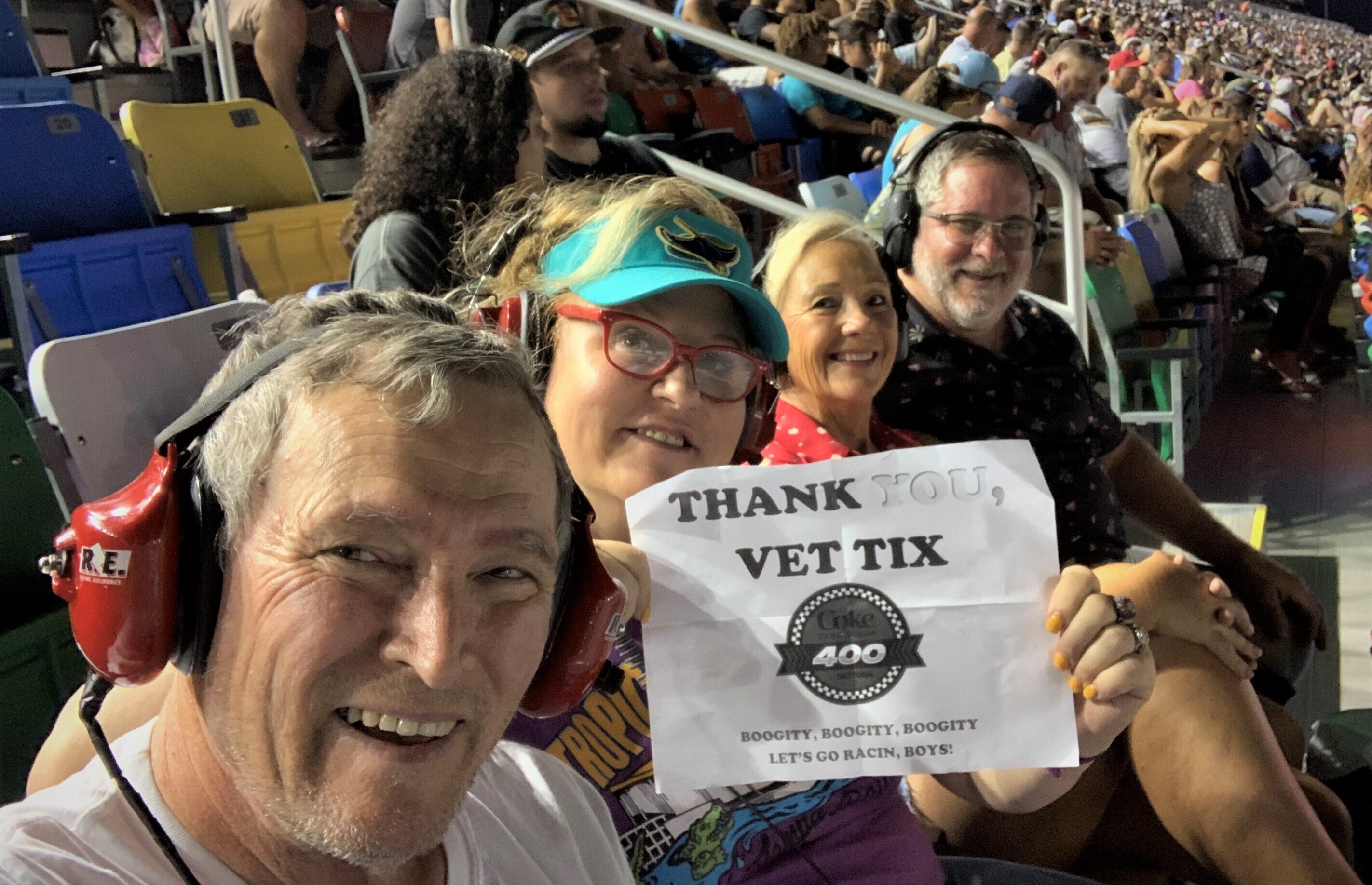 Thanks Veteran Tickets Foundation Purchases for the Coke Zero 400 tickets! It was a great race and we had a great time!