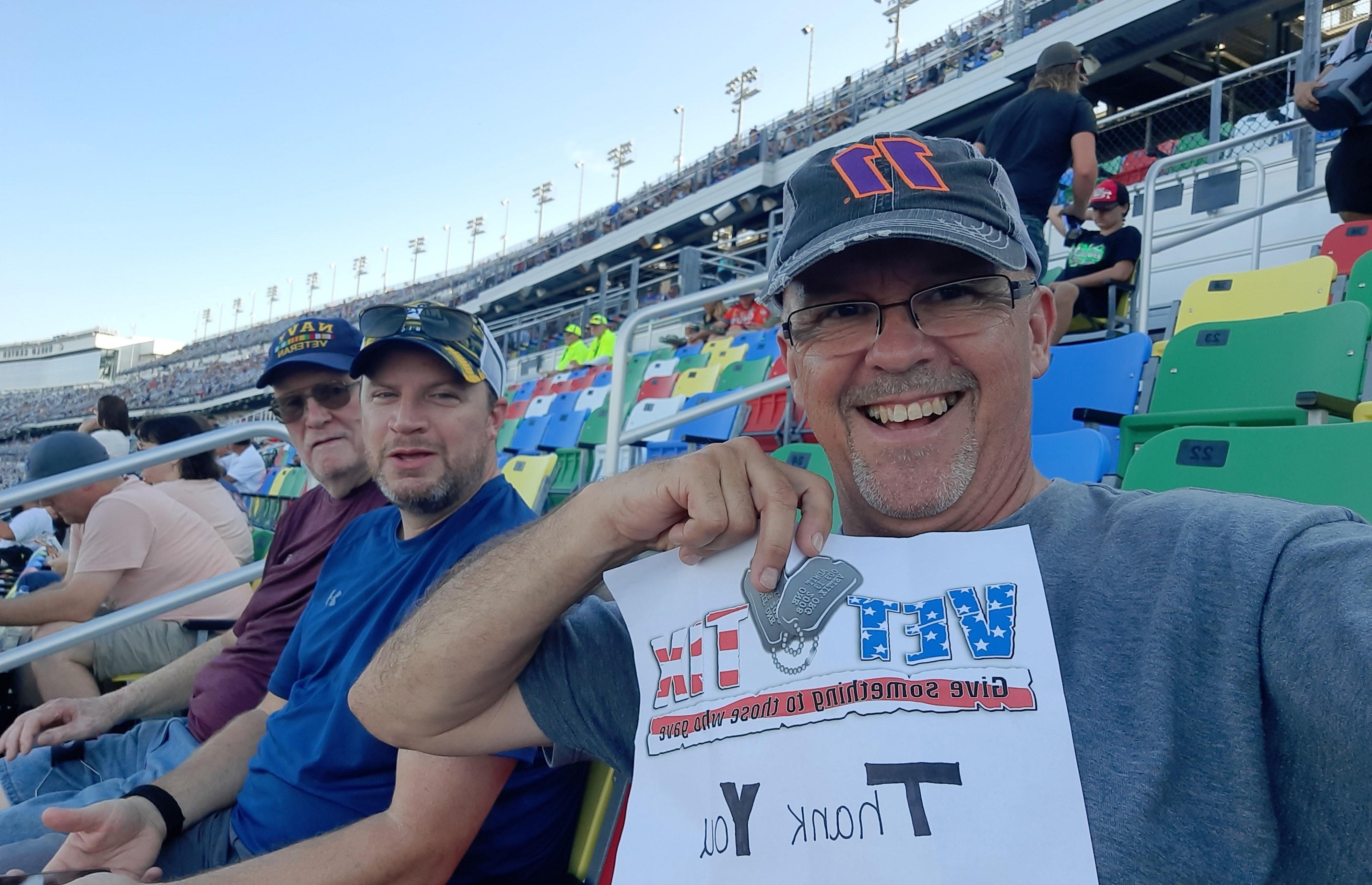 Thank you Veteran Tickets Foundation for the tickets to the Coke Zero 400 at Daytona. Thank you for supporting veterans.
