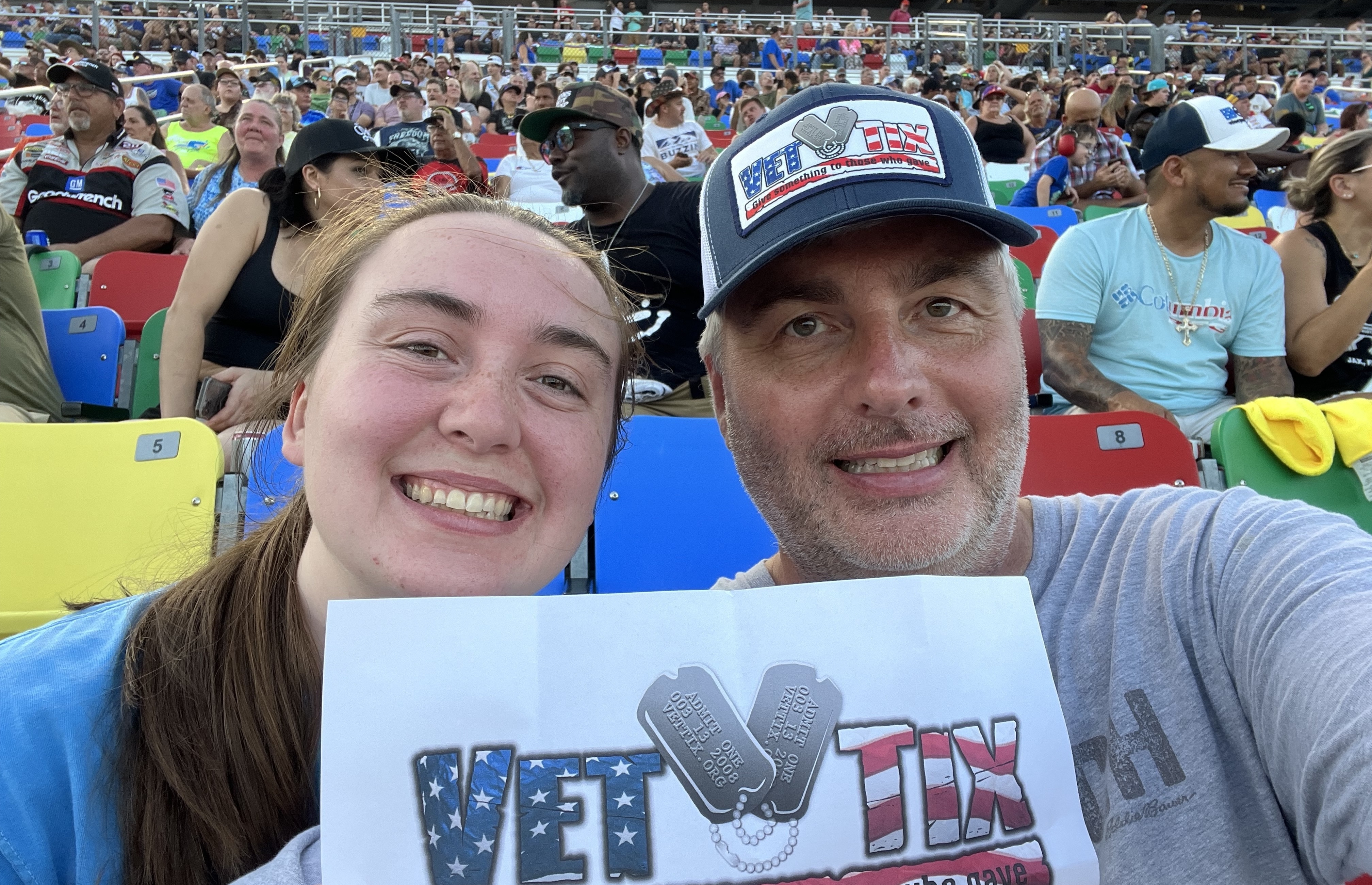 Thank you Veteran Tickets Foundation!! The Coke Zero Sugar 400 at the Daytona Speedway was off the charts!! You should know that we Vets really appreciate all that you do!! Veteran Tickets Foundation, the seats were great and we had a wonderful night watching them race under the lights. Thank you for all that you do!!