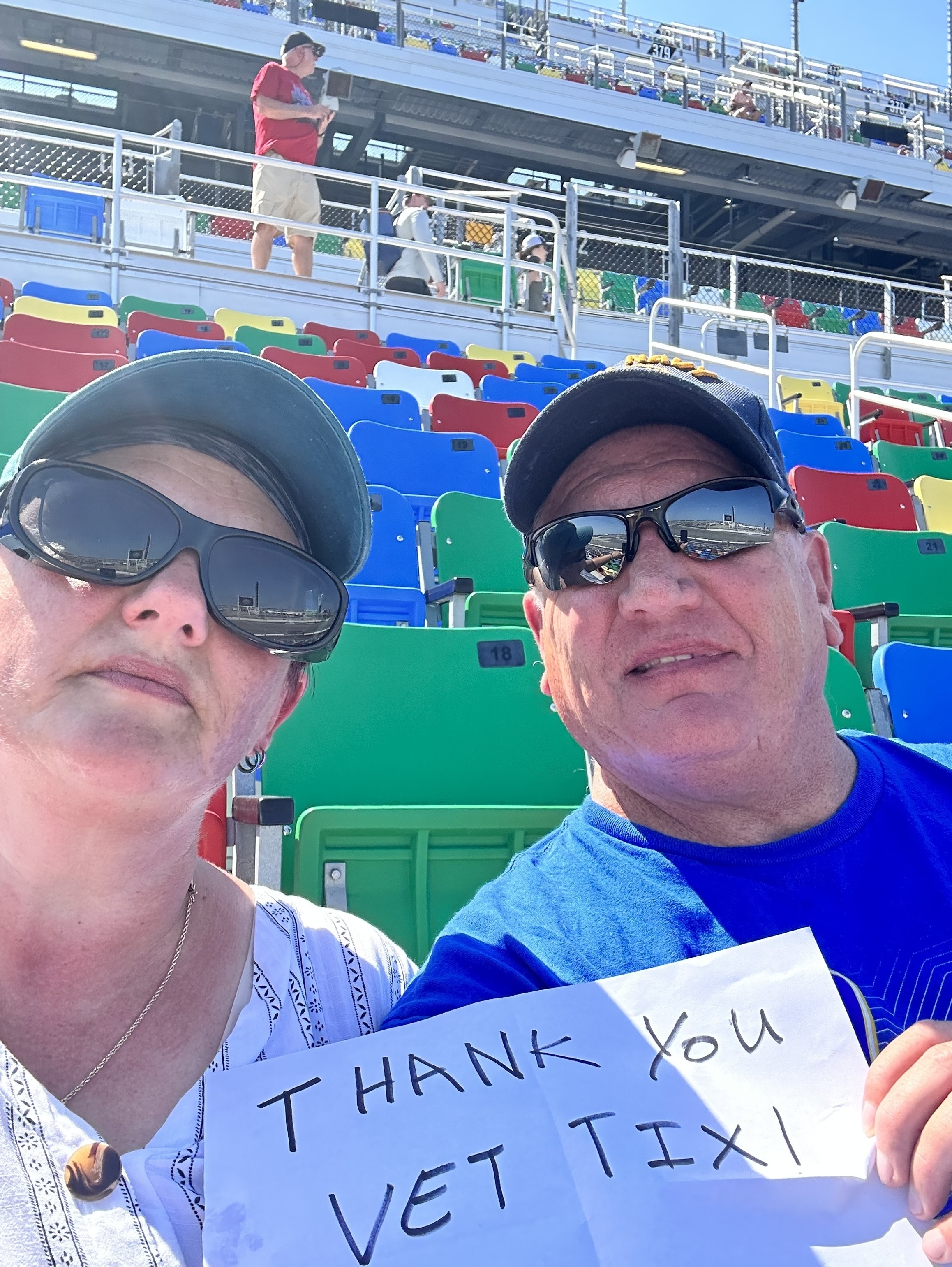 Thank you So much , this really made me Happy , I am a disabled Veteran and don't go out because of my P.T.S.D. . I was able to enjoy NASCAR like a Boss . AGAIN THANK YOU SO MUCH FOR THE TICKETS AND THE MEMORIES ❤️