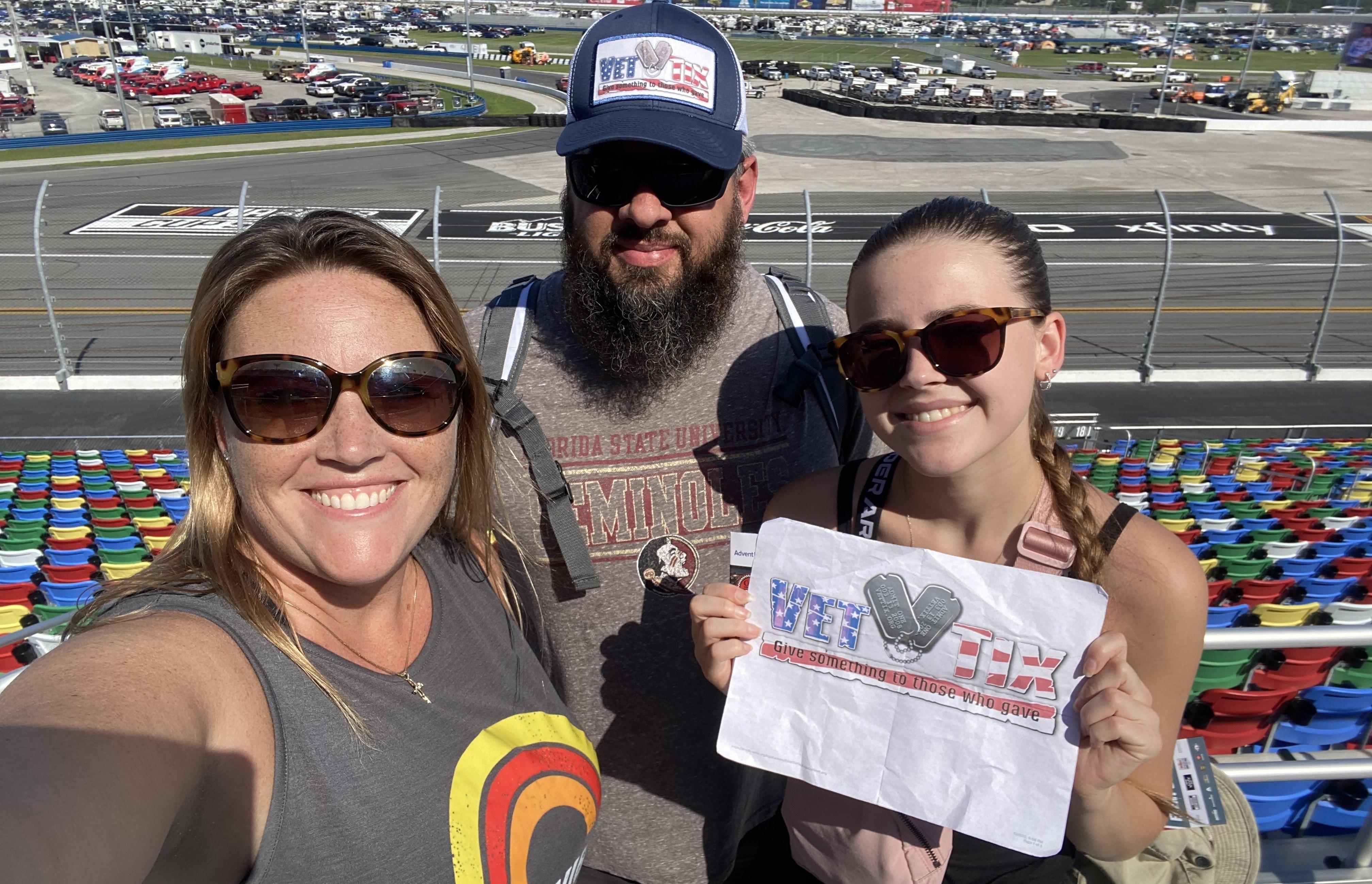 Thank you Veteran Tickets Foundation for the tickets to the Coke 400 at Daytona Speedway. It was the first time any of us had seen a race and it was a great, fun experience!