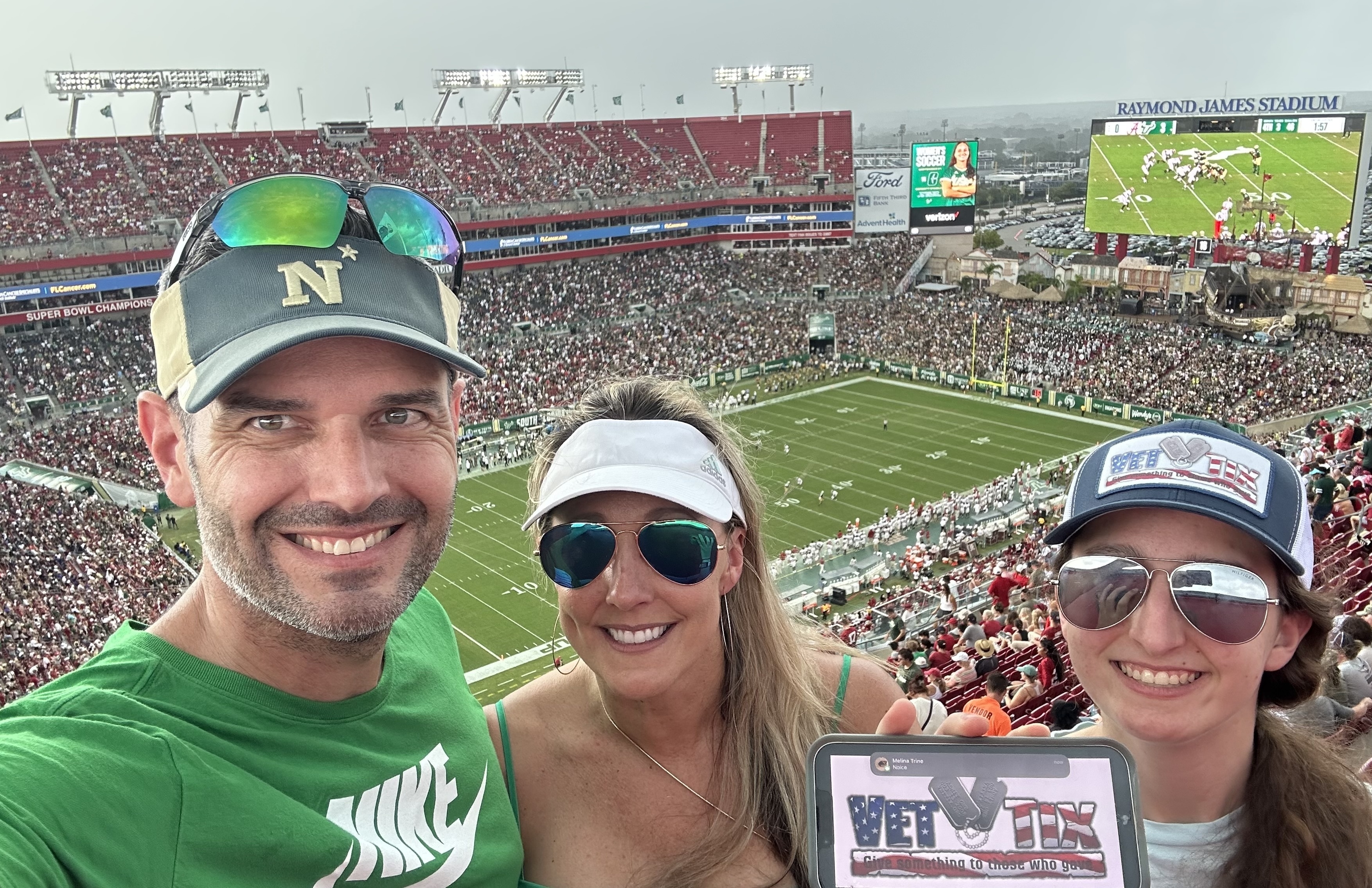 Thank you University of South Florida for the amazing opportunity to visit Raymond James Stadium. It was awesome to see USF and Alabama play. My husband and I traveled from Atlanta, GA just for this opportunity. Thanks again for showing love to our Veteran community. It means so much to be able to enjoy college football.
