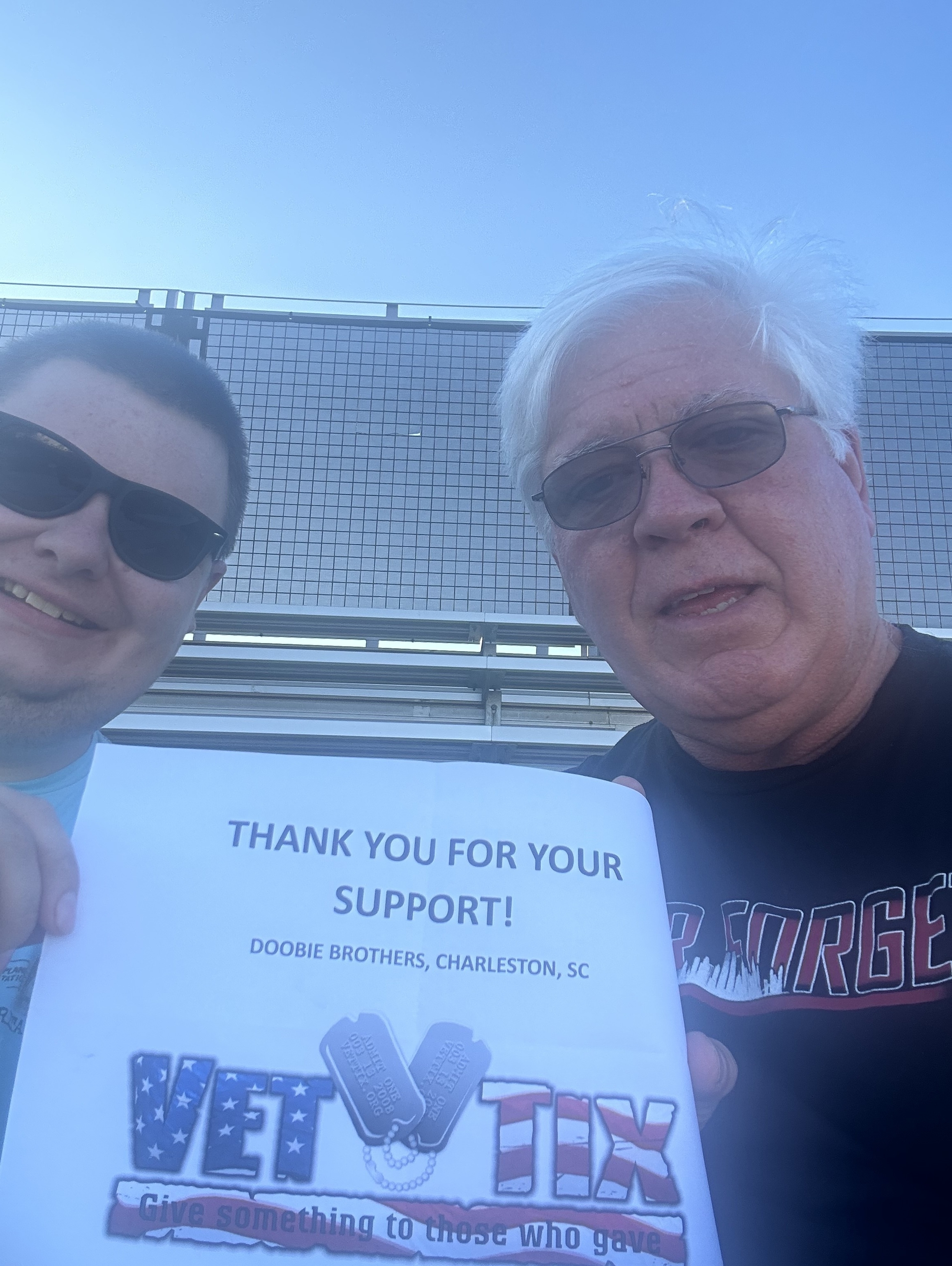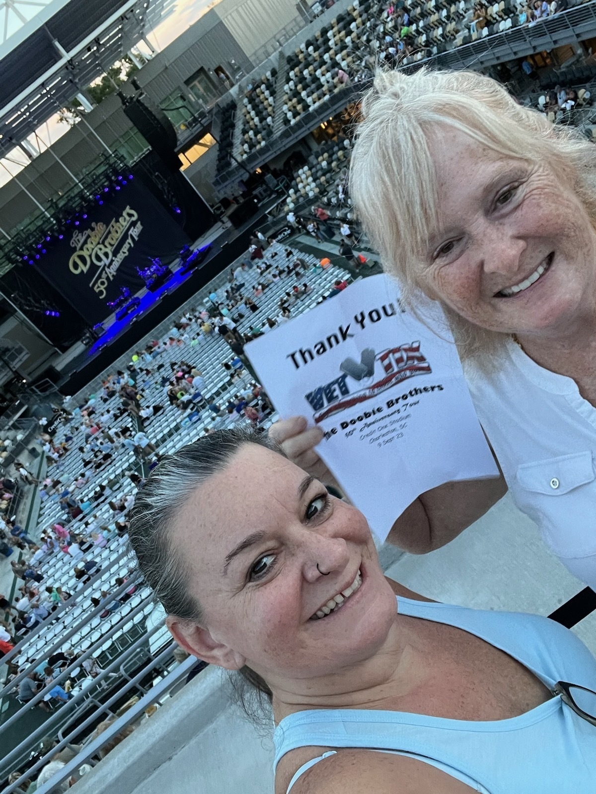Thank you Vet Tix and Live Nation for your incredible ticket donation to see The Doobie Brothers - 50th Anniversary Tour last night at Credit One Stadium. It was a great show...the weather was beautiful and the attendees were singing, dancing and having a fantastic time. Even after all these years, it is obvious that the band still loves performing. Active duty/Veterans certainly benefit from your generosity and are able to spend a wonderful evening with friends and/or family. We appreciate it so very much. Thank you again for allowing us to go to this concert! #TheDoobieBrothers #50thAnniversaryTour #MichaelMcDonald #VetTix #LiveNation