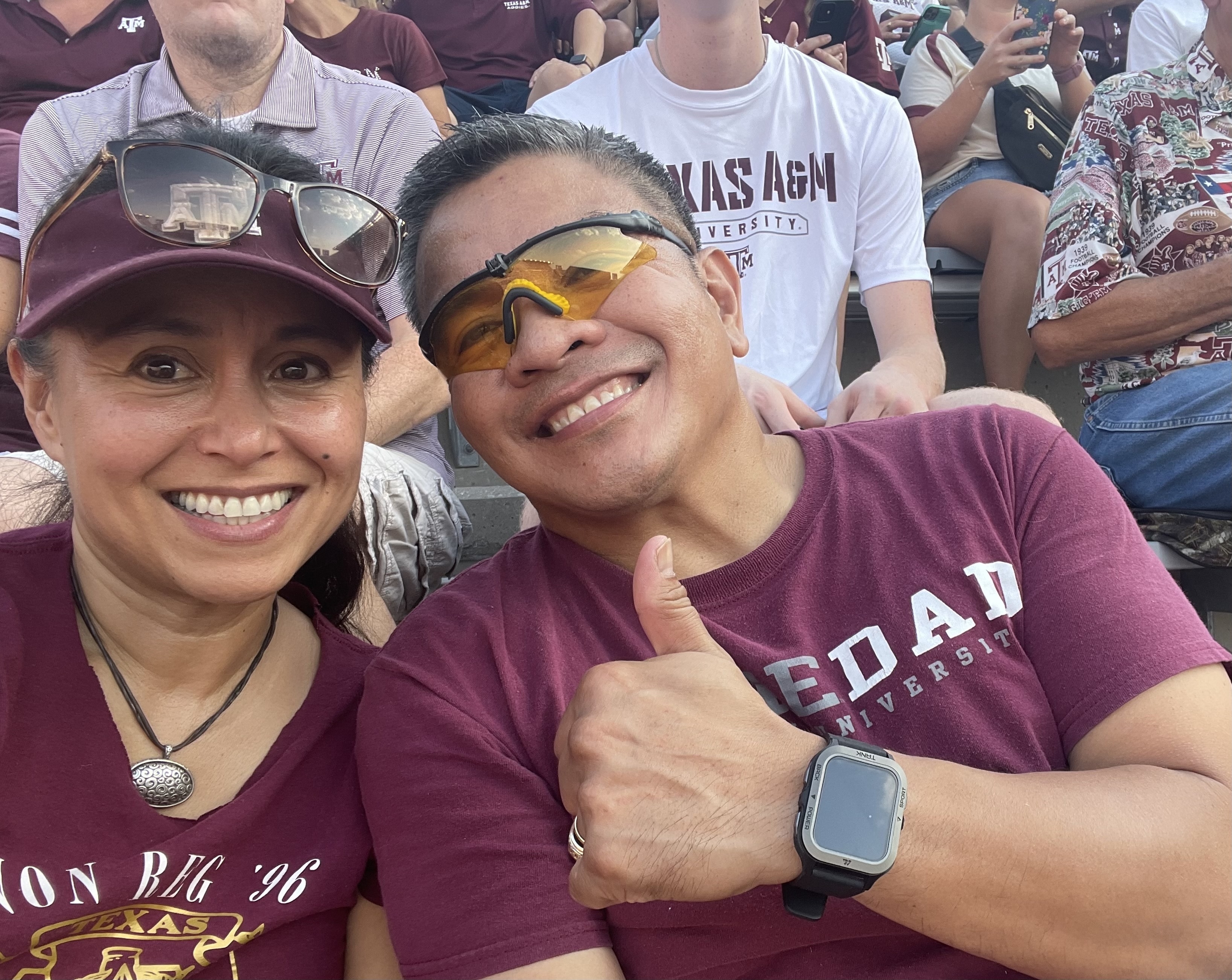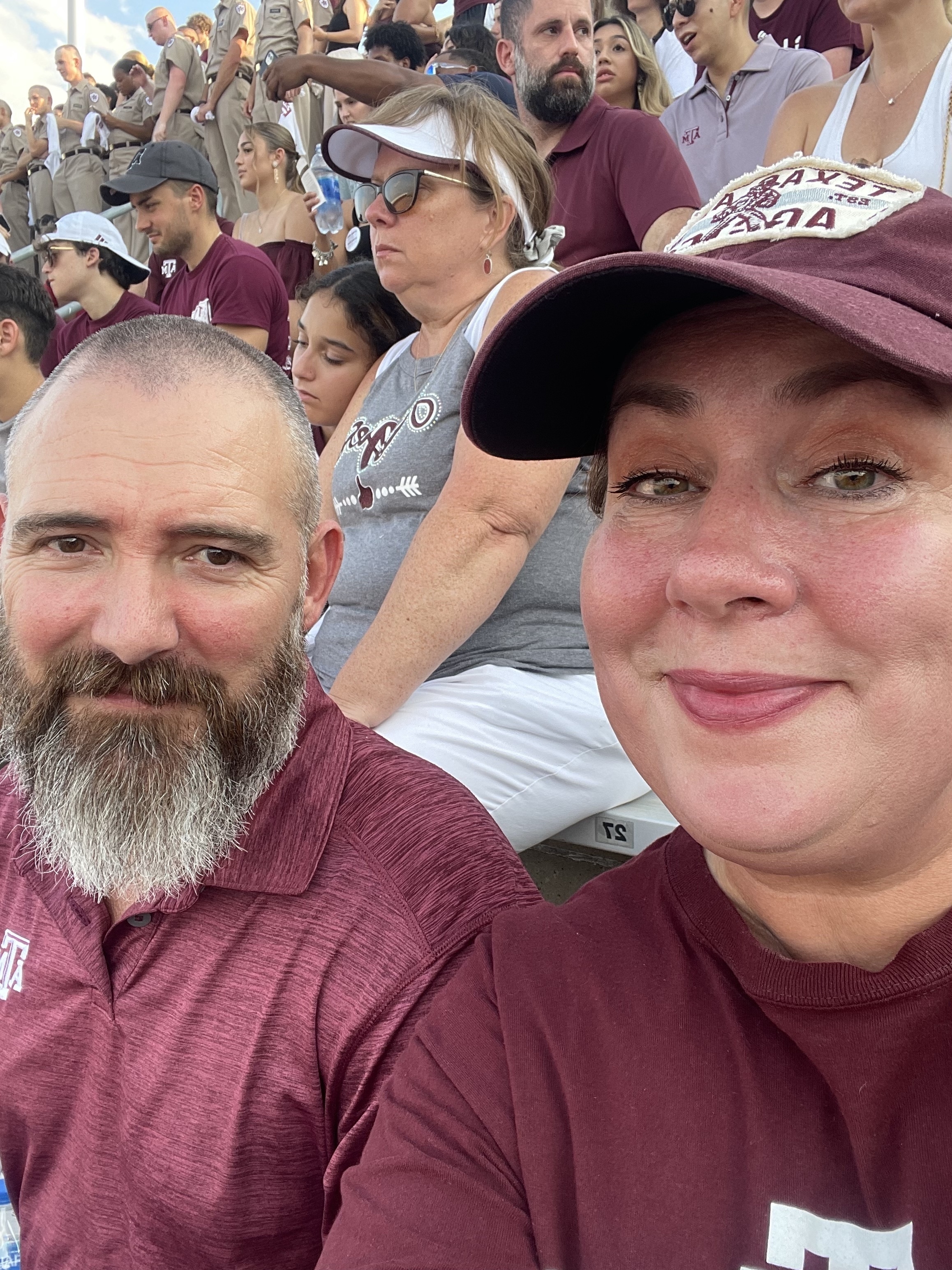 Vet Tix and 12th Man Foundation, Thank you for the generous donation of tickets to the season opener. We enjoyed the Texas A&M vs NM Los Lobos despite the 100 degree temps! This was also my wife's (also a veteran) first A&M game. Hopefully the photo provides a glimpse of us having a good time! Trey and Jen