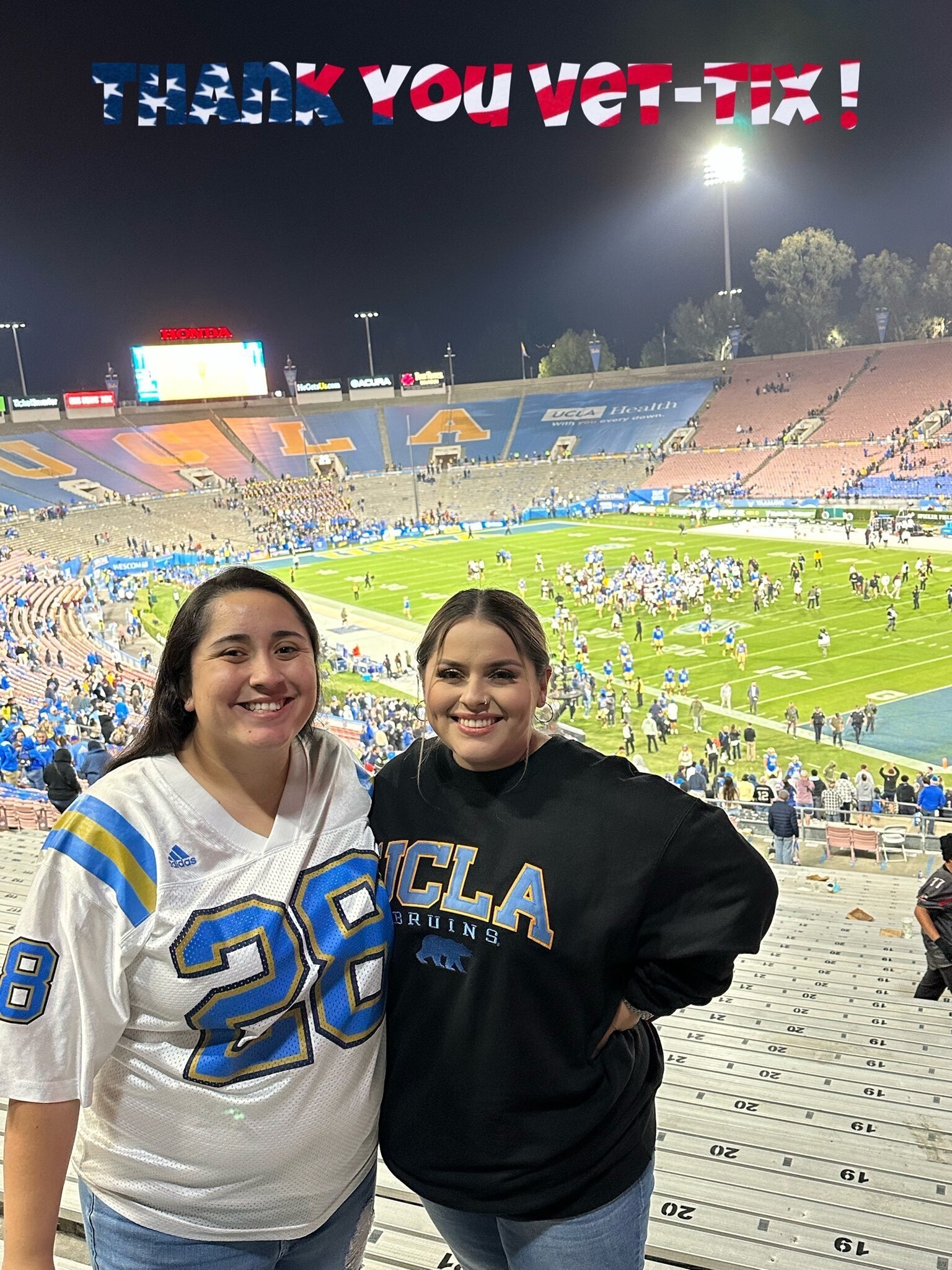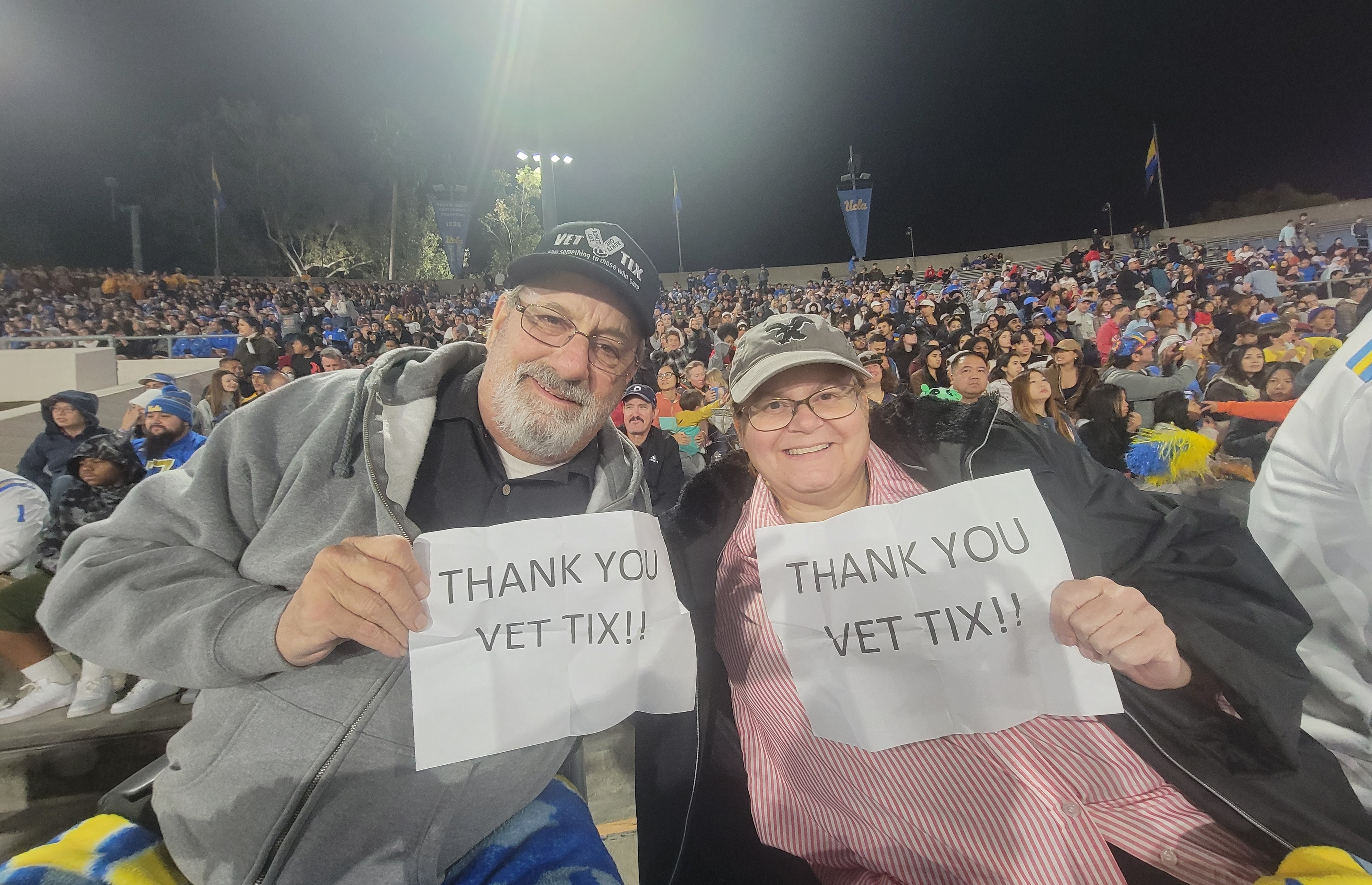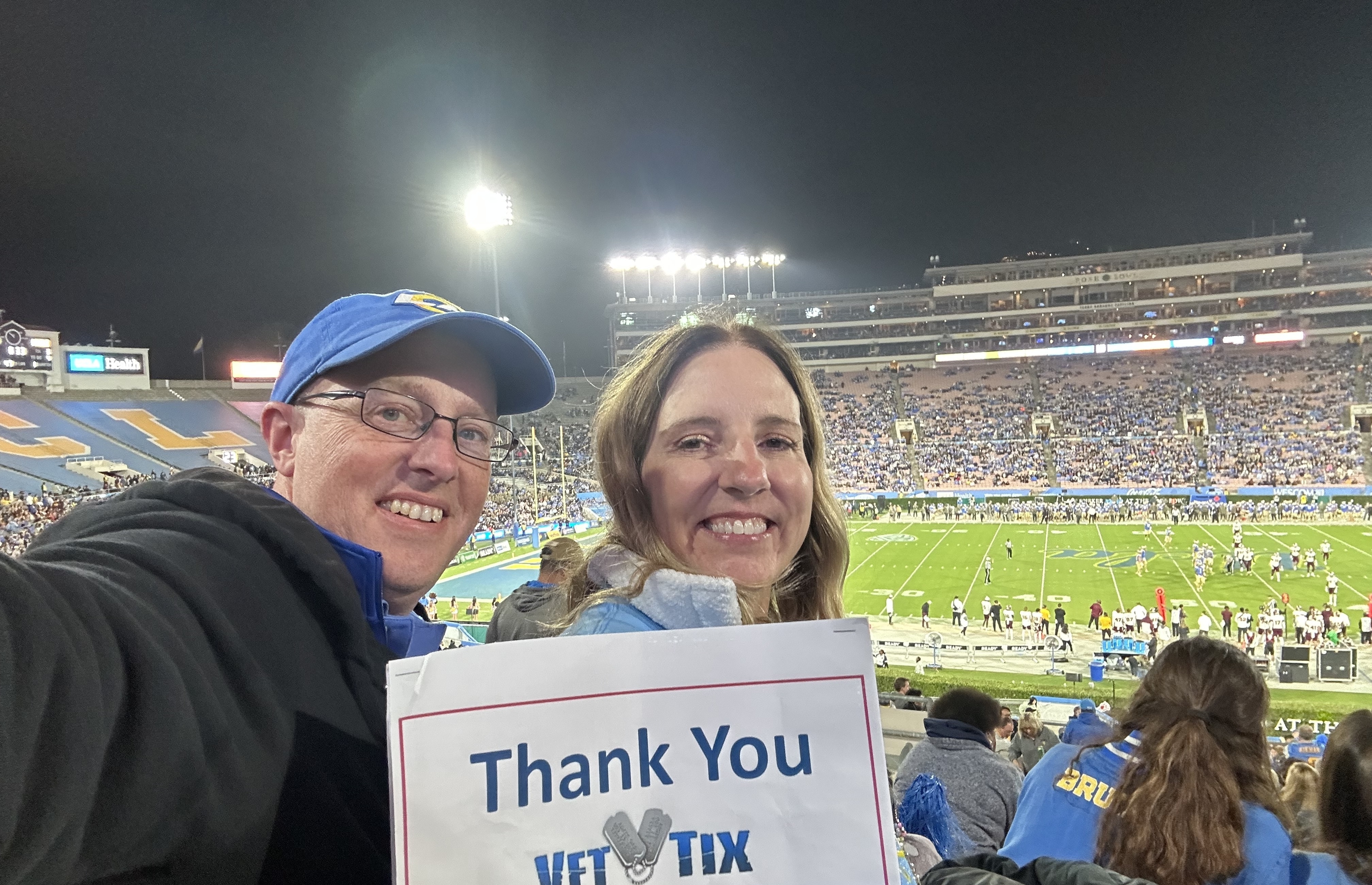 Thank you to University of California Los Angeles Bruins and Vet Tix Foundation for the football game tickets.
