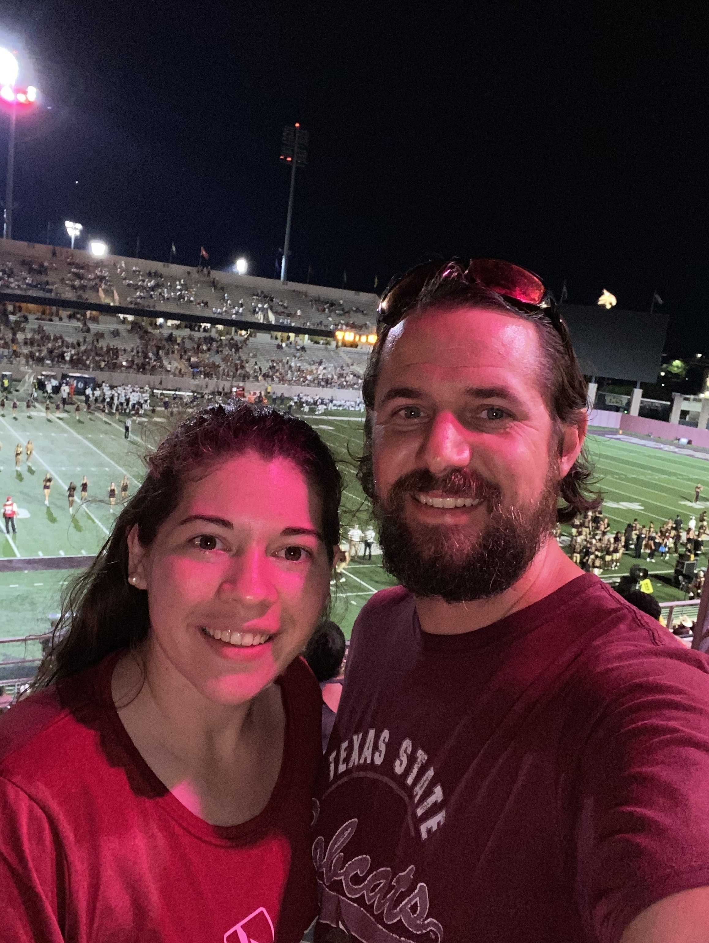 This was my brother’s and son’s first Texas State Game! Thank you so much, we loved the event. They won 77-34, we stayed the entire game. Can’t wait to go to another one! Next time we will take a pic in the stadium.