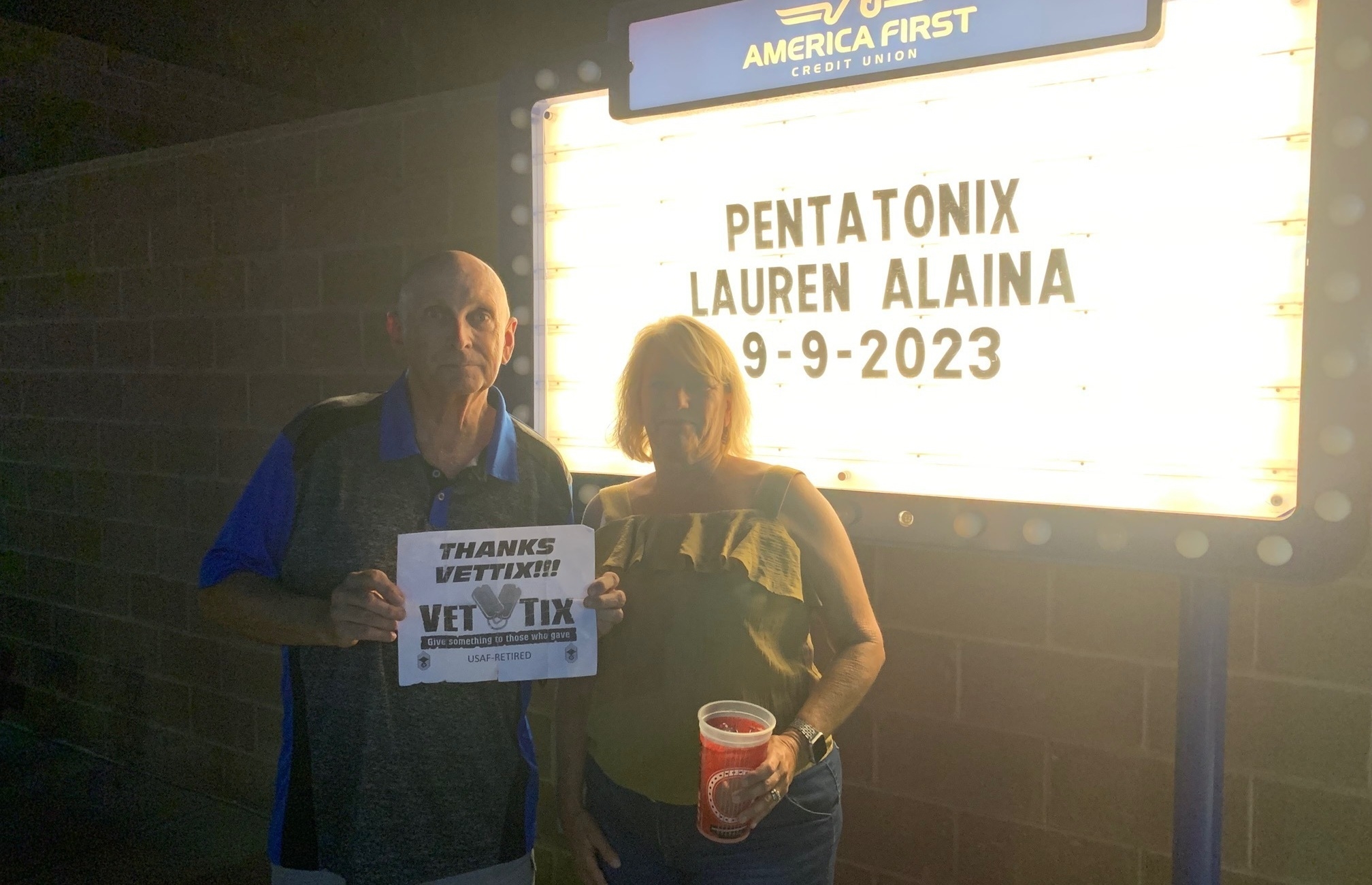 Huge THANK YOU, gracias, danke schon, and merci… for an amazing concert experience last night!! I had never seen Pentatonix and was surprised by their creativity and diversity!! I LOVED every second of it!!! Thanks Live Nation and VetTix!! I wore my shirt and saw others also flying our colors!!!
