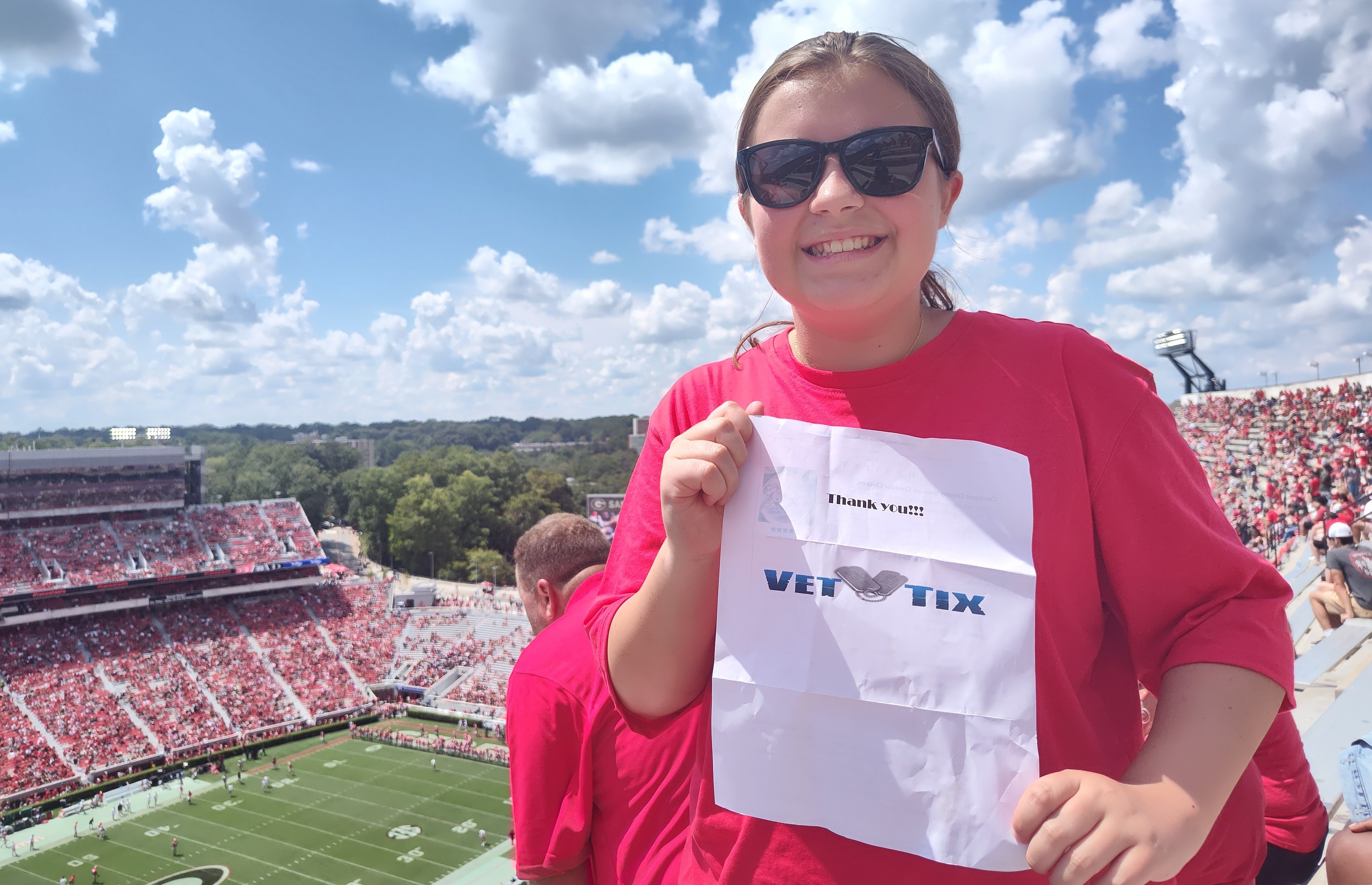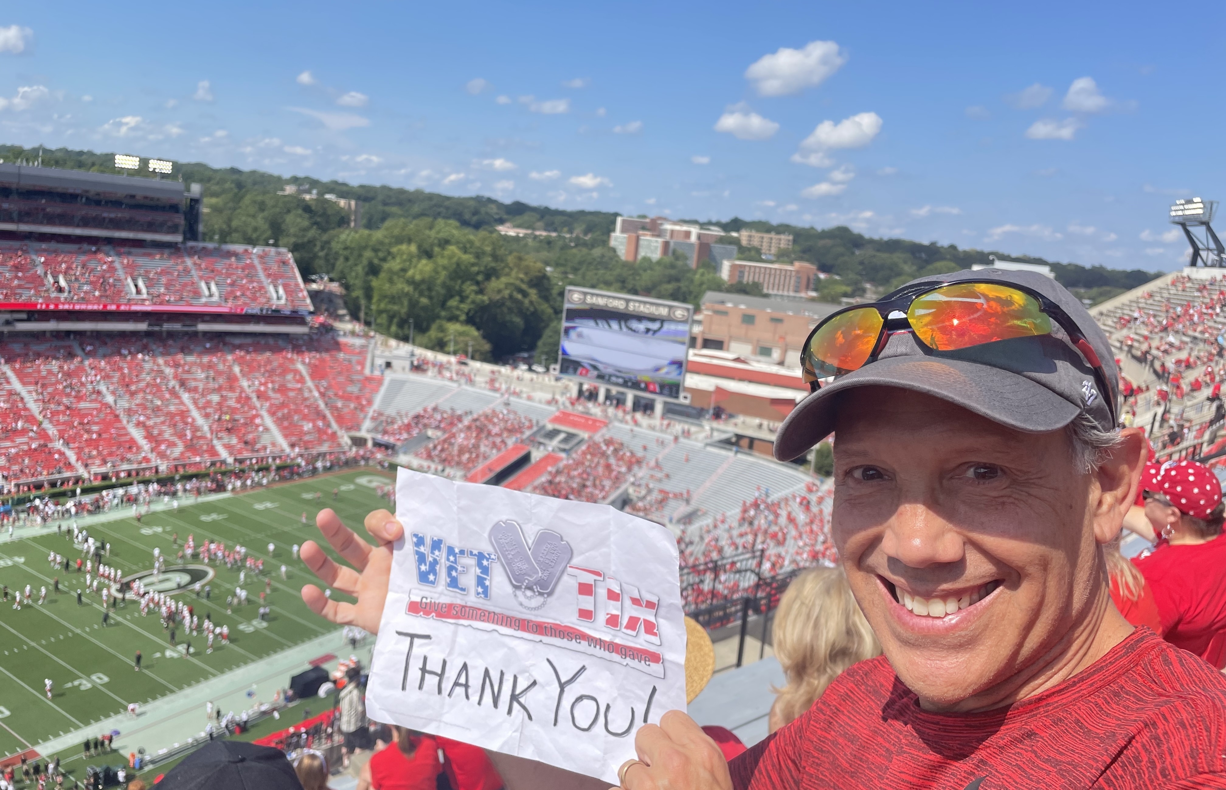I want to say thank you to Vet Tix, all the donors, and the Dawgs for the tickets. We are huge GA fans and we had an amazing time. Our Dawgs won the game, and seeing it live makes the game that much more enjoyable. Thank you to UGA's Athletic Association for the tickets, and such a wonderful Saturday between the hedges.
