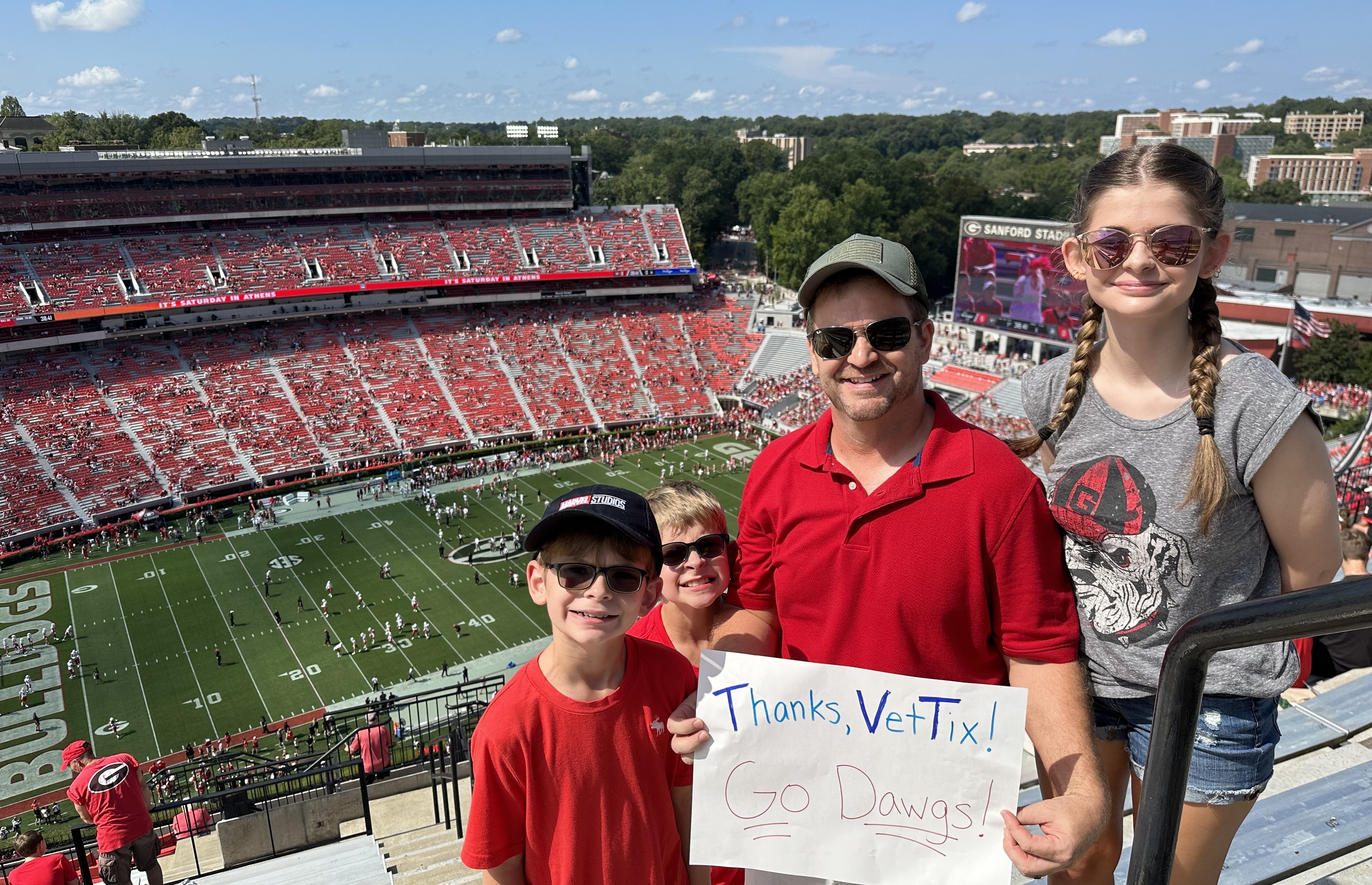 Thank you so much University of Georgia Athletic Association , Veteran Tickets Foundation Purchases for the tixs for the Georgia Bulldogs game!! We really appreciate you generous donations to make this game possible for us. We had an amazing time!! Thanks for all you do for us!!
