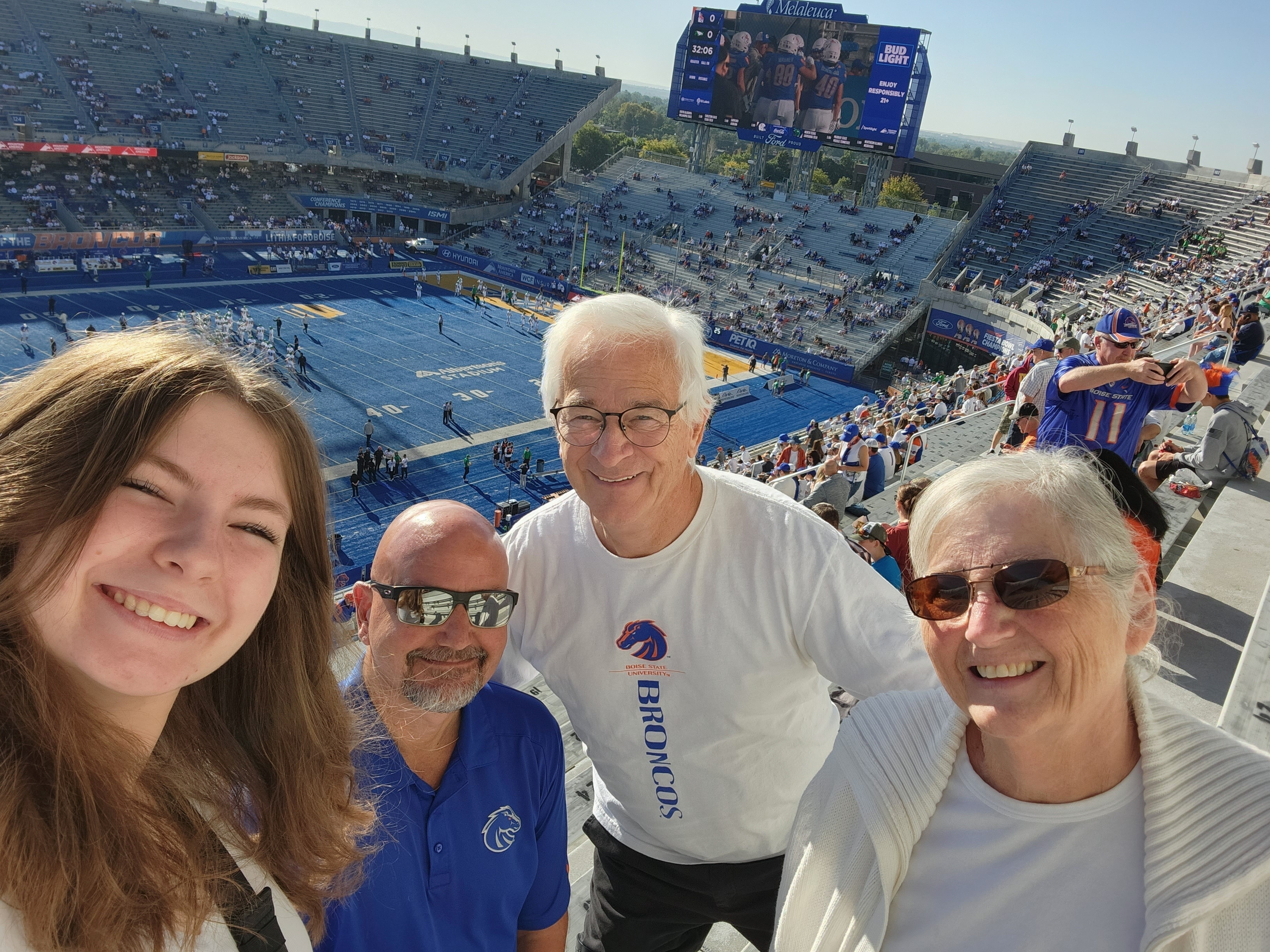Thank you so much for the opportunity to attend a BSU football game! Although living in Idaho for more than 30 years, this is the first BSU game we've attended. Didn't seem to be a bad seat in the stadium, even the top bleachers provded an amazing view of the field. We will not soon forget this event.
