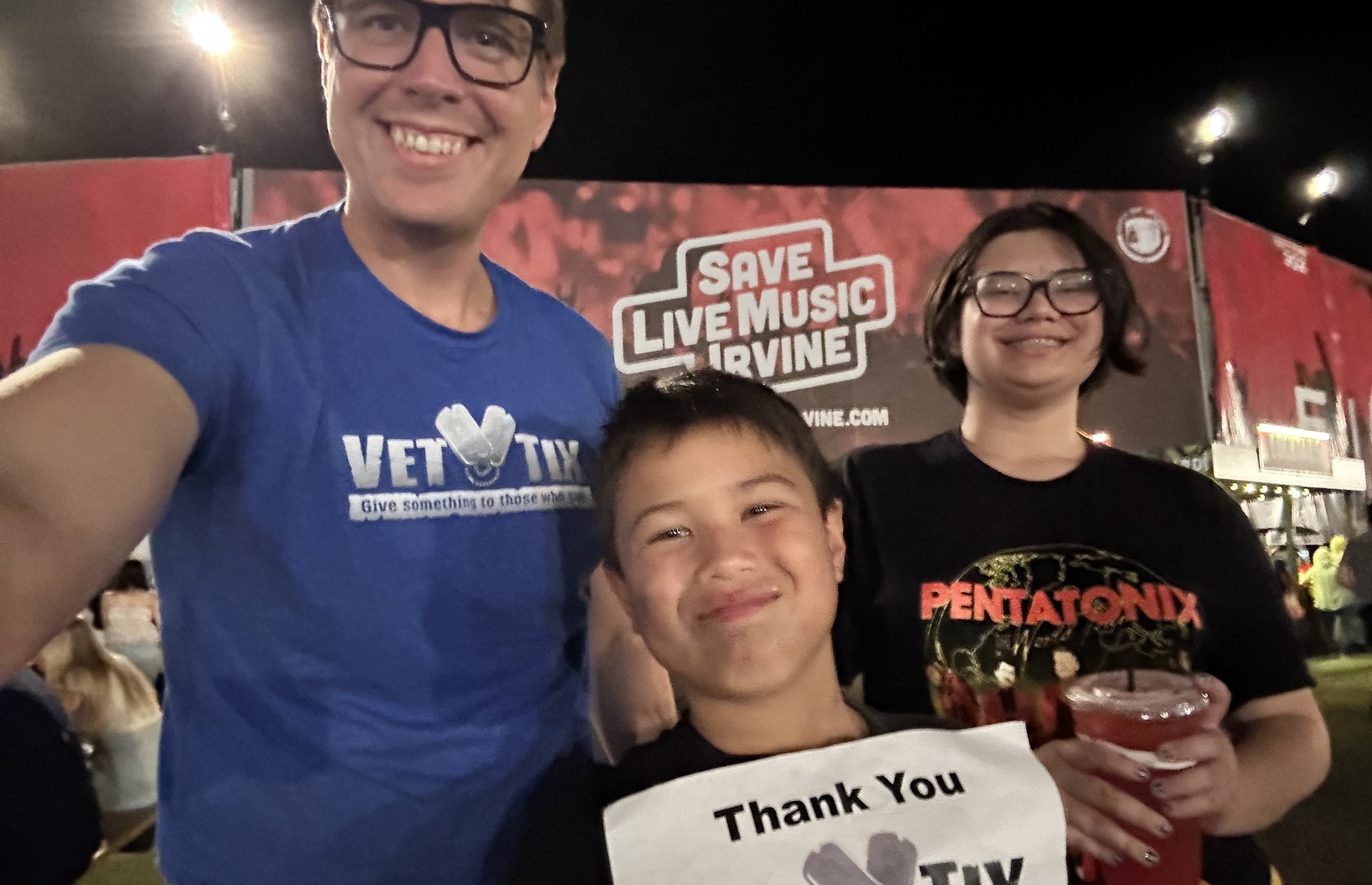 I want to give Live Nation and VetTix my deepest appreciation for the donated tickets. My kids are huge fans of Pentatonix. Having this opportunity to see this event and seeing the joy and excitement of my kids enjoying and having fun is priceless. Thank you Live Nation and VetTix!!