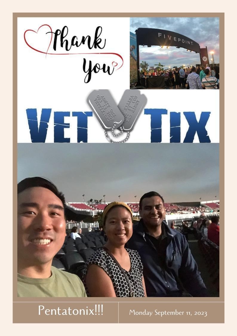 Thank you Live Nation and Vet tix for another great night of music. Pentatonix's harmony was amazing! Lauren Alaina was fantastic too. We had a blast! Thanks again for your continued support to veterans.
