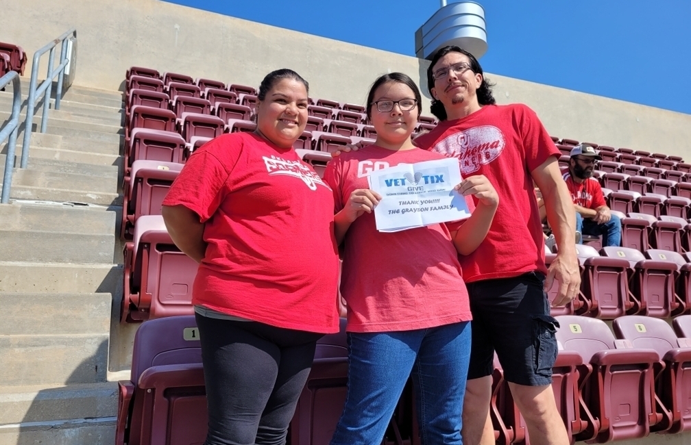 Thank you, University of Oklahoma, for your generosity in supporting military veterans and families. We appreciate the tickets to see the Sooners take on and BEAT, SMU! Boomer! Thank you so much!