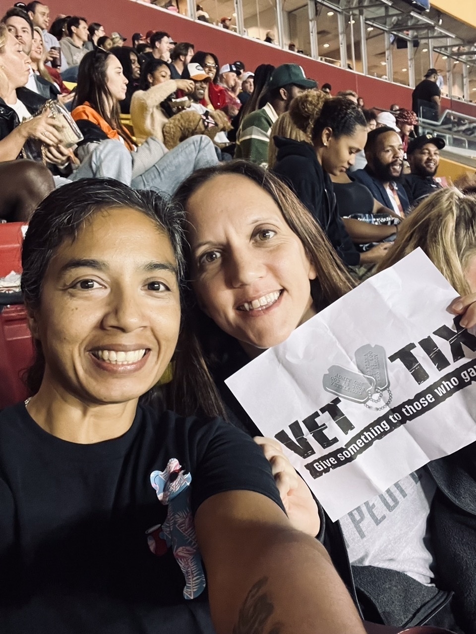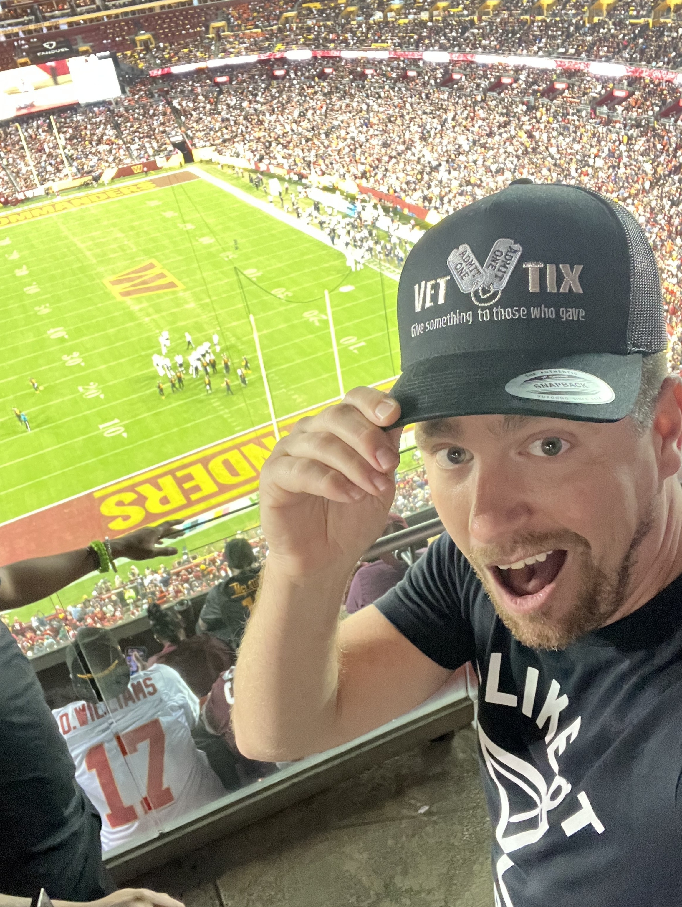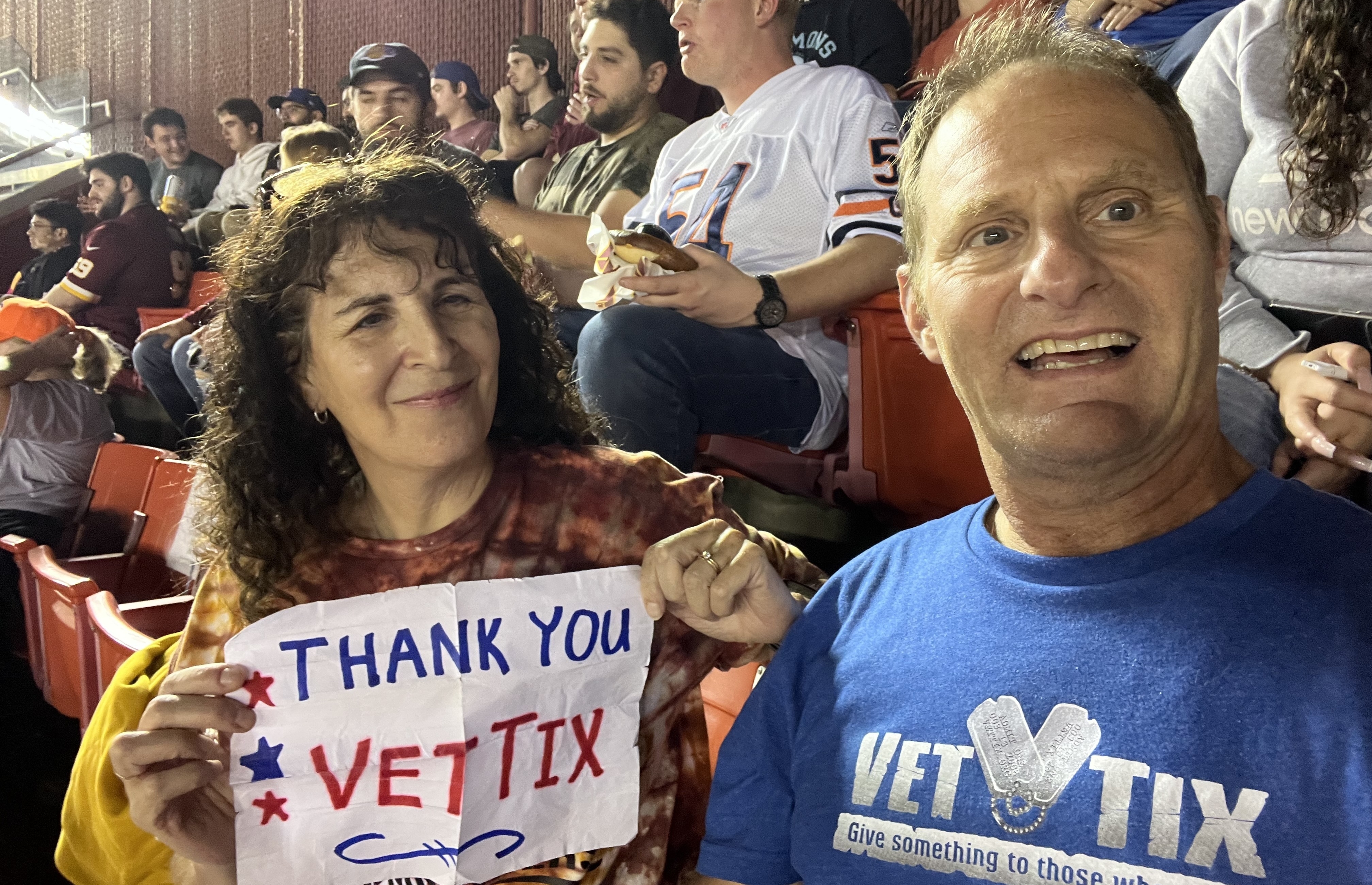 Thank you Veterans Tickets Foundation! We had an amazing time at the Commanders vs Bears game. The weather was great and the atmosphere amazing. I sincerely appreciate the tickets, what a great opportunity to go to an NFL game.