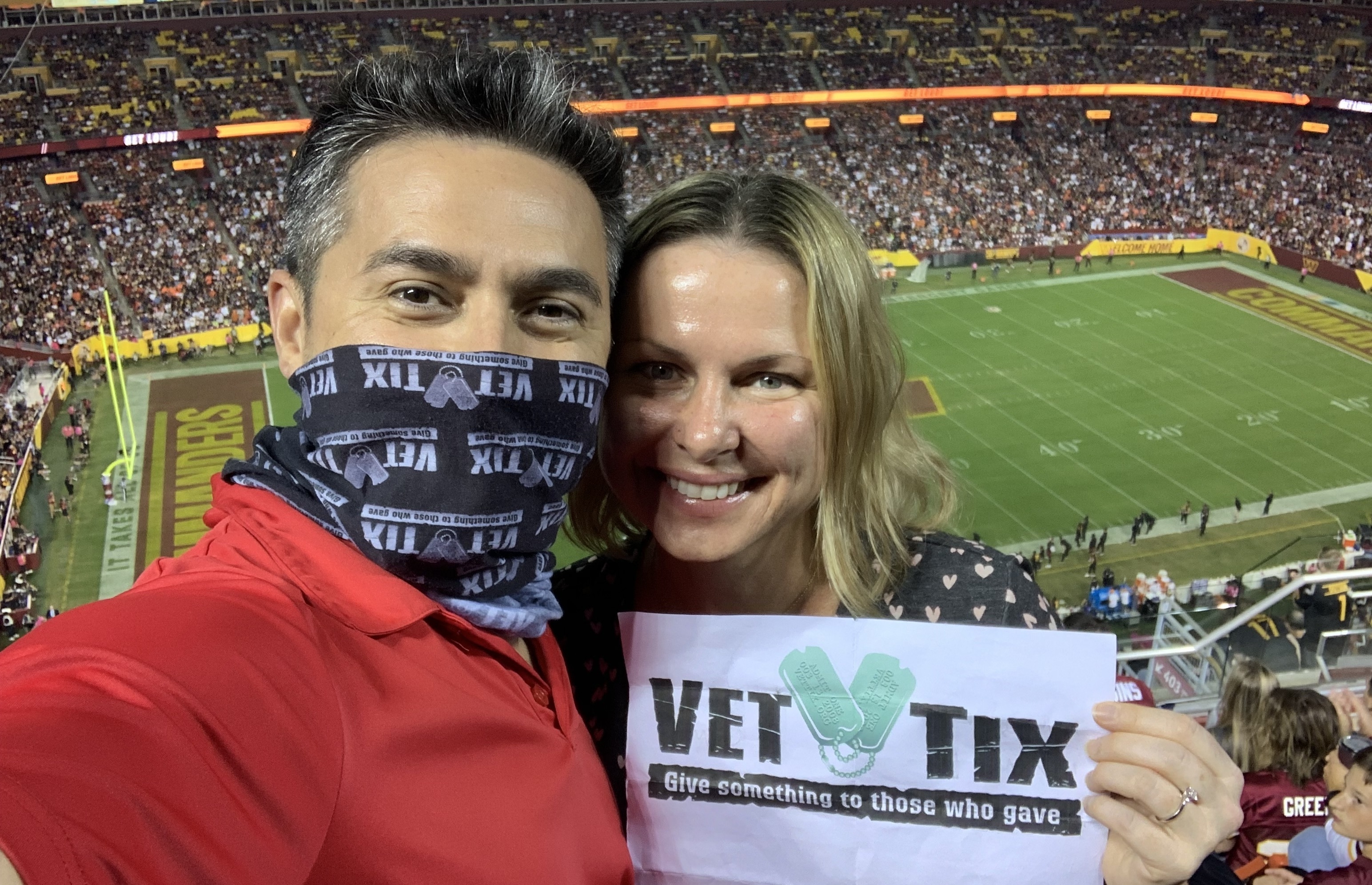 Thank You Vet Tix we had a great time even though we didn’t get the Win. Still a Washington Fan for Life!!!!