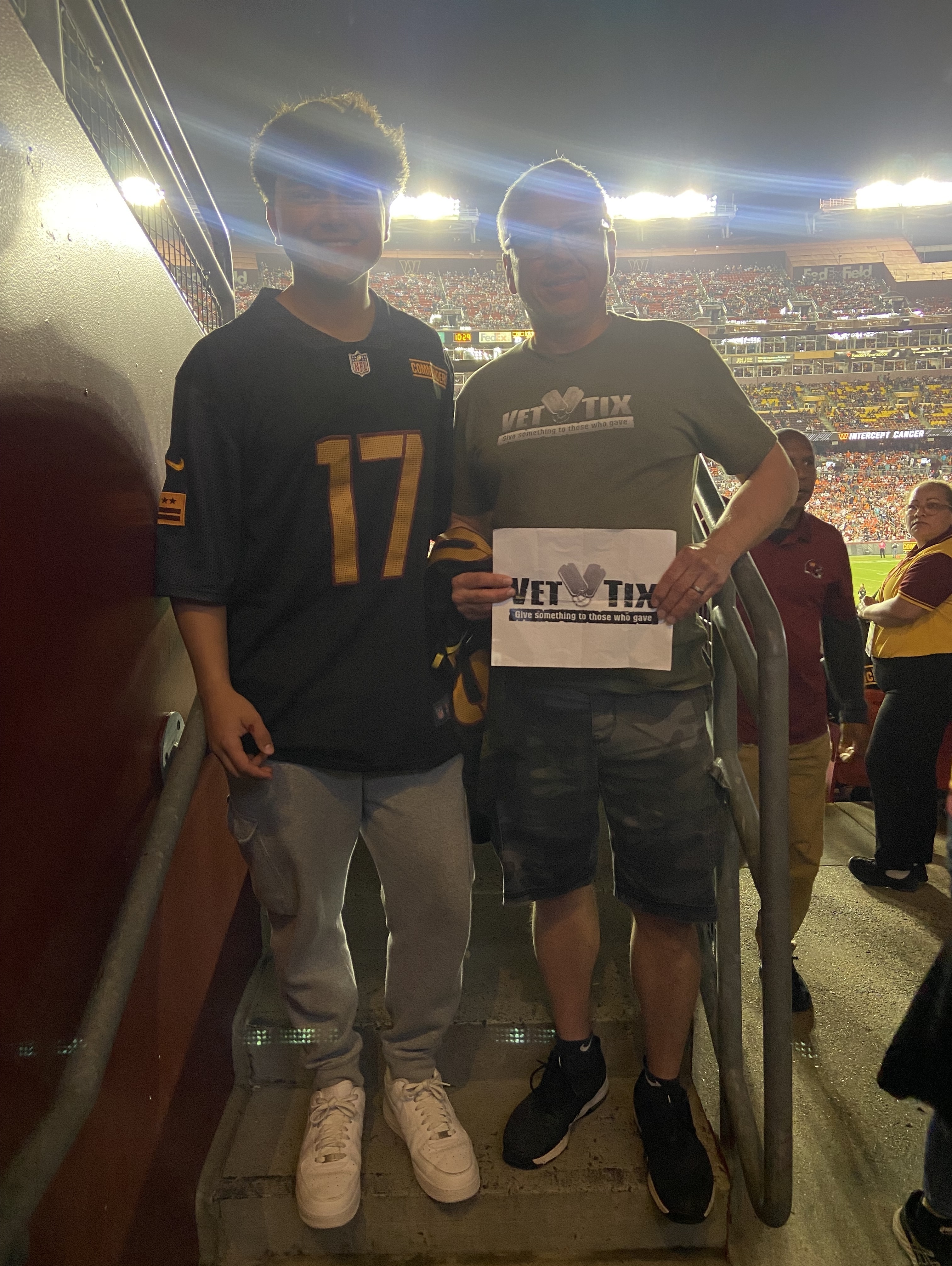 Thank you Veteran Tickets Foundation Purchases for the Commanders tickets. The game did not turn out well but we had a great time. Thank you.