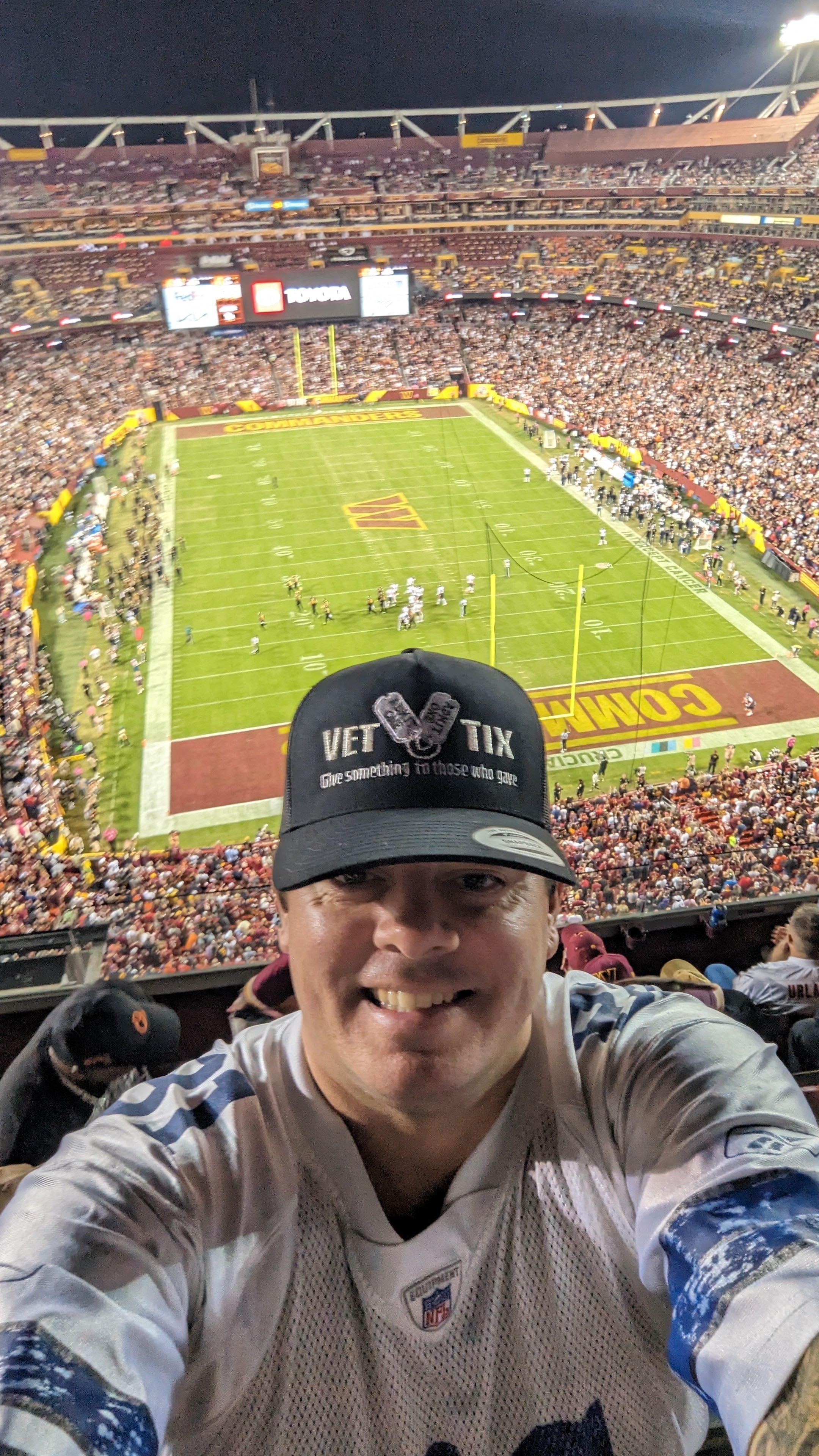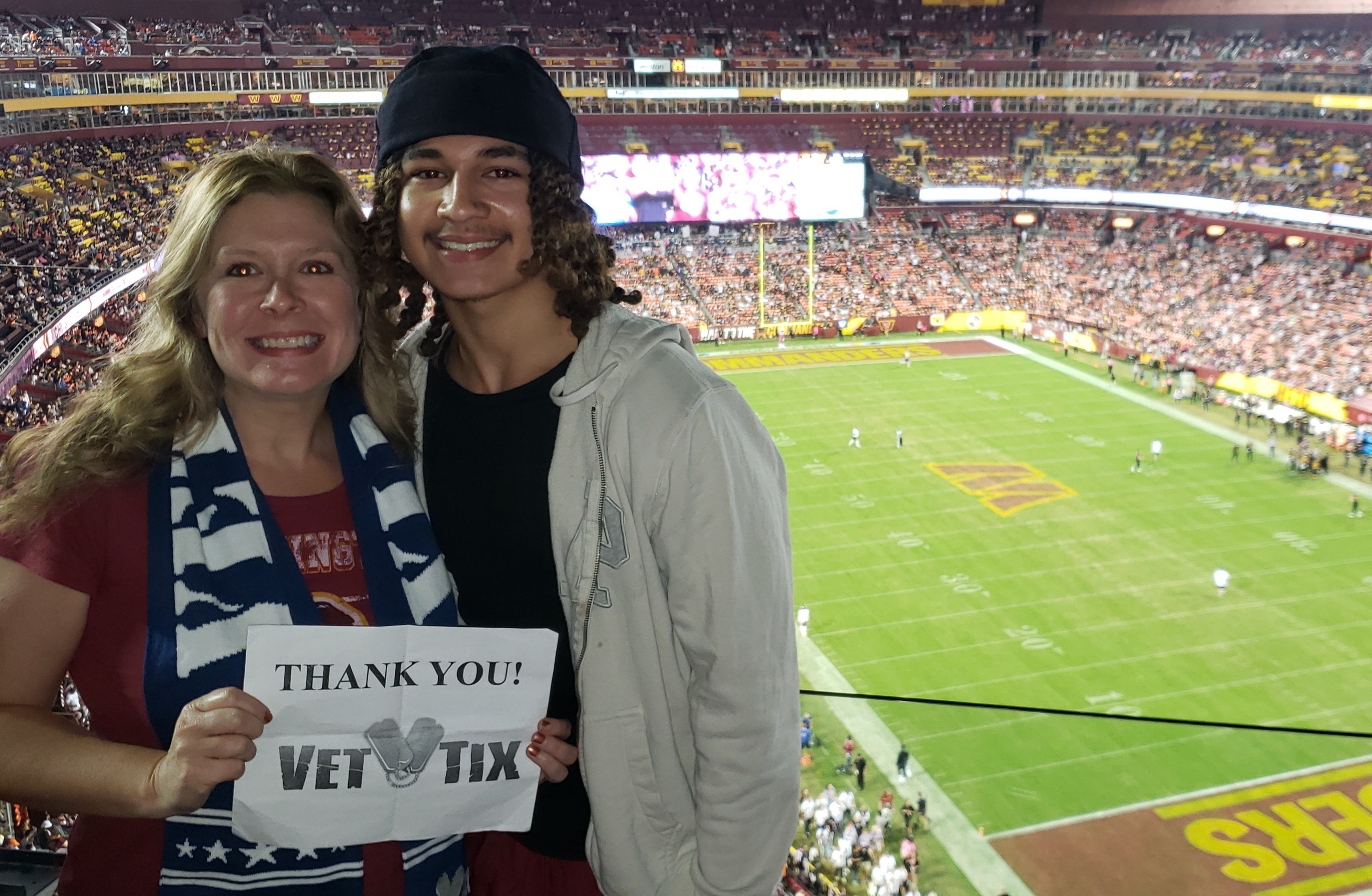 Always an awesome time at NFL football games. Appreciate the opportunity that vet tix offers for our veterans.