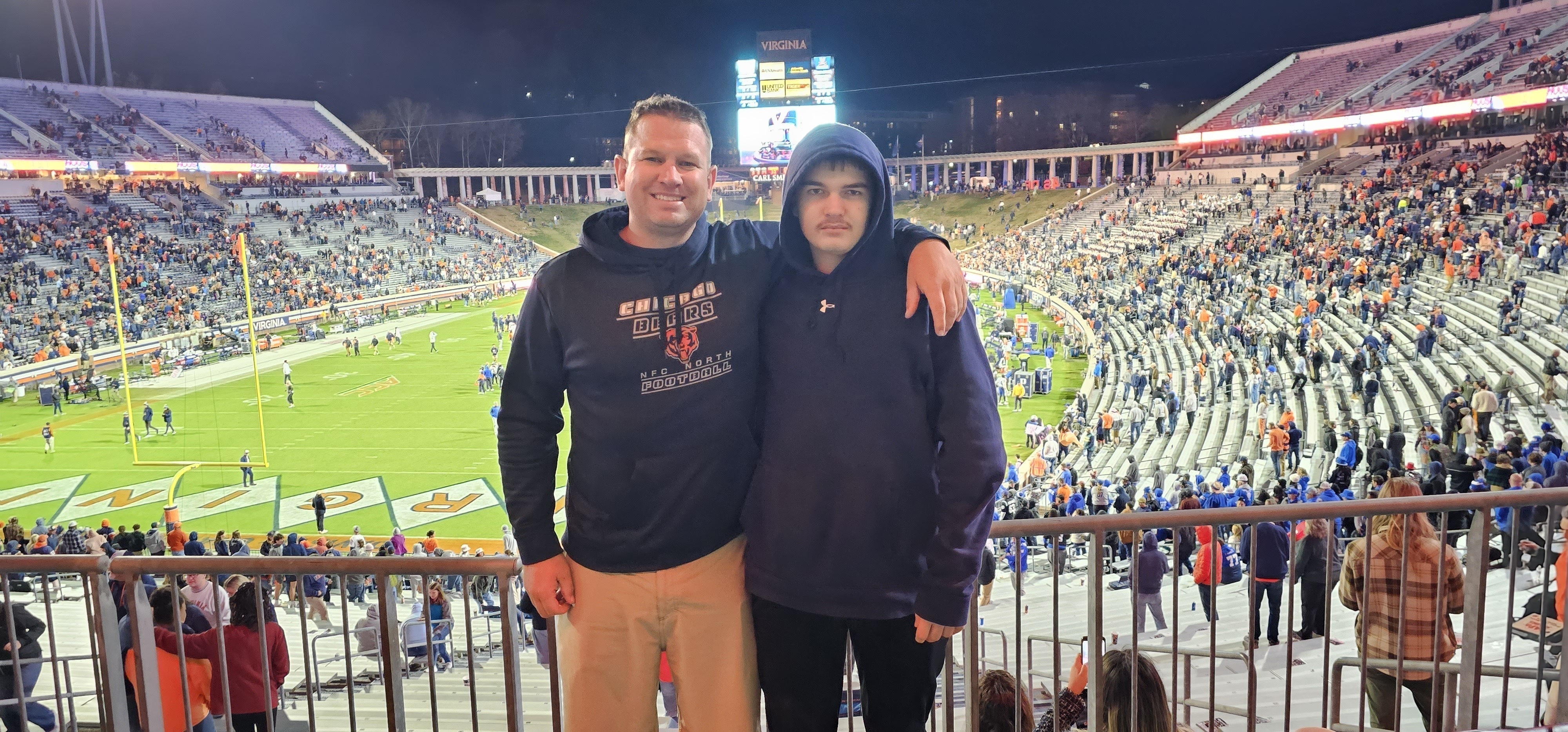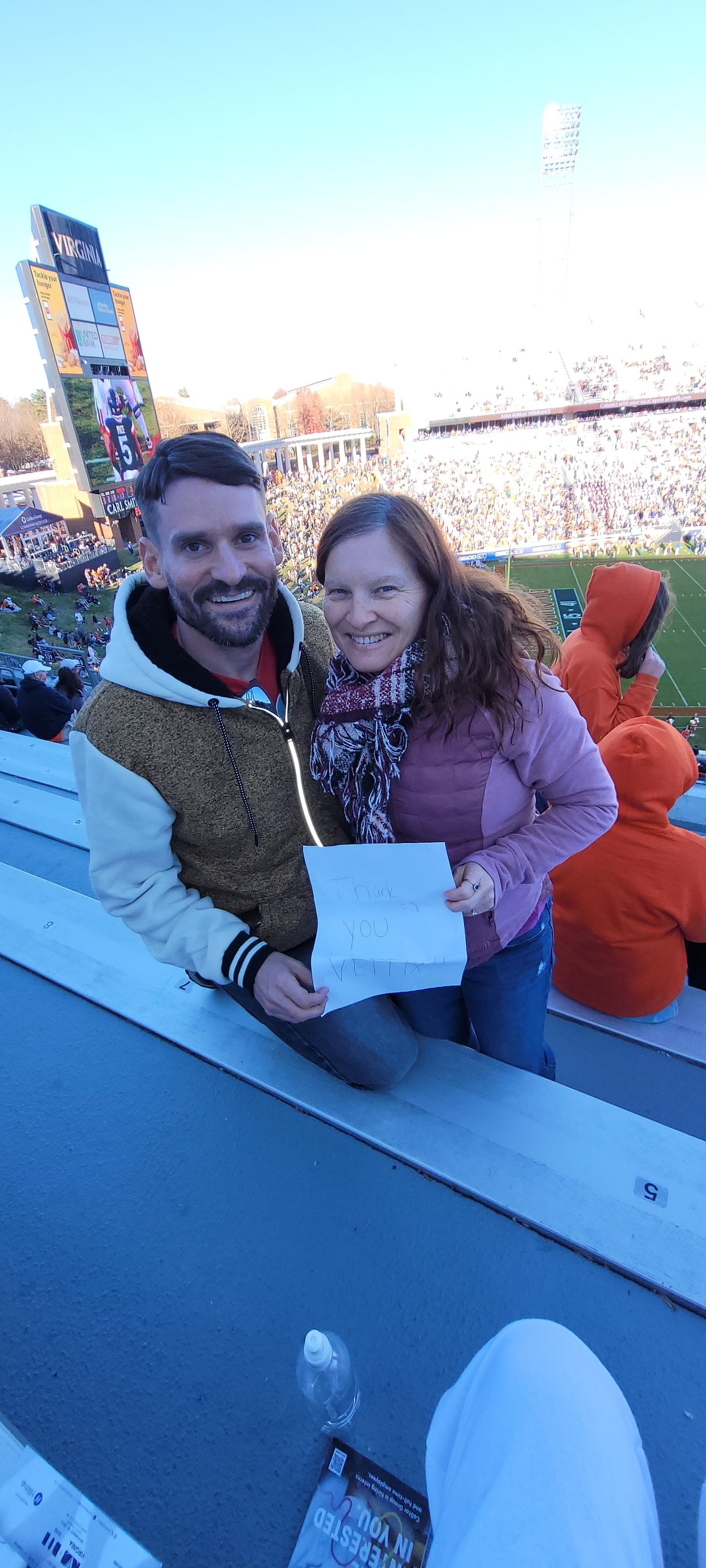 Thank you University of Virginia and Vettix! This was our first college game and it was so much fun!!! The crowd was filled with team spirit, cheering and after every touch down they sang school song. Such a fun energy and UVA won!! Thank you!!
