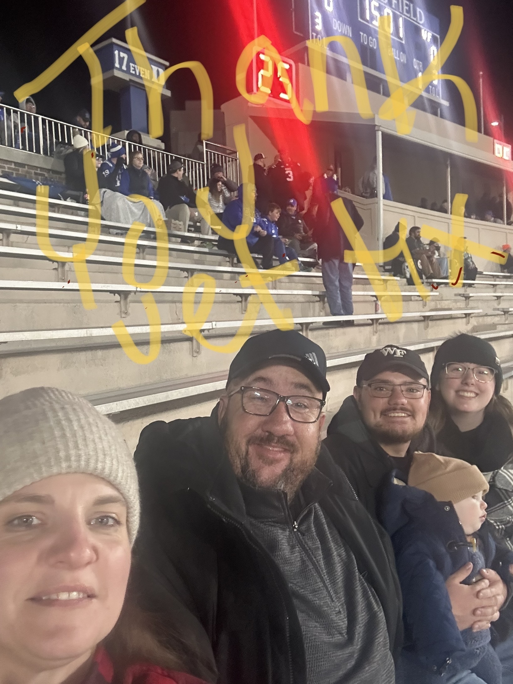 Thank you so much for the football tickets against Wake- had a wonderful time!