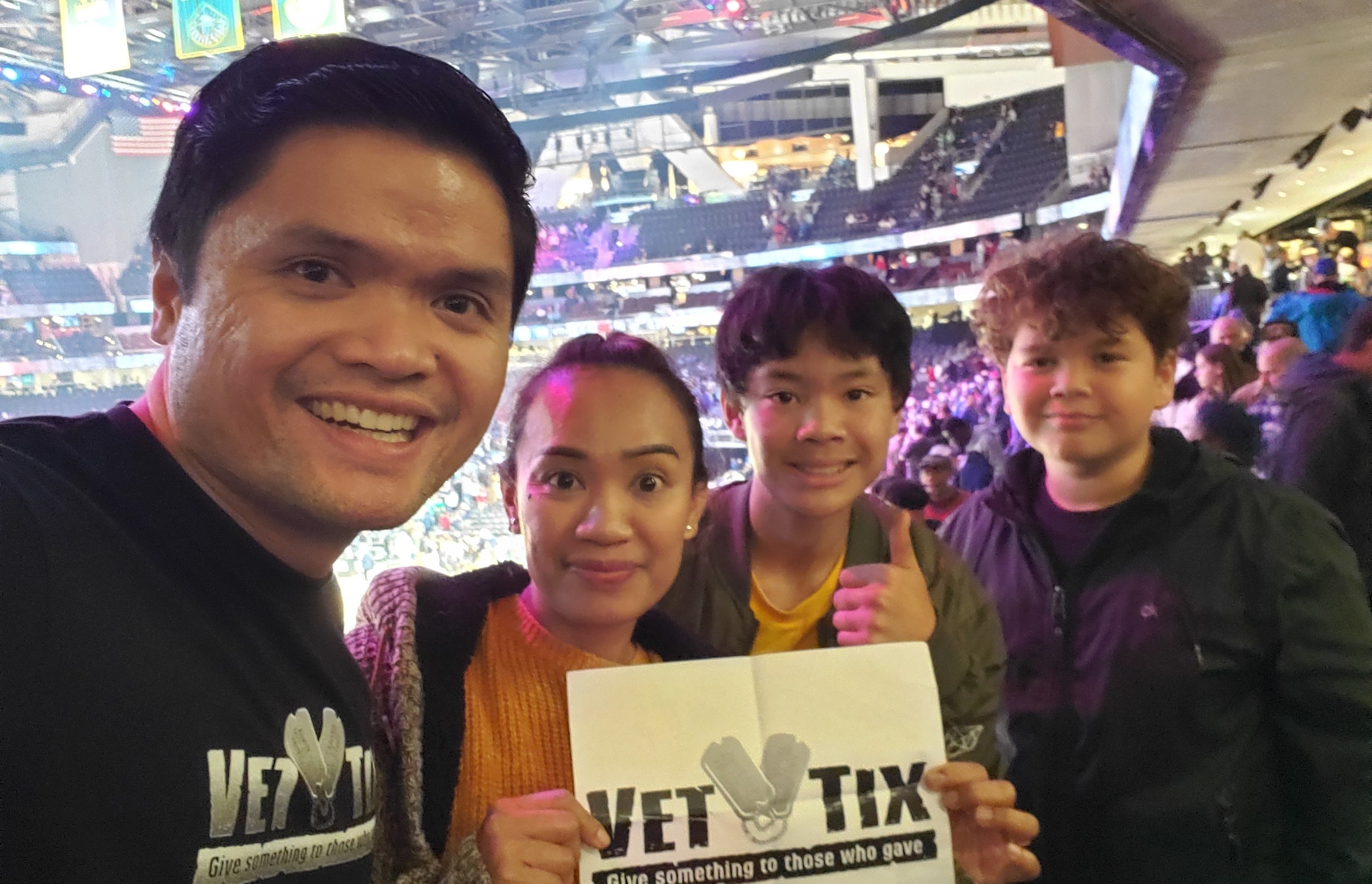 Thank you so much VetTix for enabling our family to enjoy this wonderful game! This was such a memorable experience for the the family as this was our first time attending an NBA game in person. Thank you all so much for making this happen!
