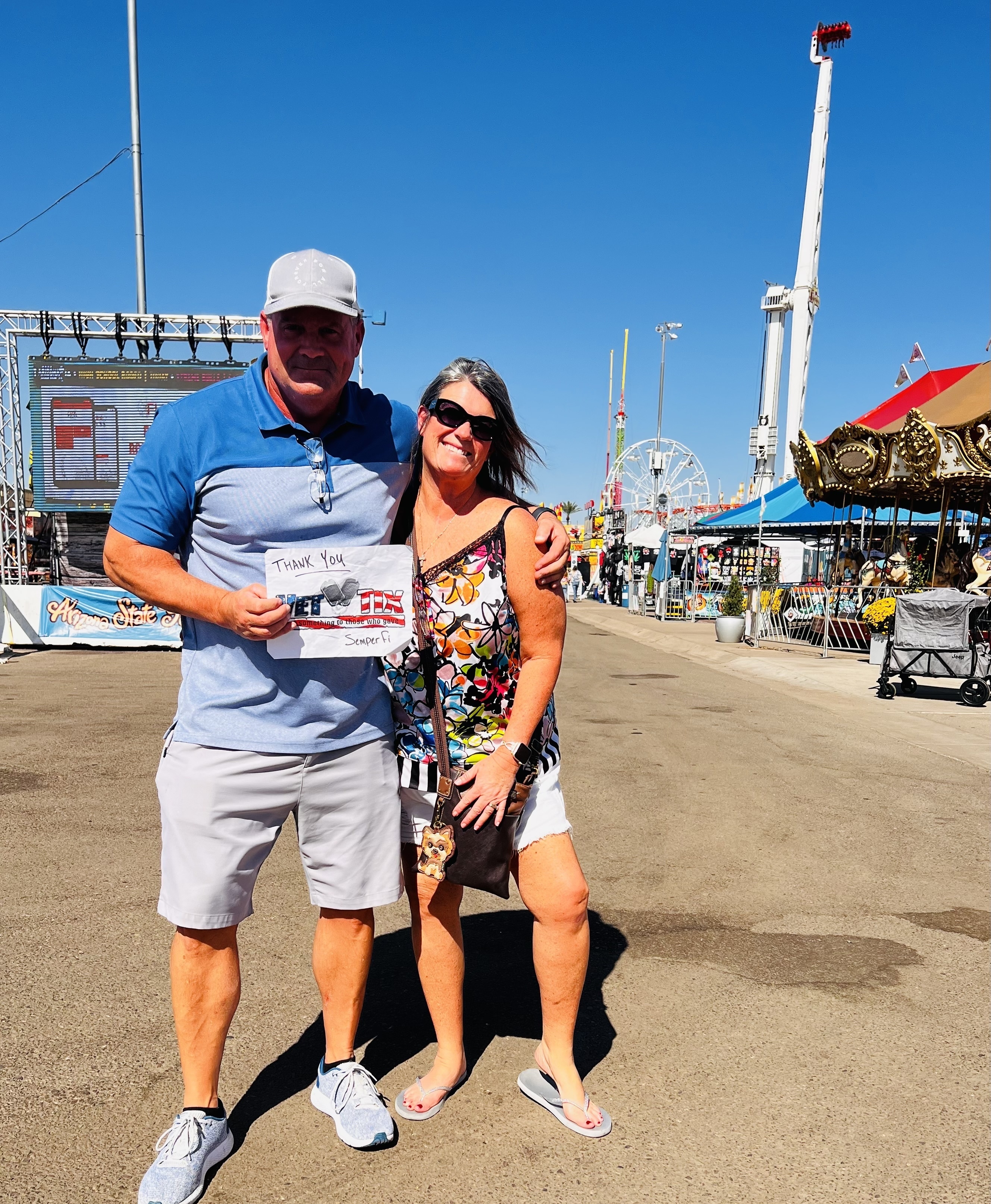 We were able to take our grandkids to the Arizona State Fair, due to the generosity of the Arizona State Fair and Vet Tix. This was the first time they had ever been to a big fair, and my wife and I hadn't been for over 20 years. We all had so much fun! From the rides to the games to the animals and fair food, this was an event that we won't soon forget. Thank you for giving us the opportunity to make fun memories with our grandkids.