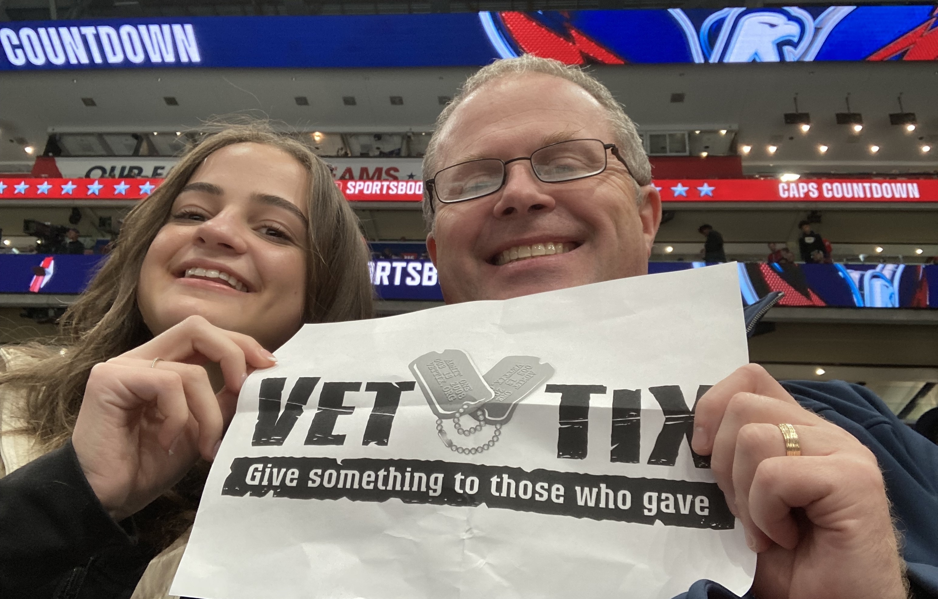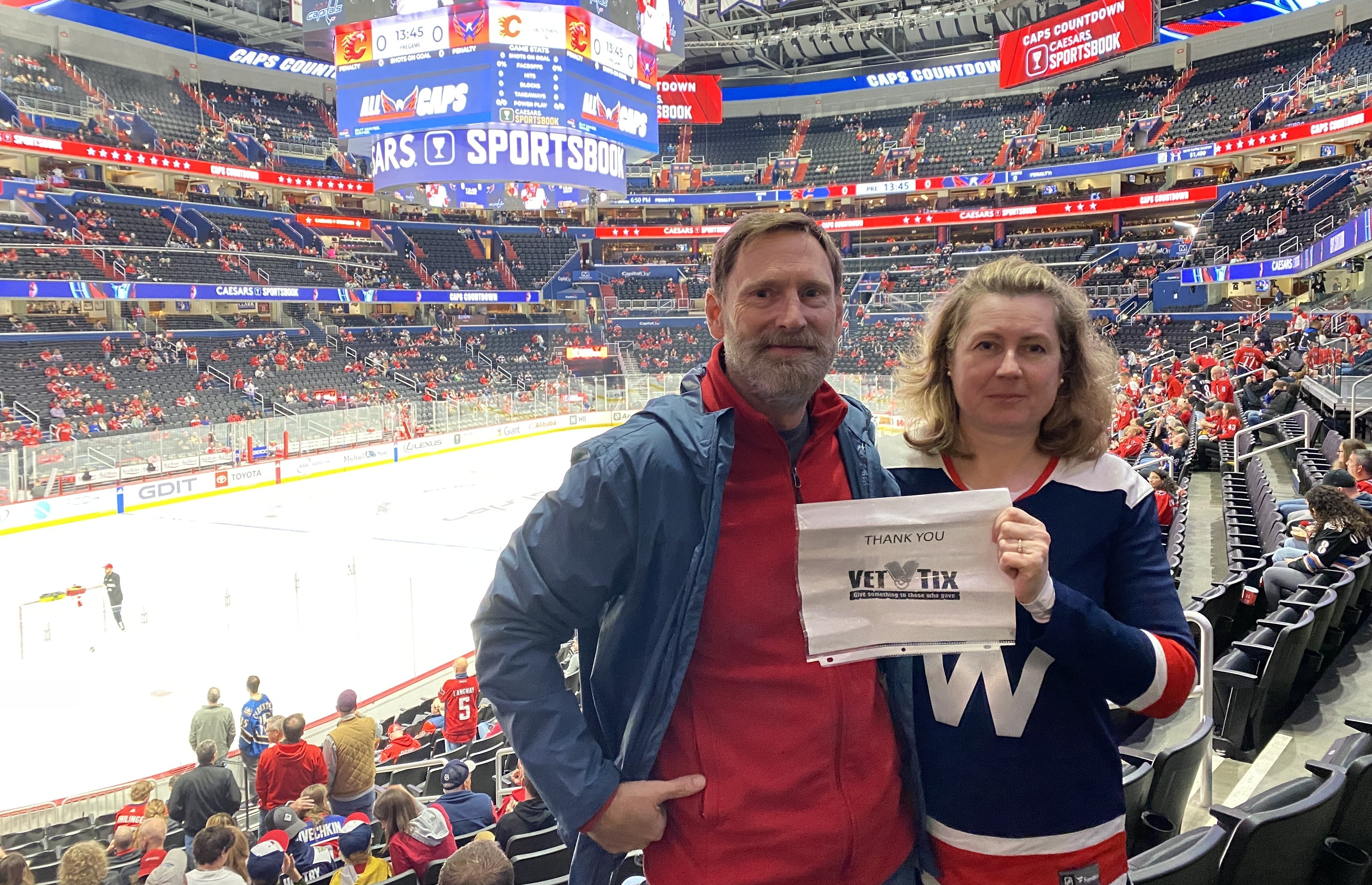 Thank you to Monumental Sports and Vettix for two tickets to see the Capitals play Calgary. The seat were great and Monumental Sports recognized two active duty members during the game - an Army CSM and a Marine MSG. Very patriotic atmosphere! Thanks again.